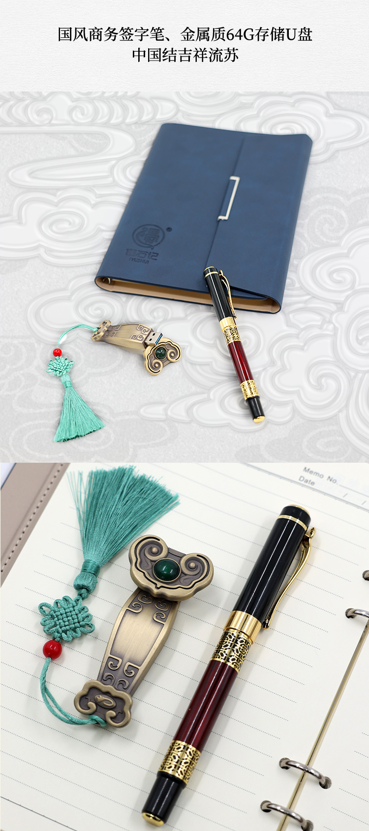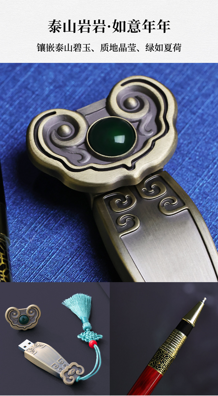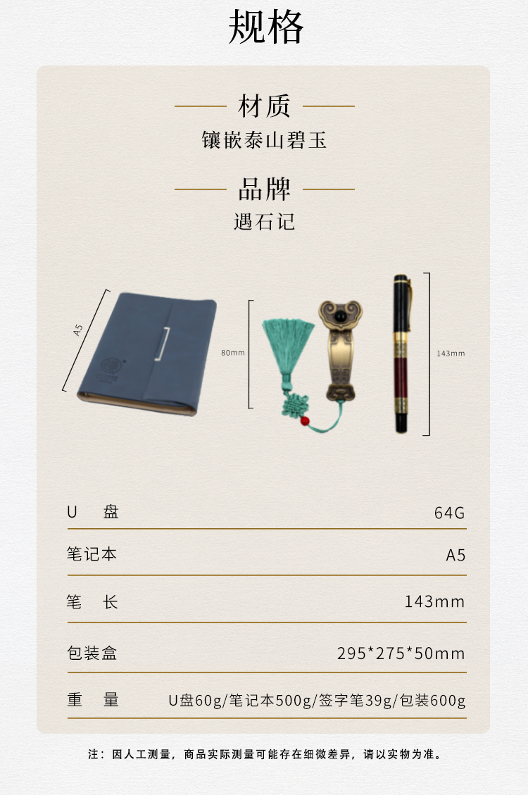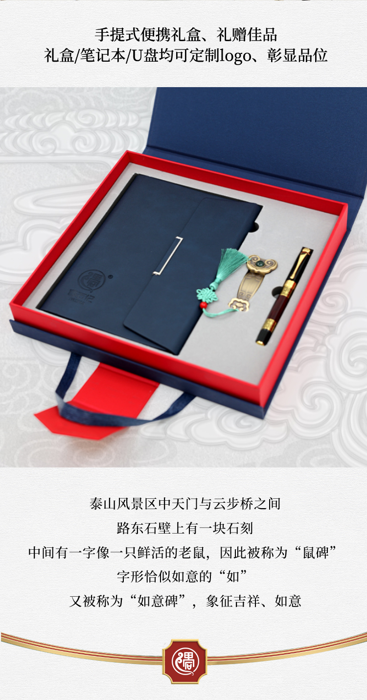 遇石记泰山如意U盘笔记本签字笔礼盒 商务礼品定制logo