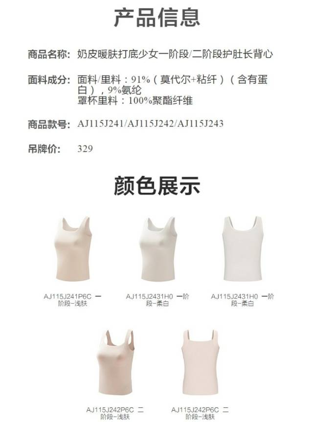 【春上新】8楼爱慕儿童Aimer Kids女孩奶皮暖肤打底一阶段护肚长背心AJ115J243,吊牌价329元