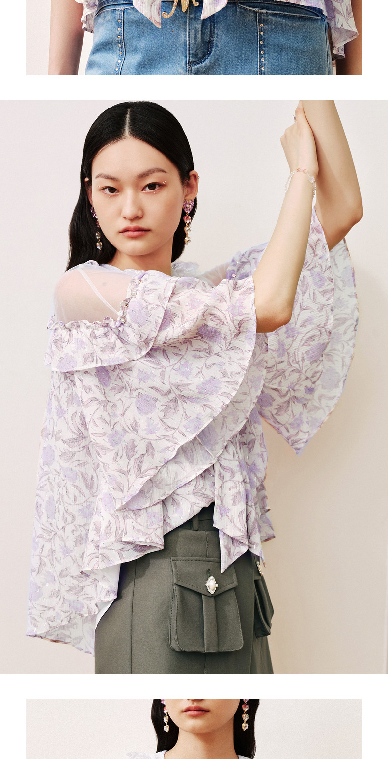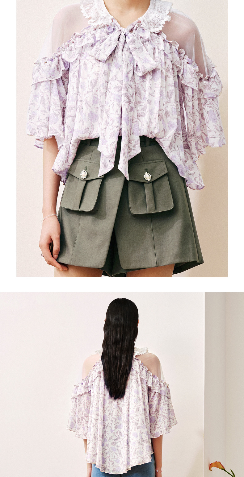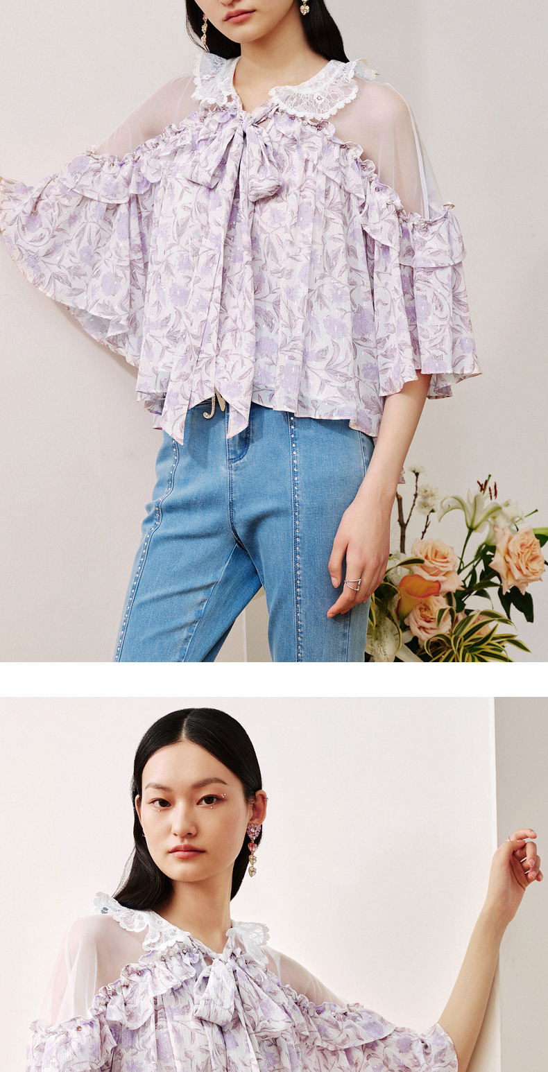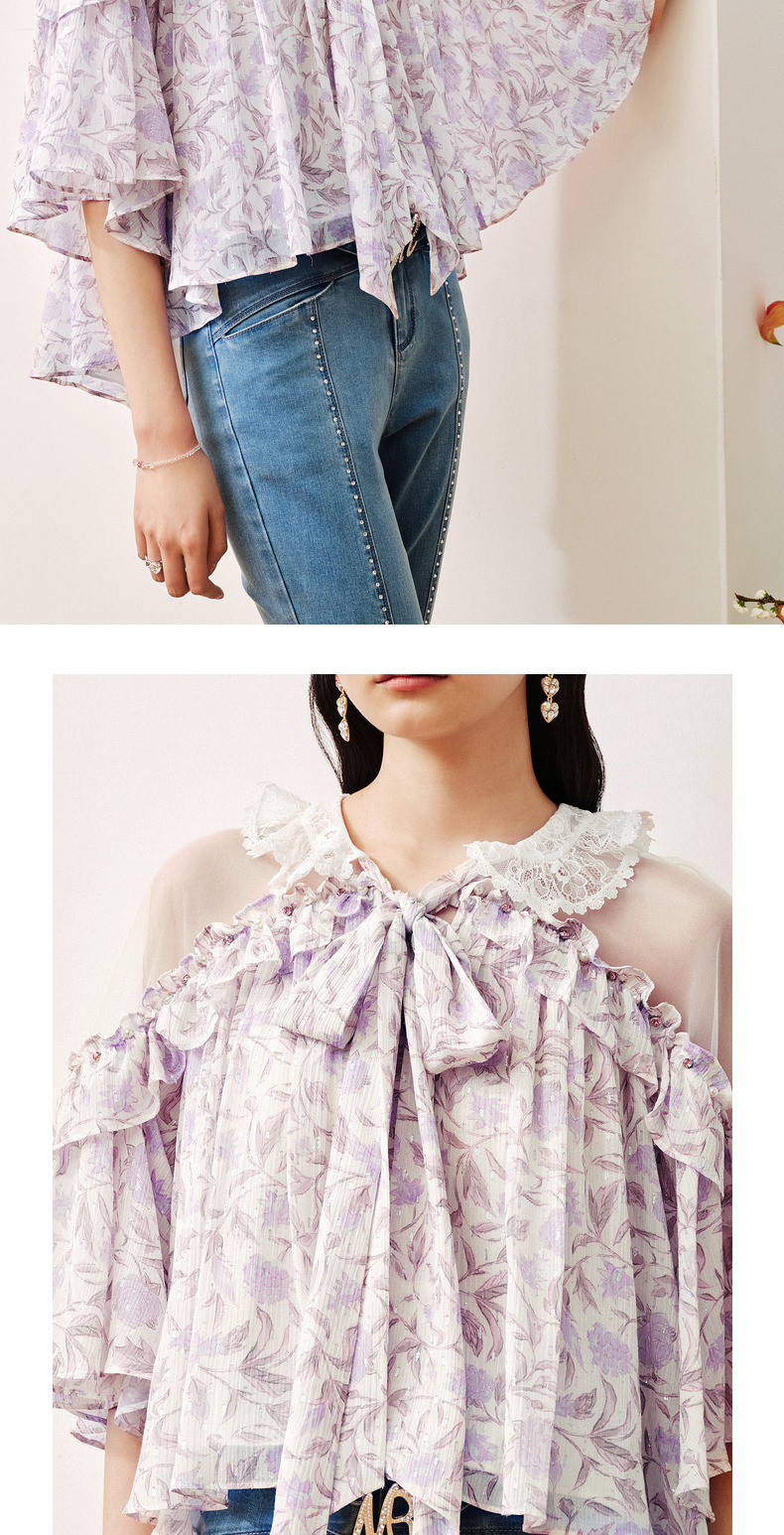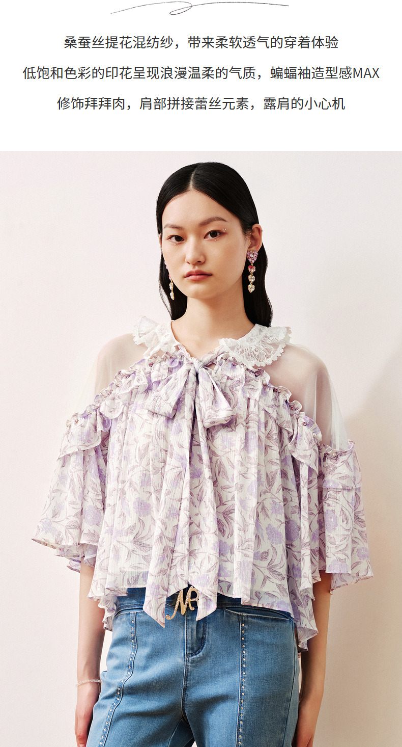 MAXRIENY甜美少女桑蚕丝雪纺衫系带宽松上衣(货号:MC88TP509)
