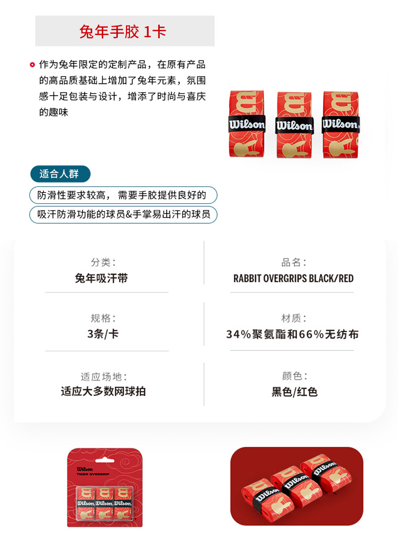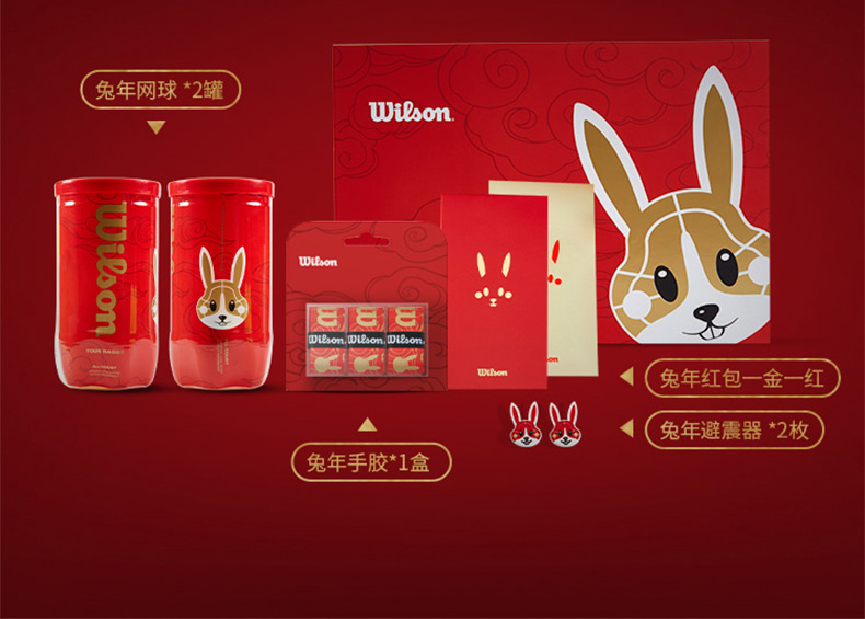 2023新款Wilson威尔胜兔年限定礼盒套装 网球手胶避震器红包 春节送礼收藏