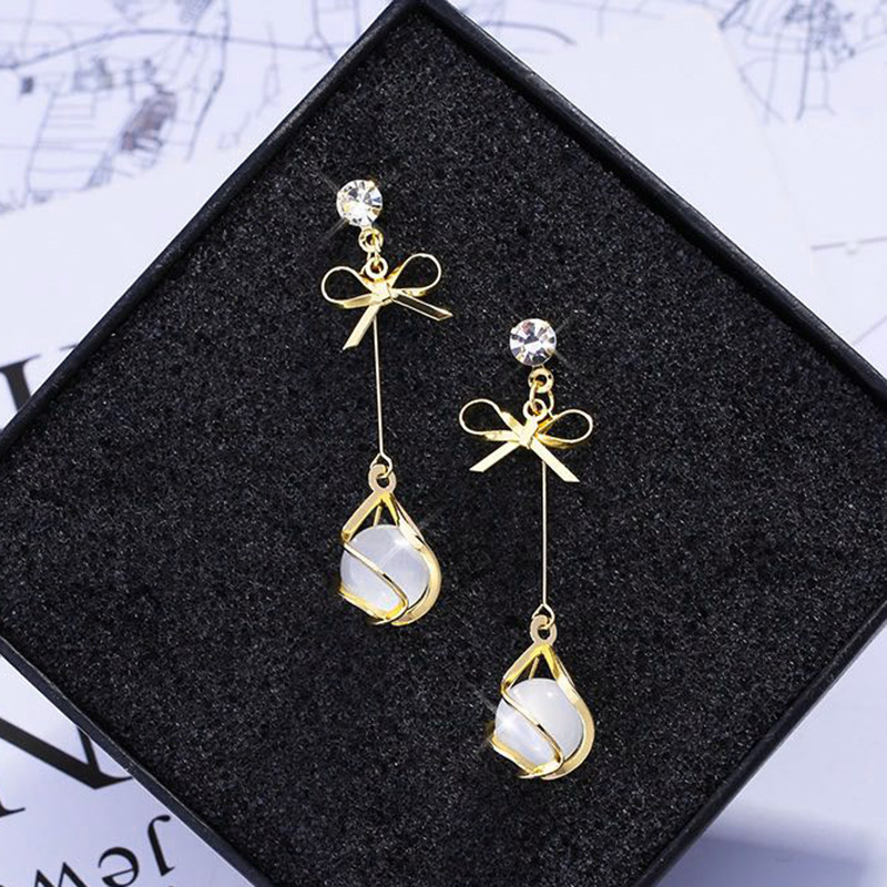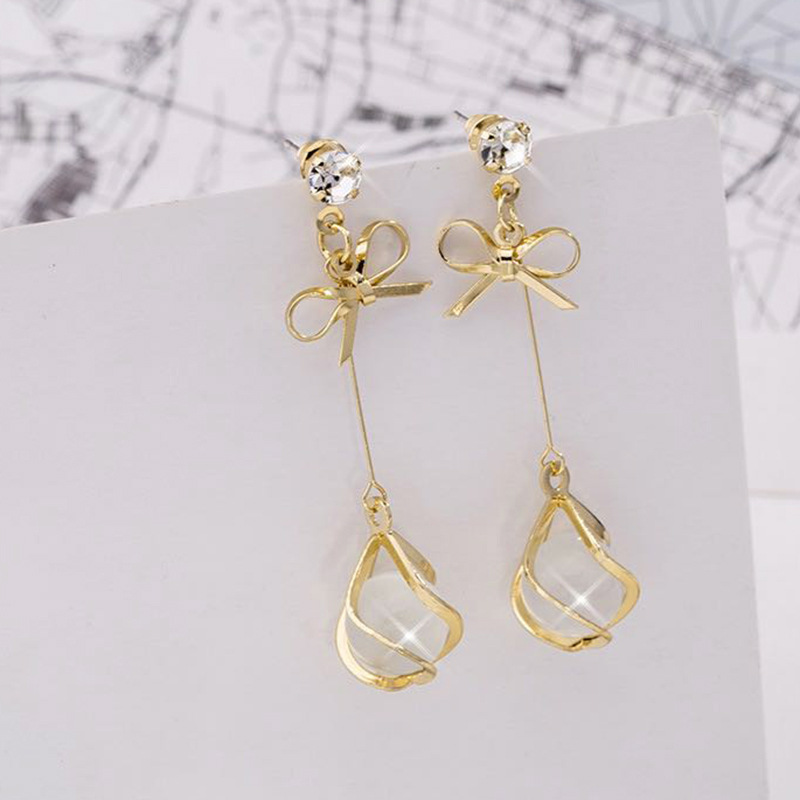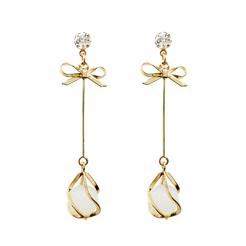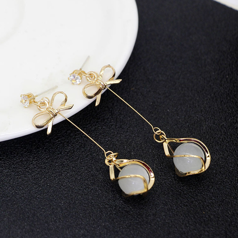 JU-A19欧美猫眼石镂空长款蝴蝶结耳环韩版个性流苏耳饰气质简约耳钉
