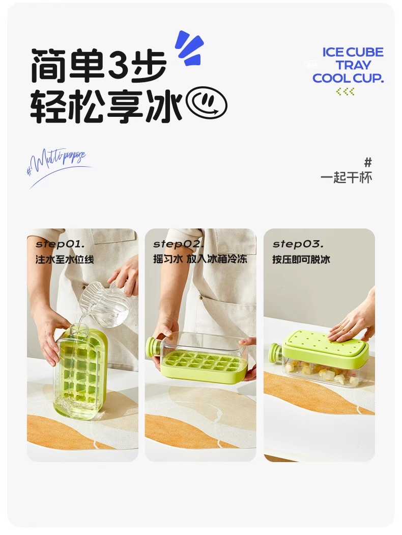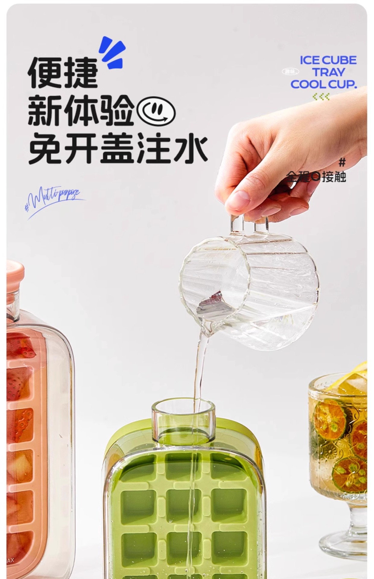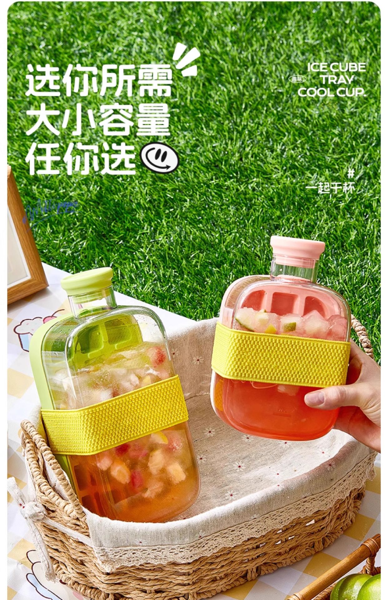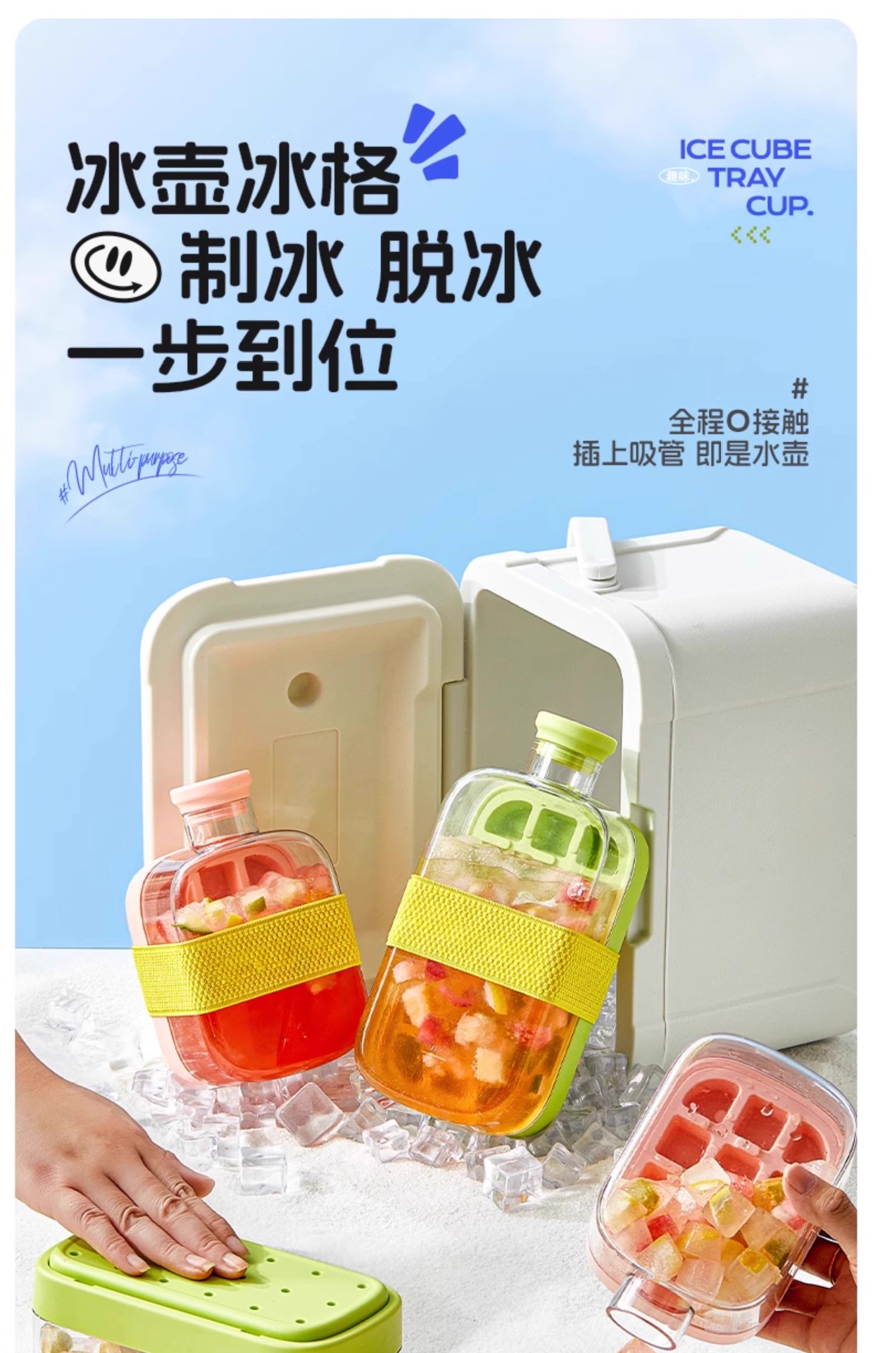 【没有甜甜的文案,只有吃冰的浪漫~】冰格水杯新款 2025高颜值水壶 食品级冰块模具 便携吸管杯夏-QQ