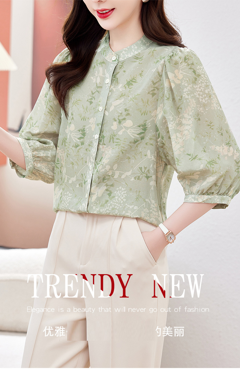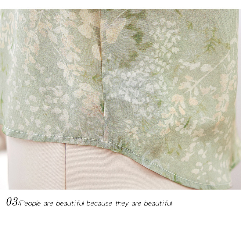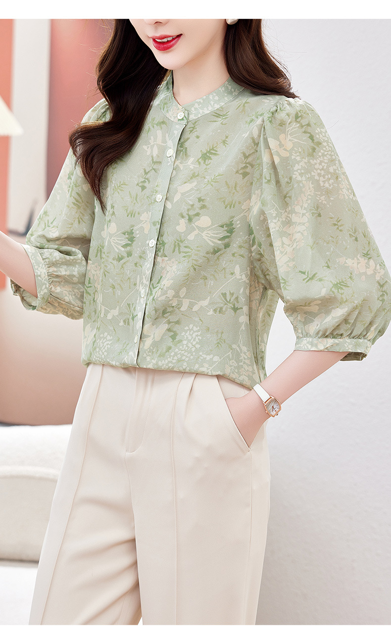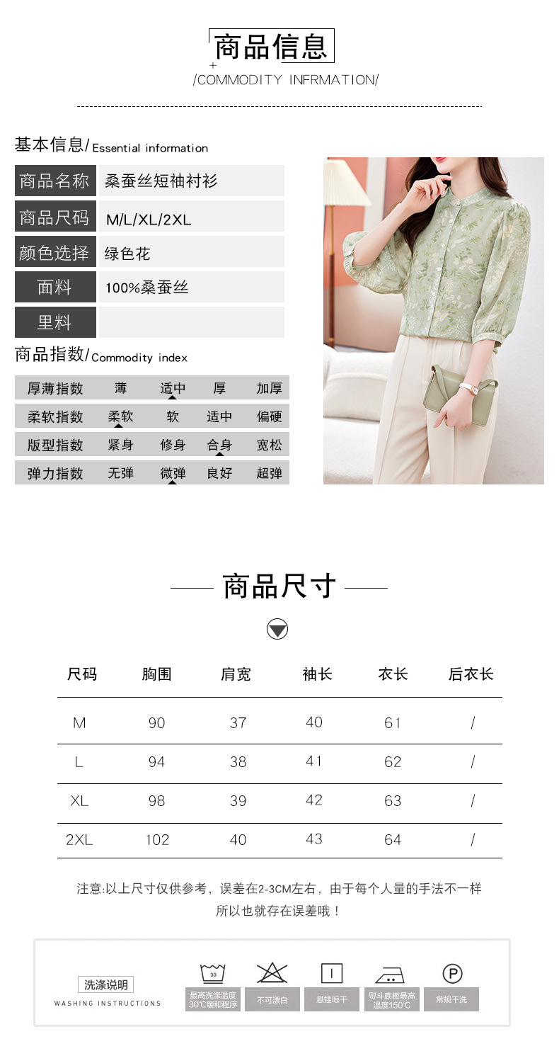 KQ-506015夏季新款五分袖真丝花色上衣女士时尚桑蚕丝小衫宽松舒适