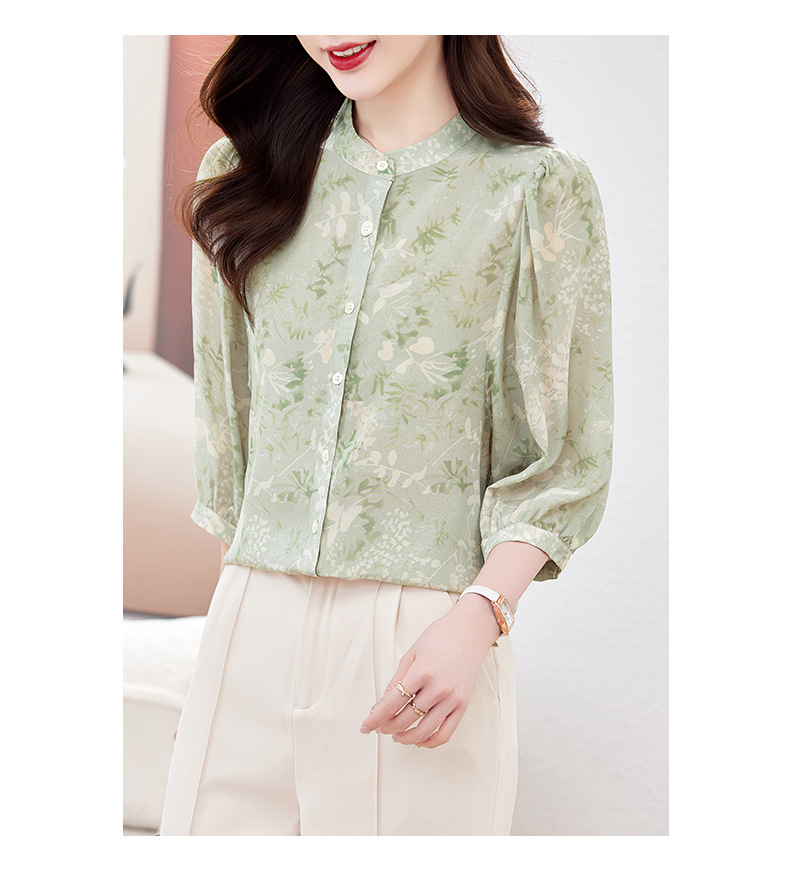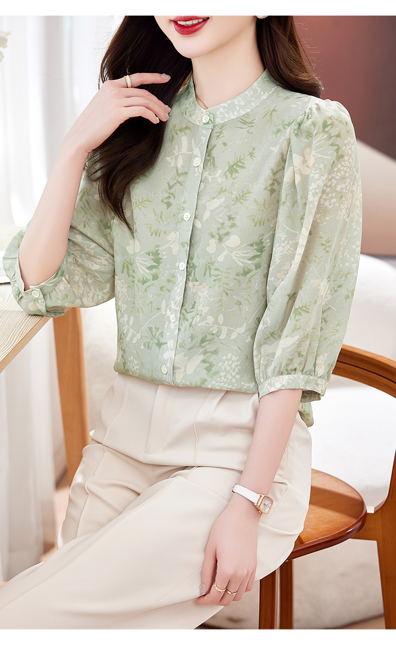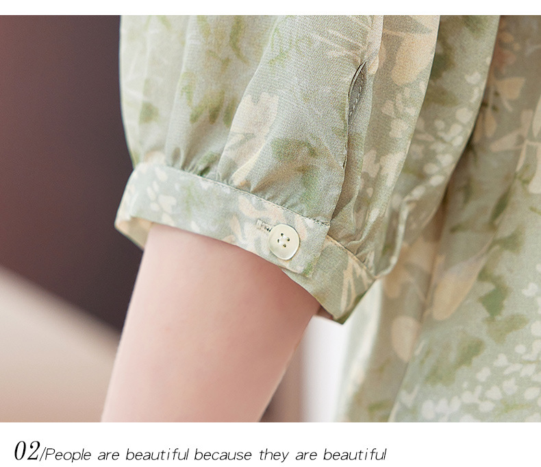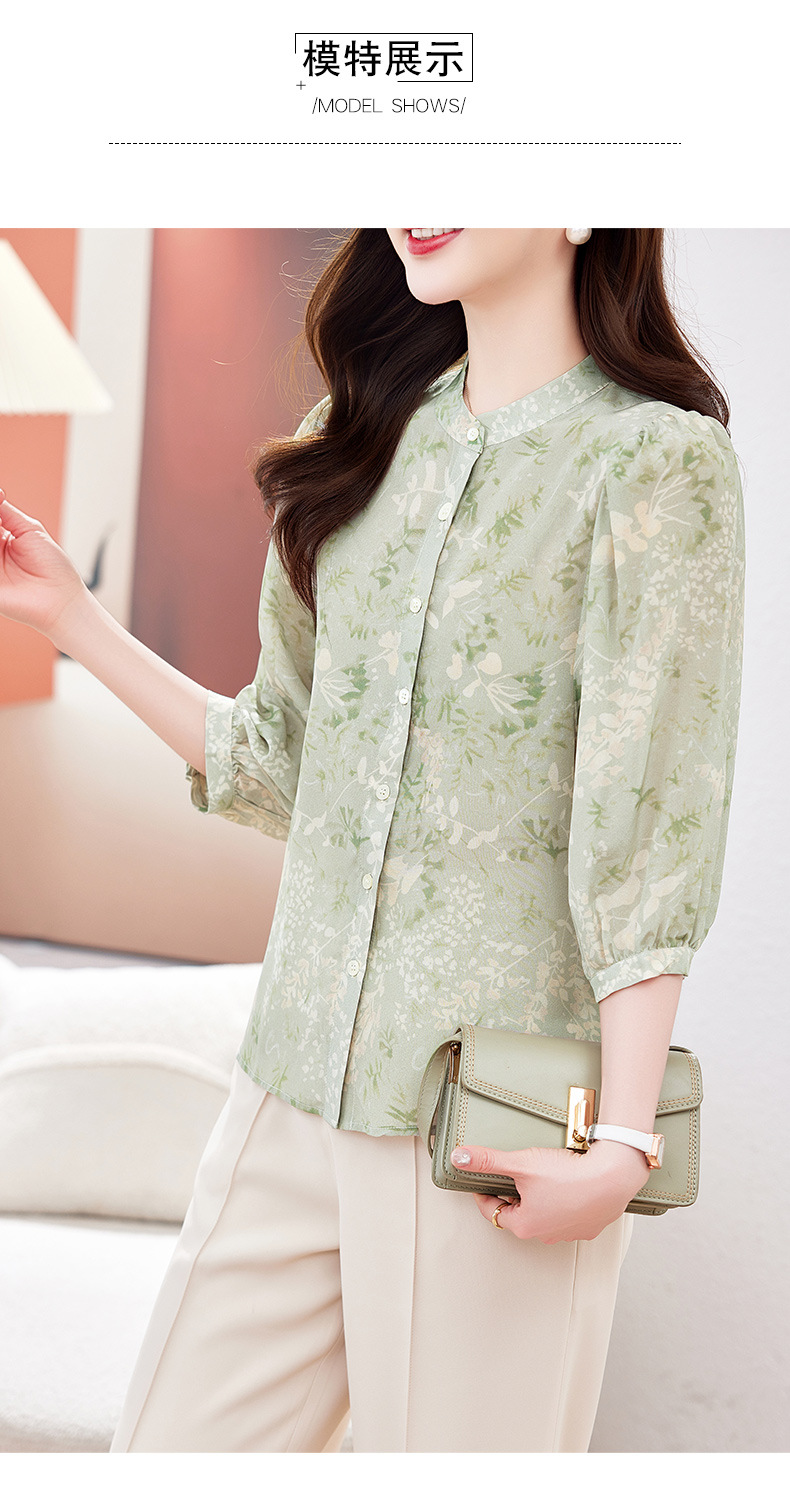 KQ-506015夏季新款五分袖真丝花色上衣女士时尚桑蚕丝小衫宽松舒适