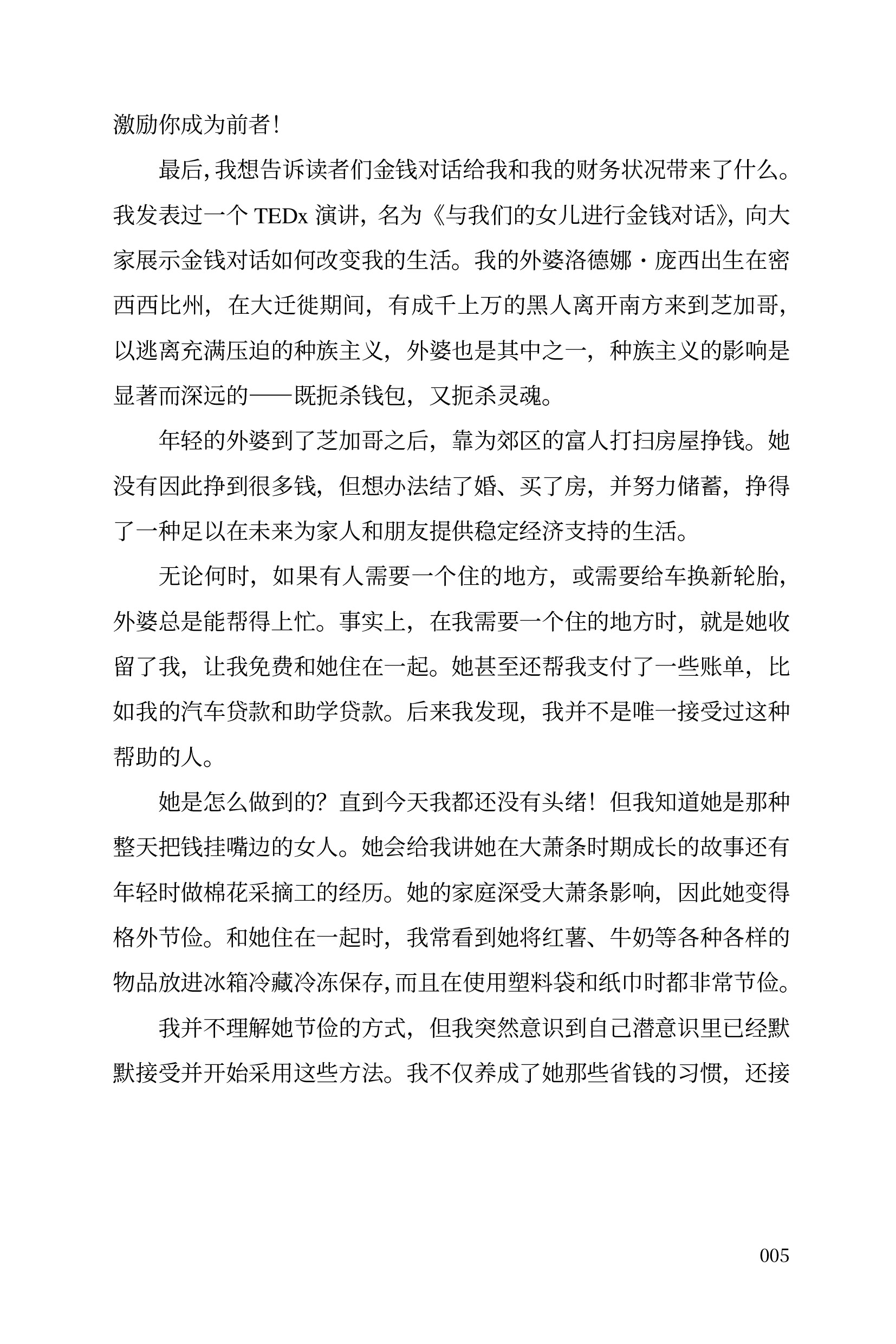 个人理财专家、作家及 TEDx 演讲者。曾深陷债务,后创立理财博客 “增长原理”,帮助数百万人改善财务状况。多篇文章发表于《商业内幕》《赫芬顿邮报》等媒体。2018 年 TEDx 演讲《与女儿的金钱对话》引发广泛共鸣。她的使命是,让女性不再害怕谈钱,让妈妈成为女儿最好的财务老师。