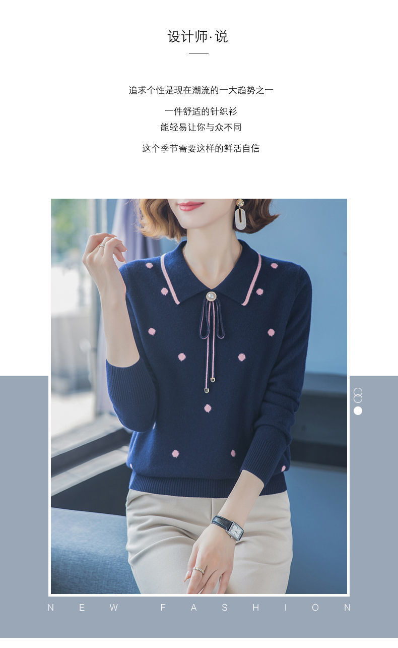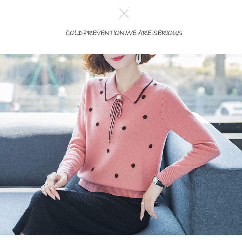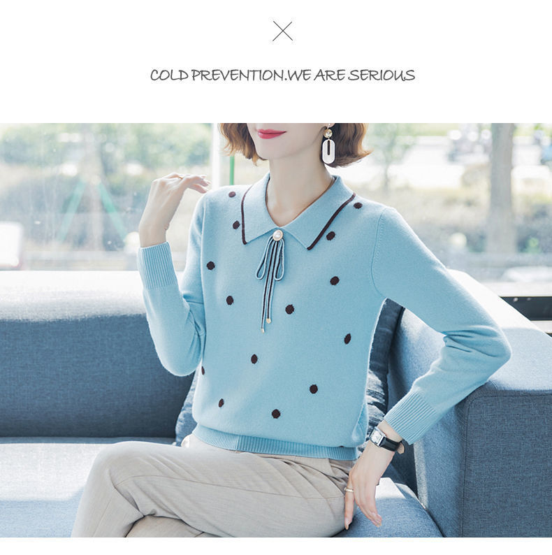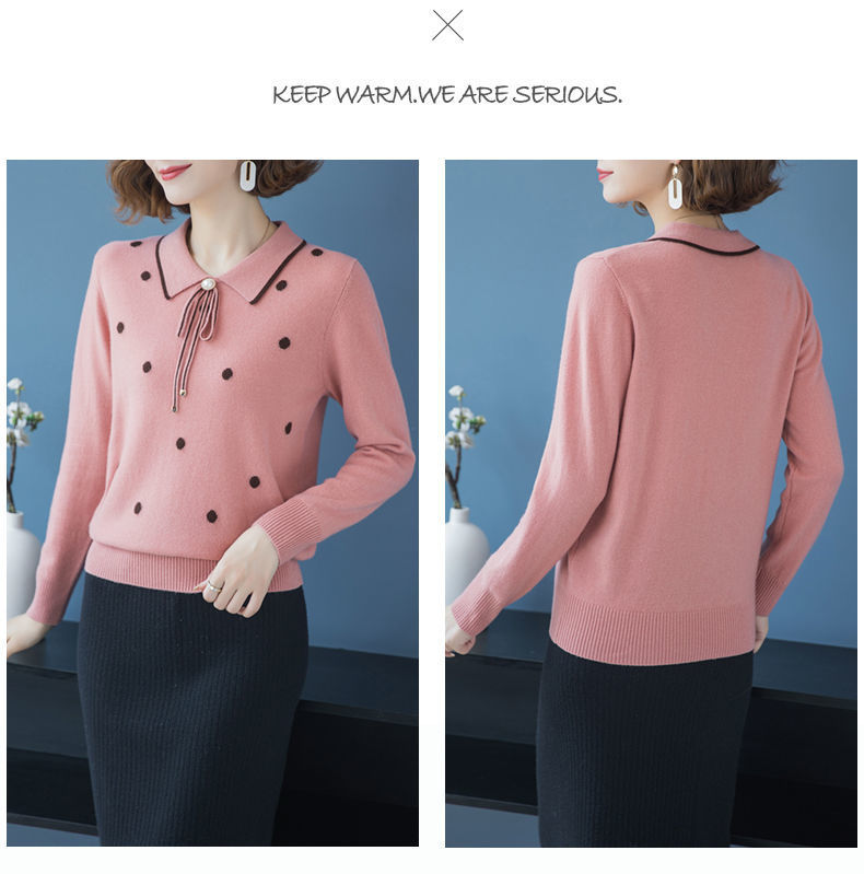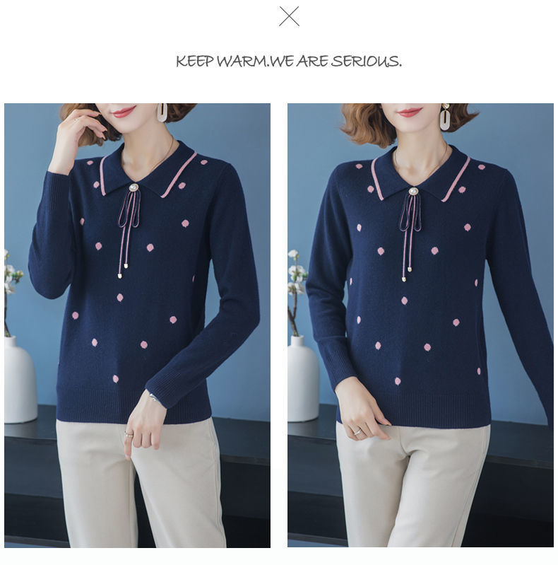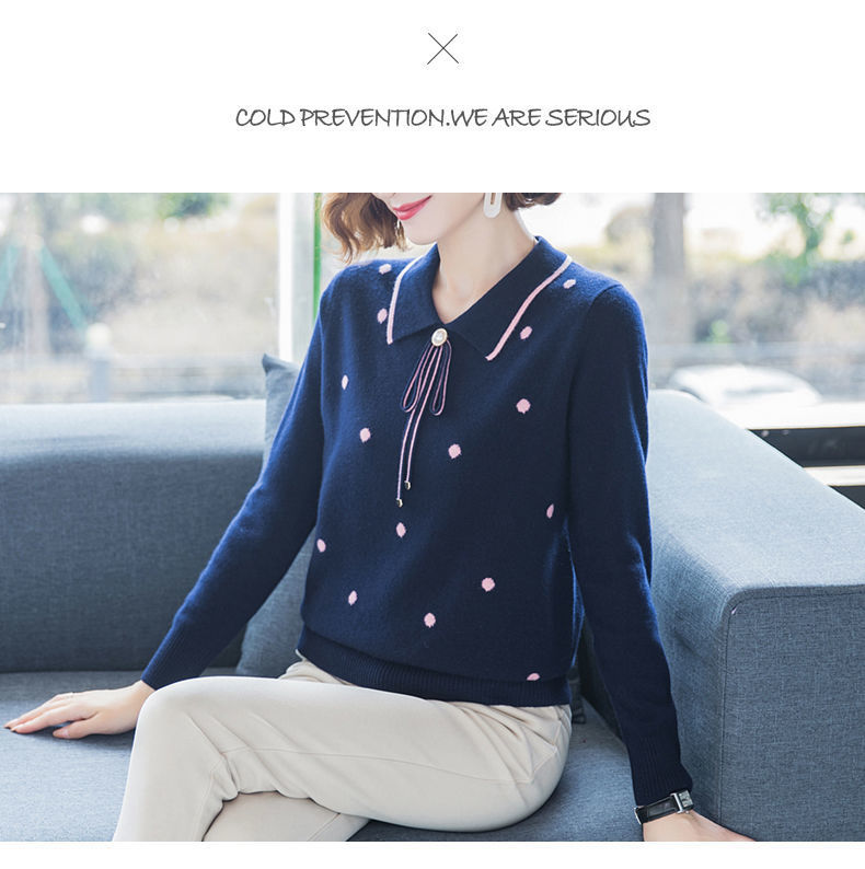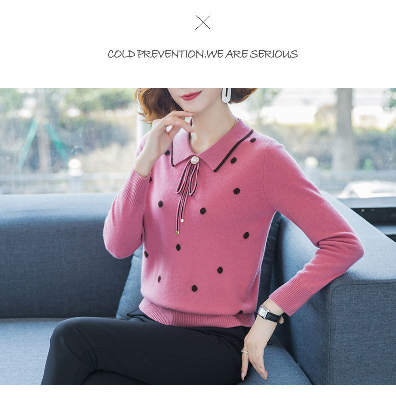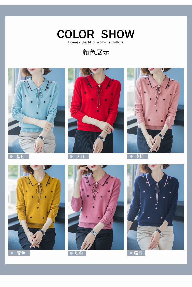 LHZ-40176 2023春秋新款中年妈妈装上衣套头翻领洋气毛衣时尚针织衫打底衫潮