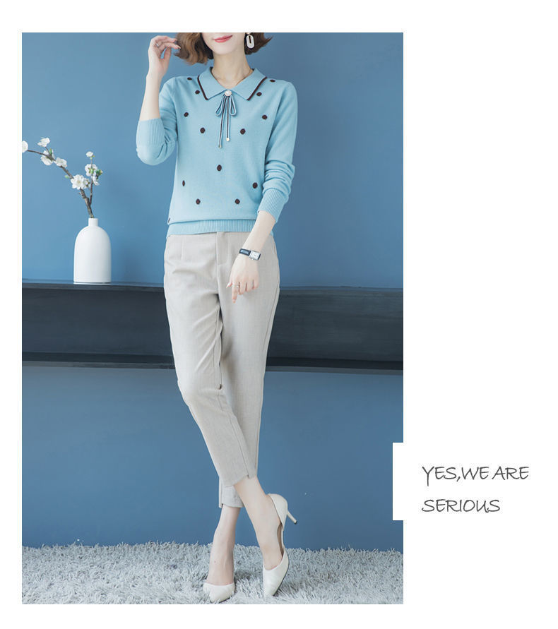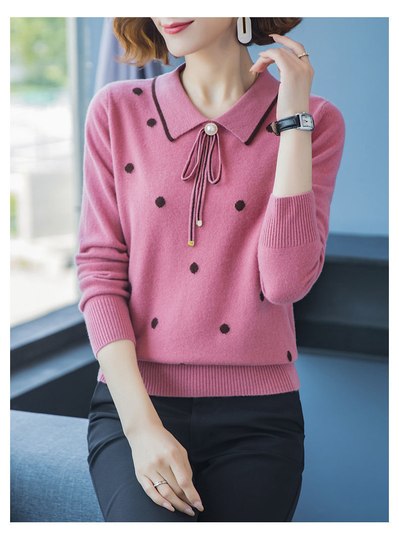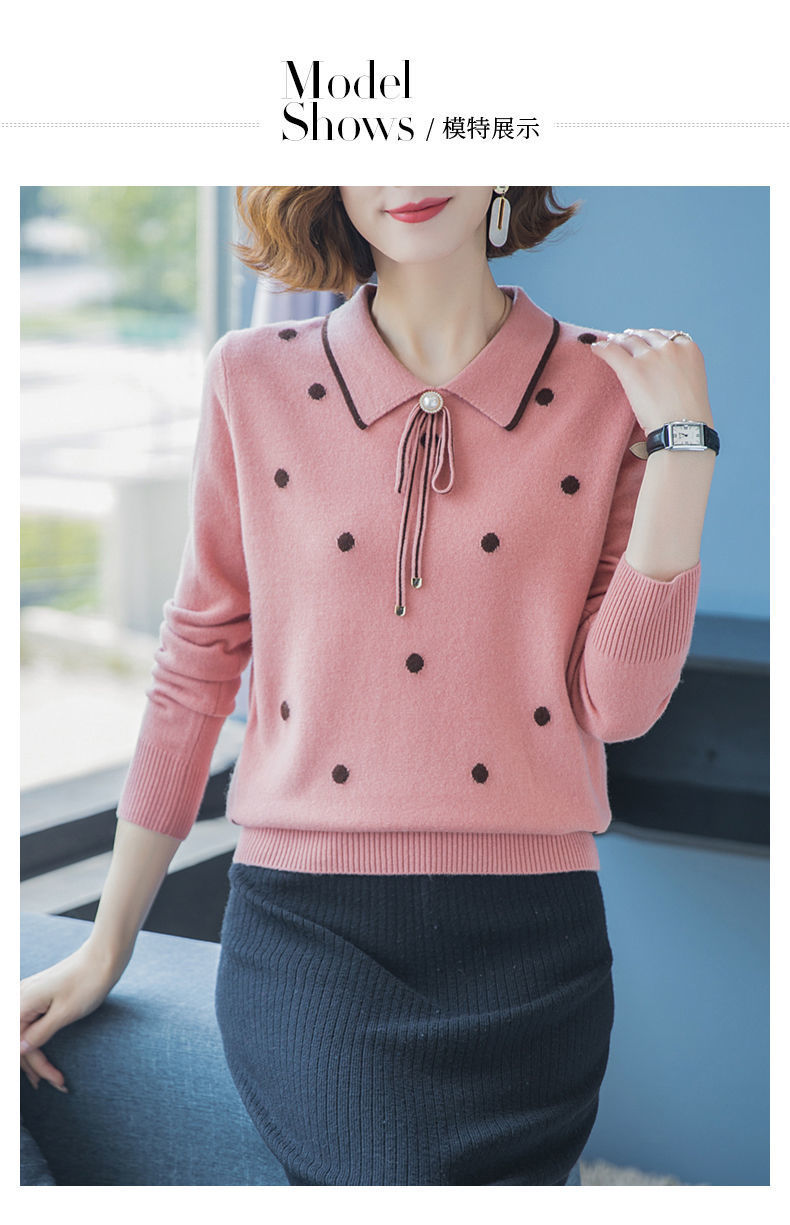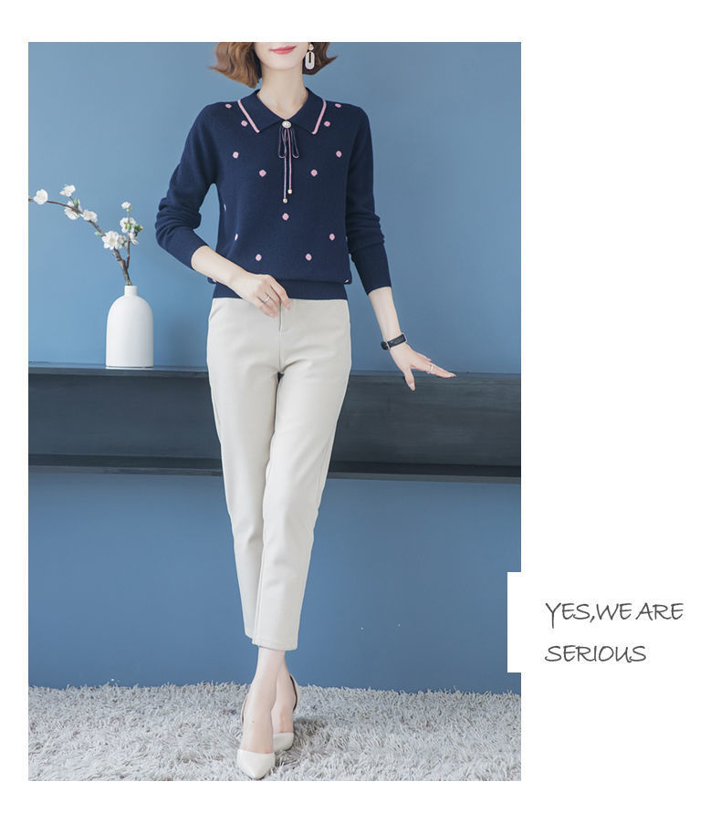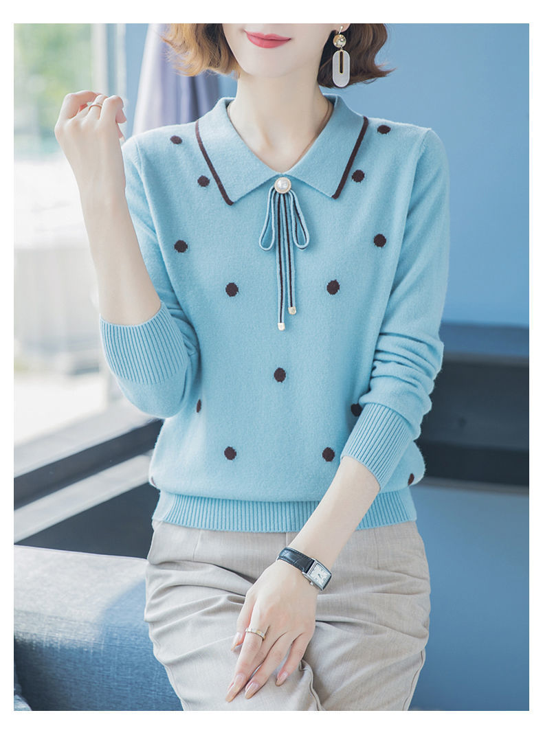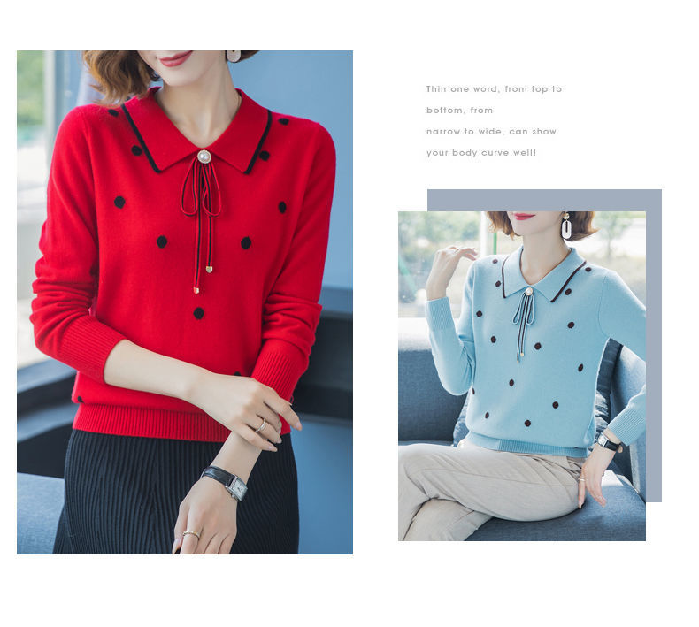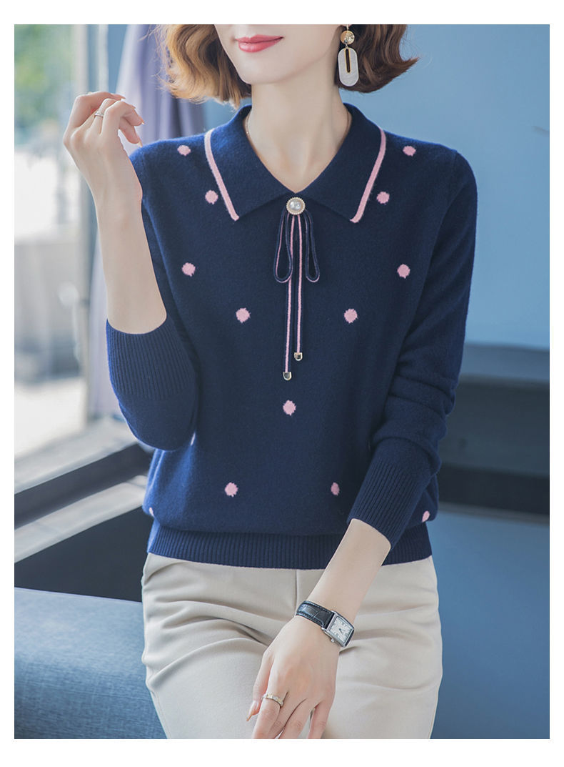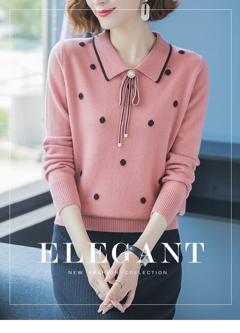 LHZ-40176 2023春秋新款中年妈妈装上衣套头翻领洋气毛衣时尚针织衫打底衫潮