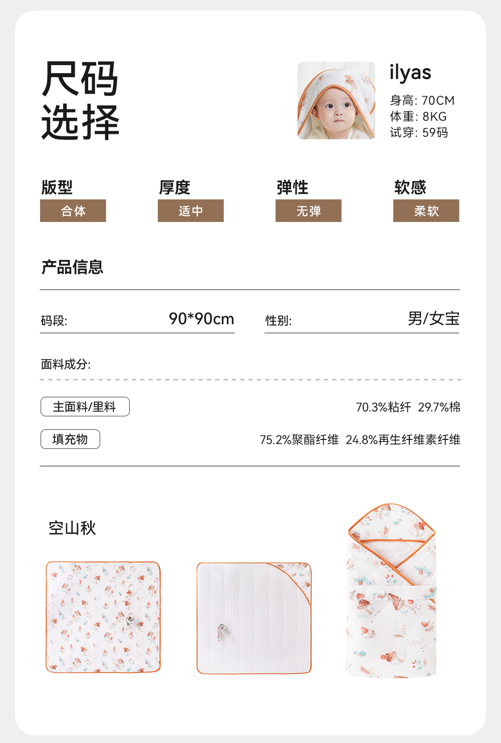 英氏婴儿包被春秋竹棉7A抗菌新生儿包被四季抱被新款抱毯