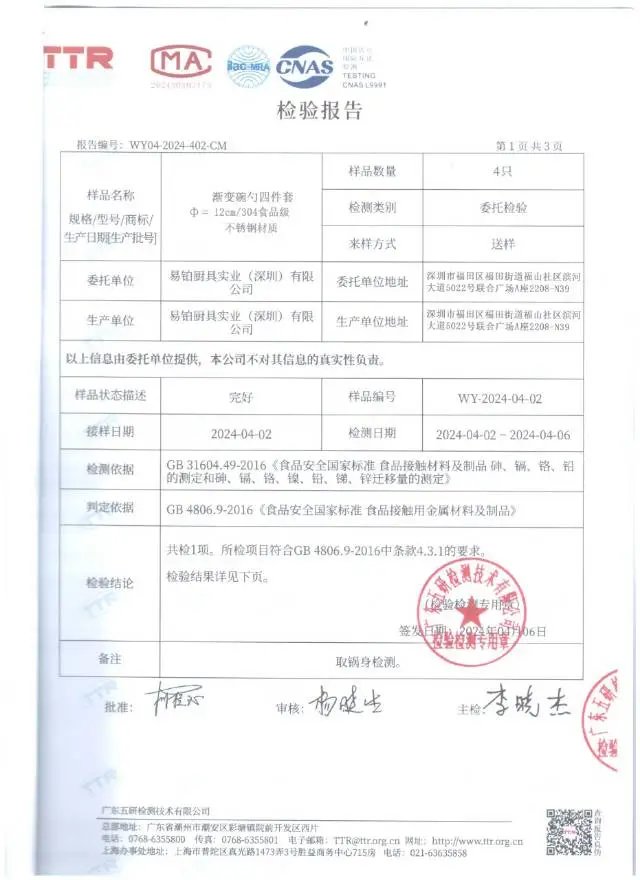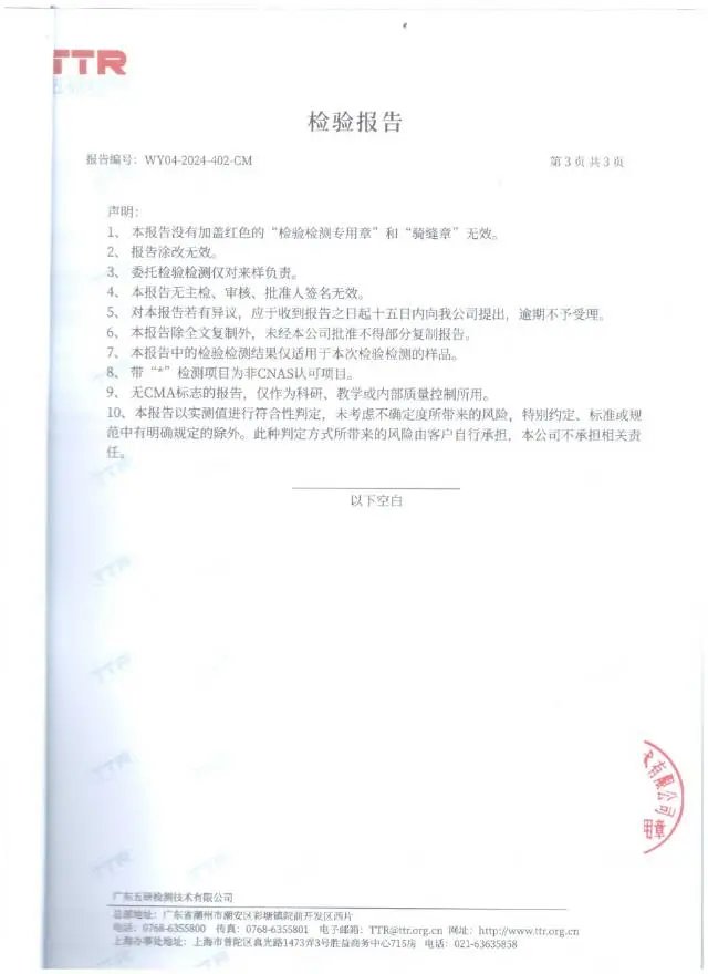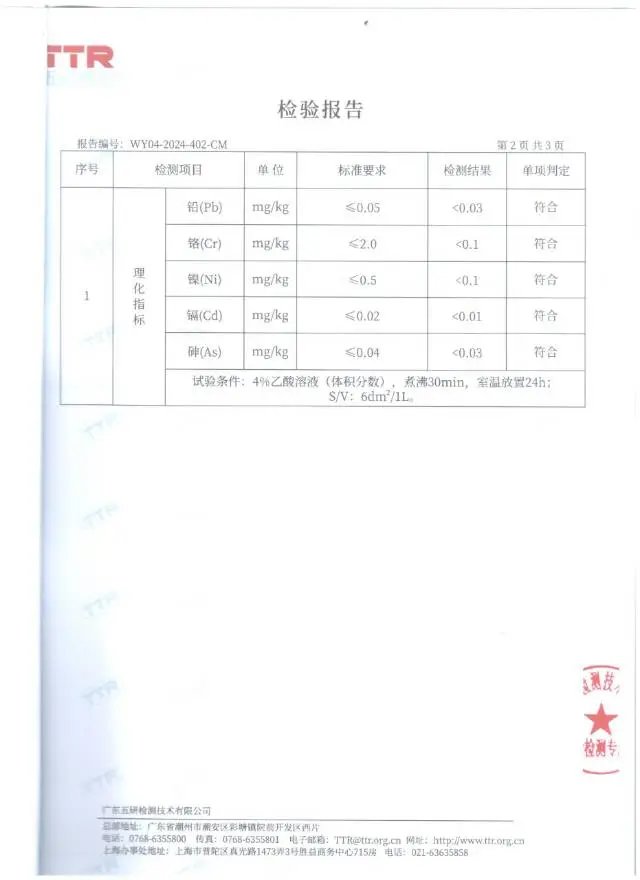 CMA国际互认权威检测报告,各项检测指标结果均符合标准要求