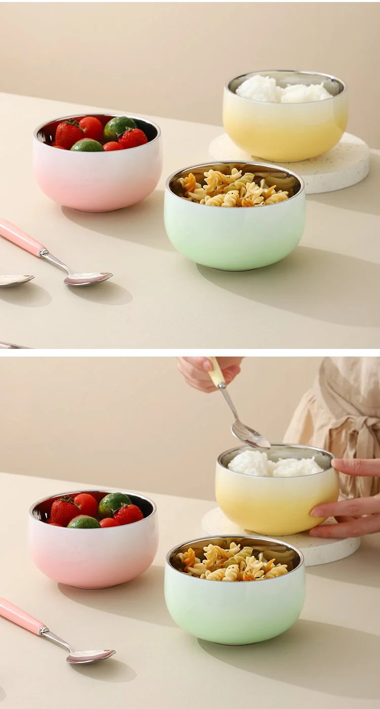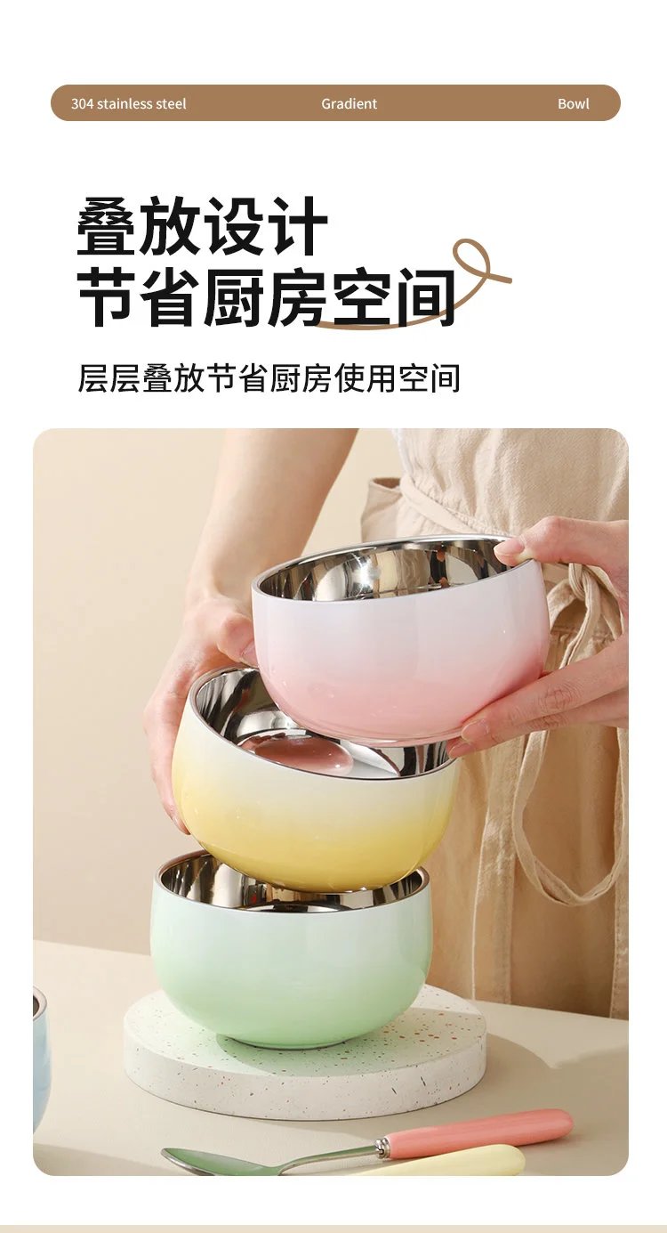 304不锈钢材质,耐用又安全,渐变色设计更是美得不可方物。无论是早上的牛奶麦片,还是晚上的水果沙拉,用这样的碗勺吃起来,感觉食物都美味了好几分。