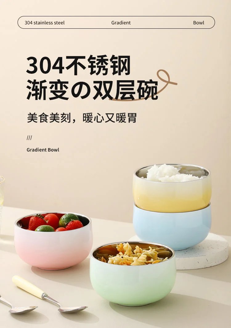 网红爆款国风渐变 304碗 双层隔热隔冷