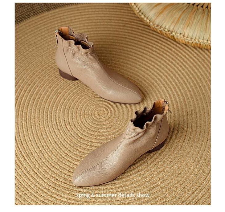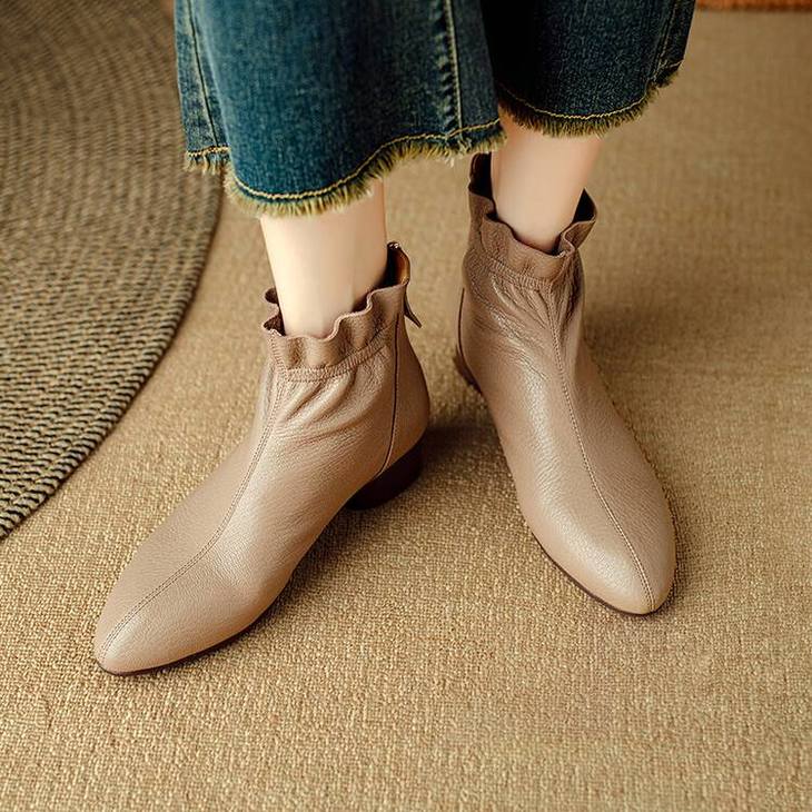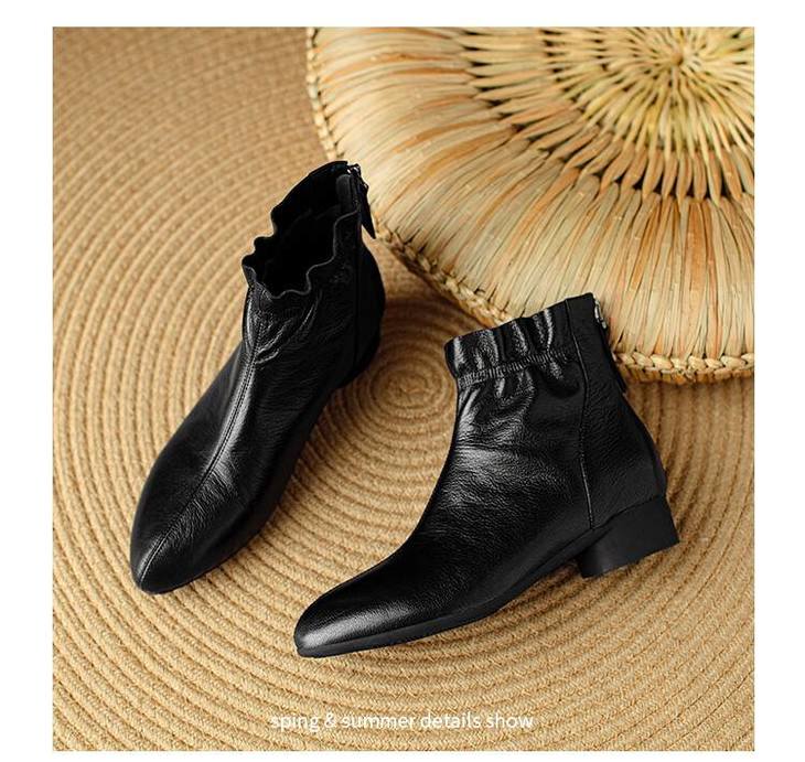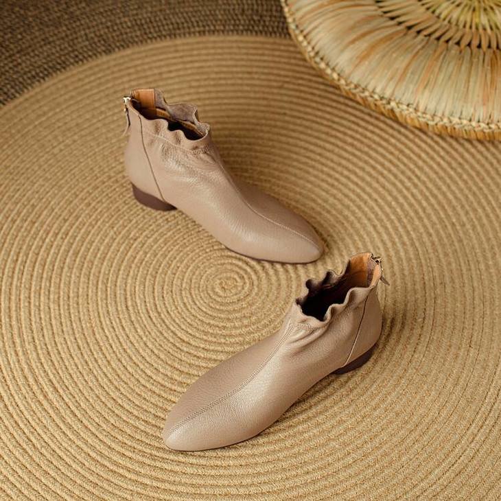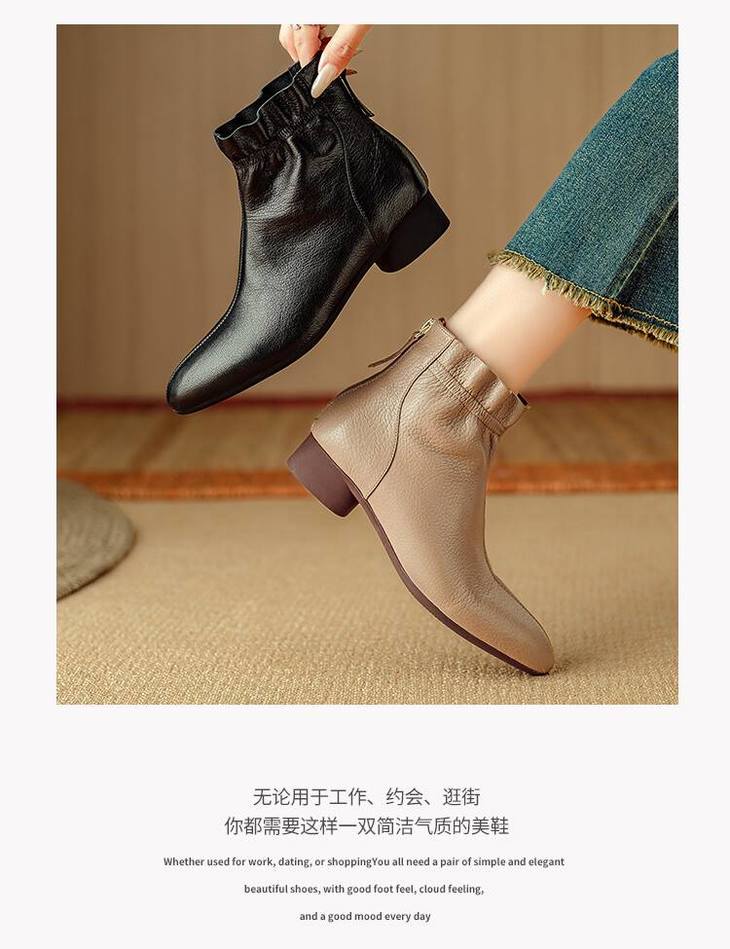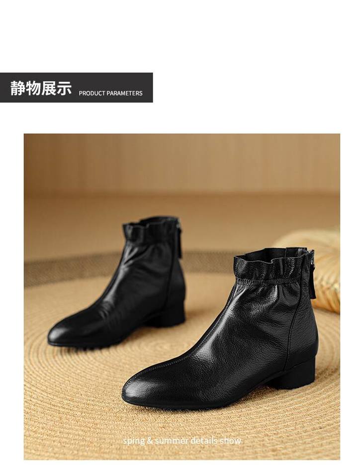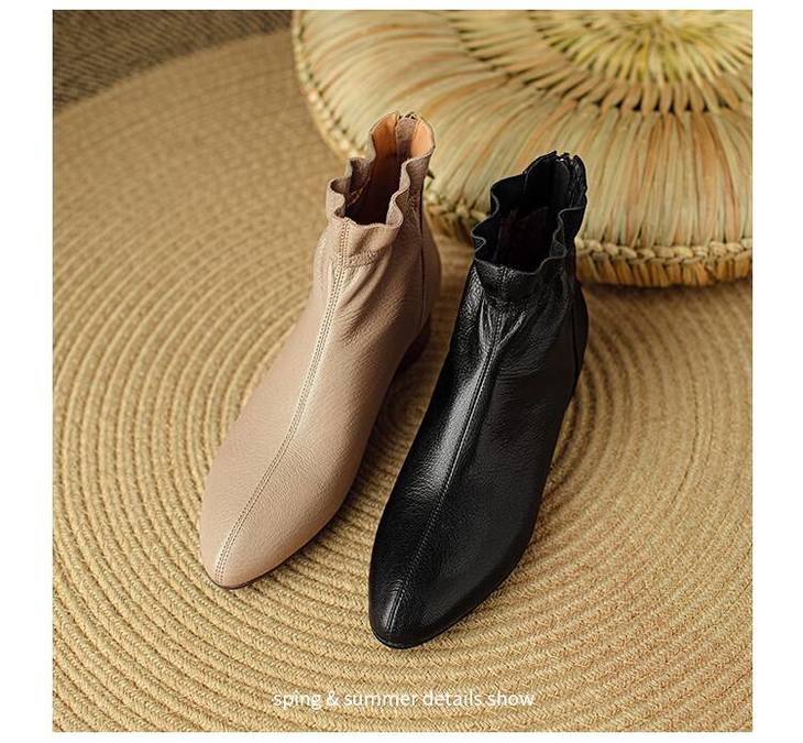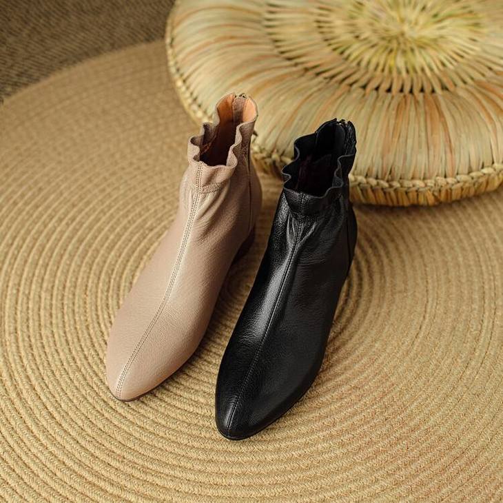 【预售5天】小羊皮软底短靴女初秋低跟小香风尖头超软瘦瘦靴NJMK&K1158