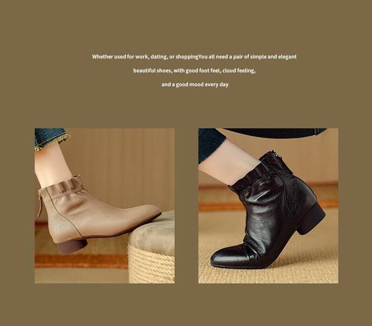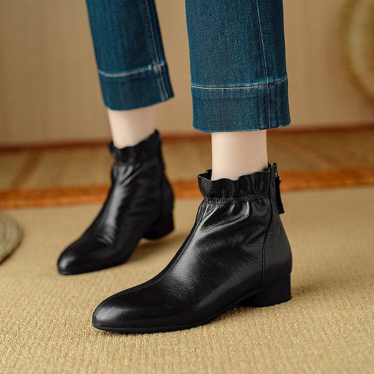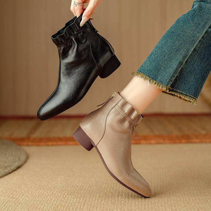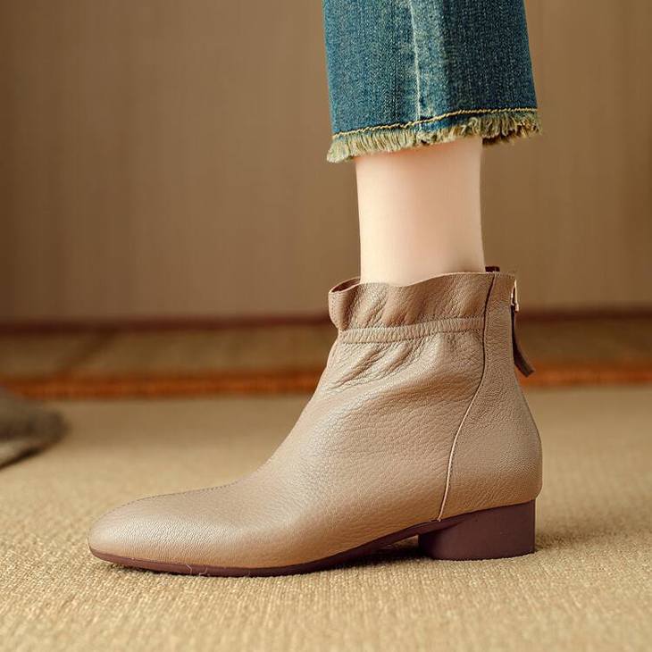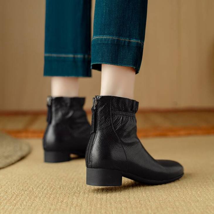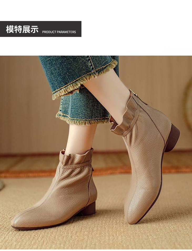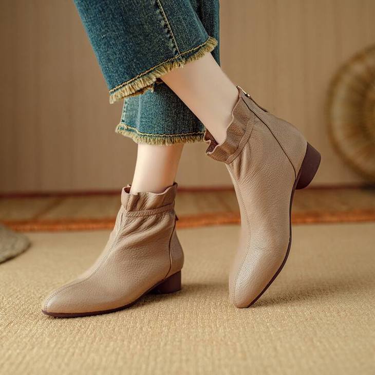 【预售5天】小羊皮软底短靴女初秋低跟小香风尖头超软瘦瘦靴NJMK&K1158
