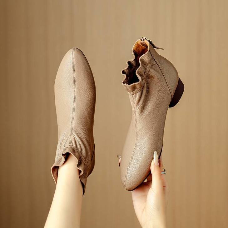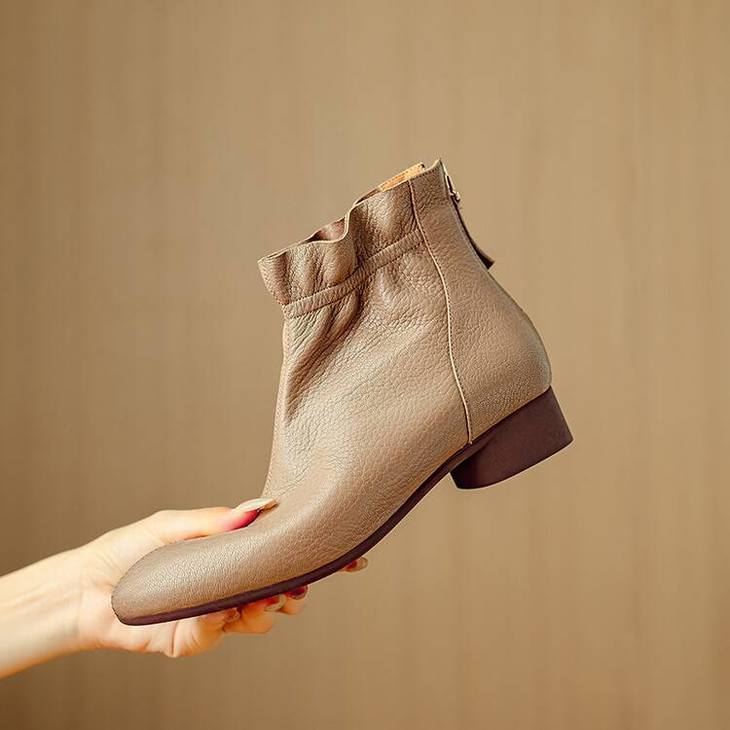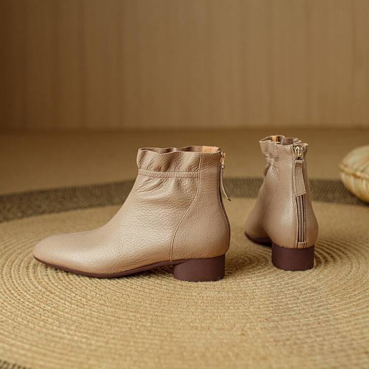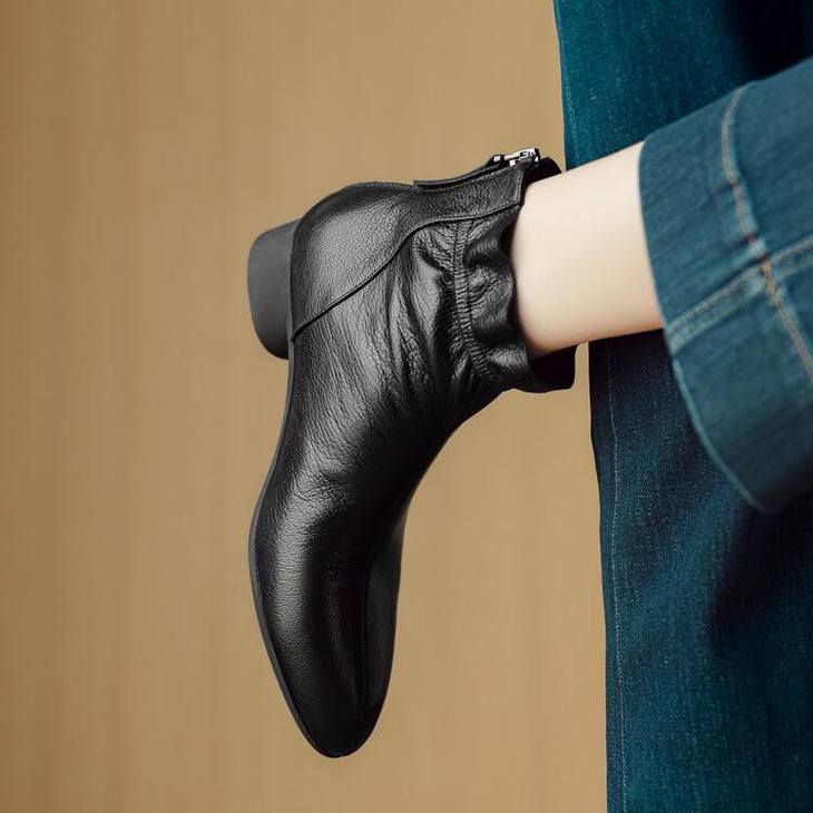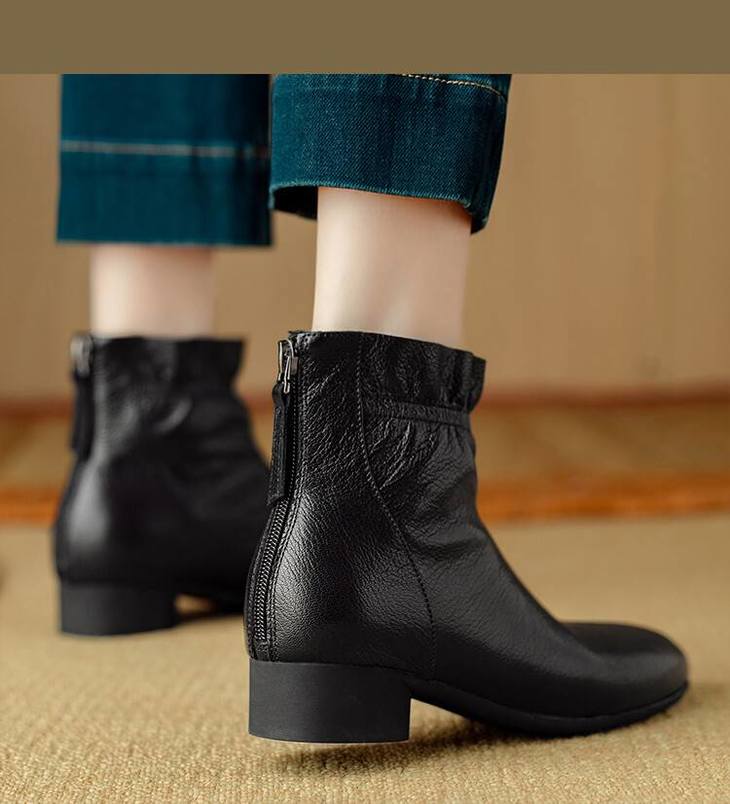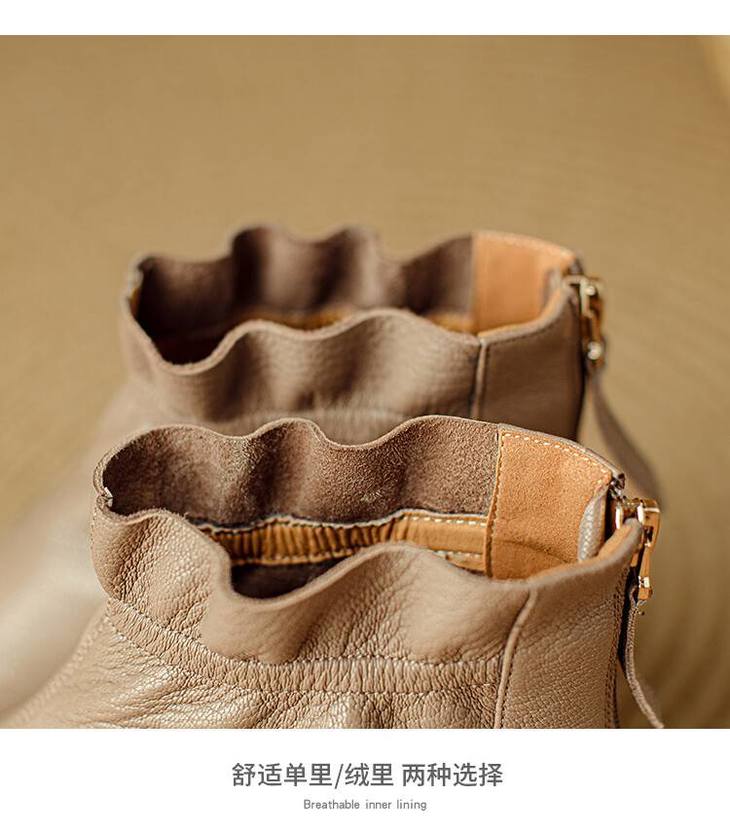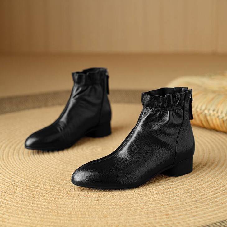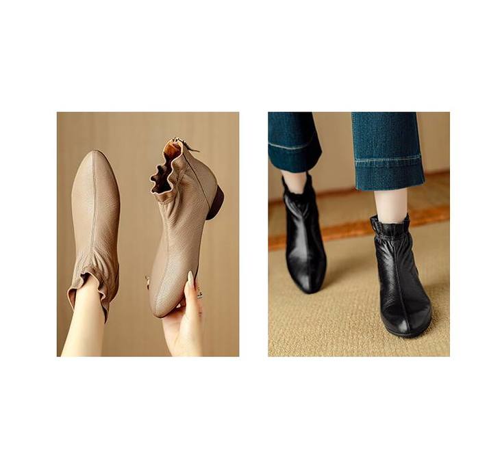 【预售5天】小羊皮软底短靴女初秋低跟小香风尖头超软瘦瘦靴NJMK&K1158