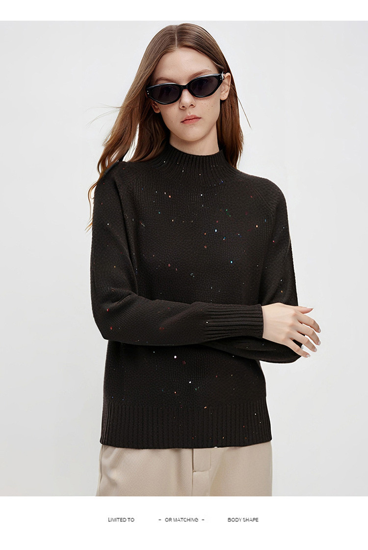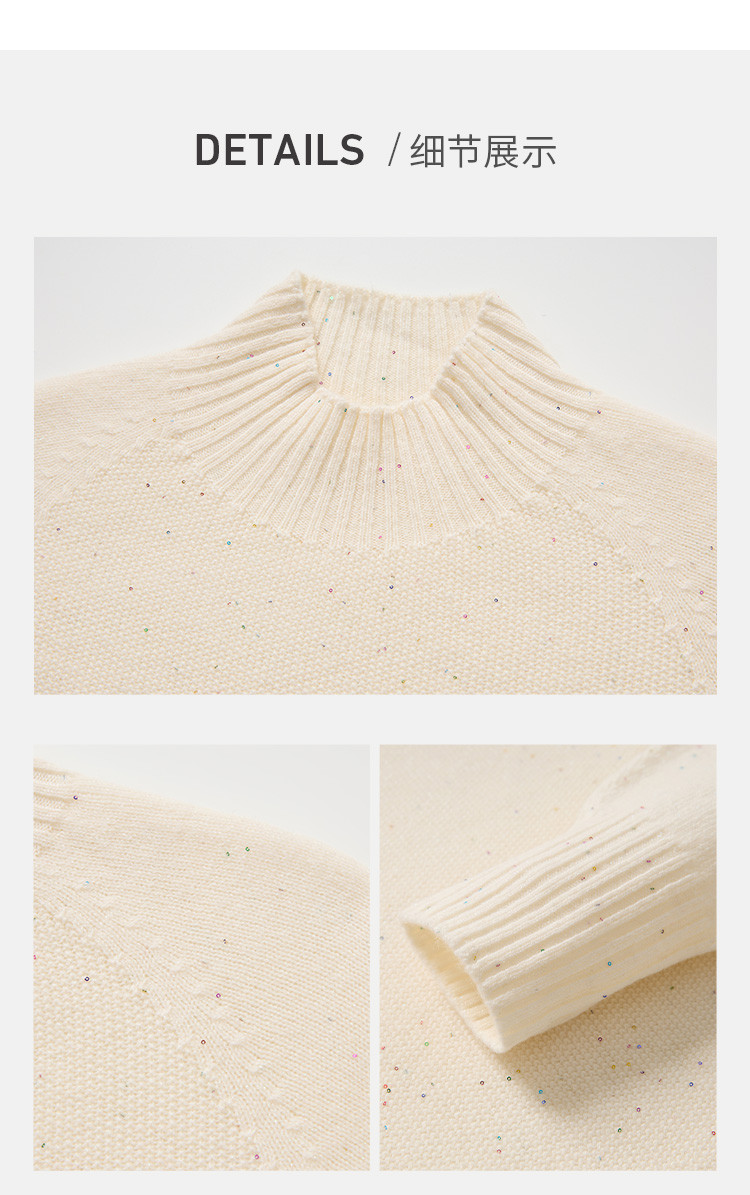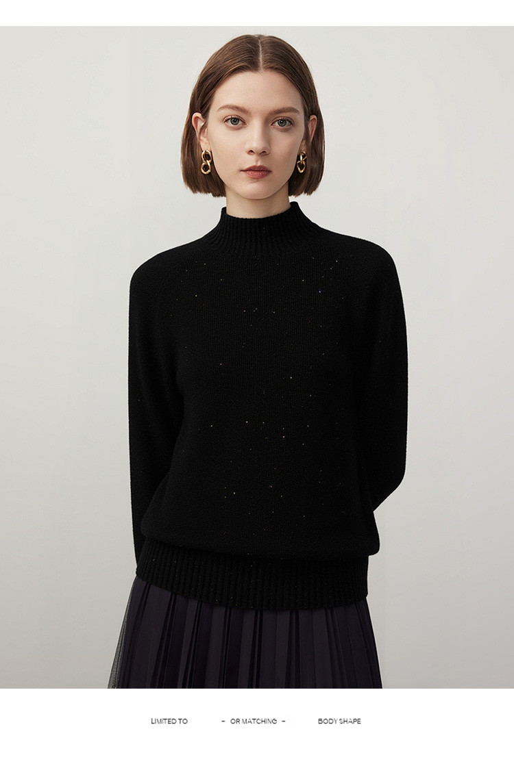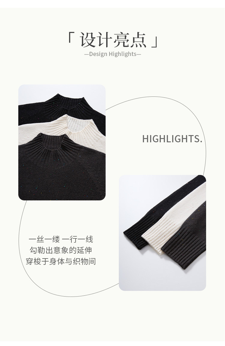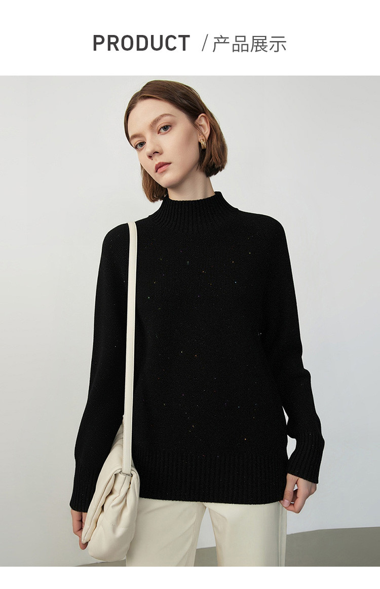 罗蒙秋冬女士半高领金丝套头羊毛衫百搭显瘦针织衫舒适打底衫上衣