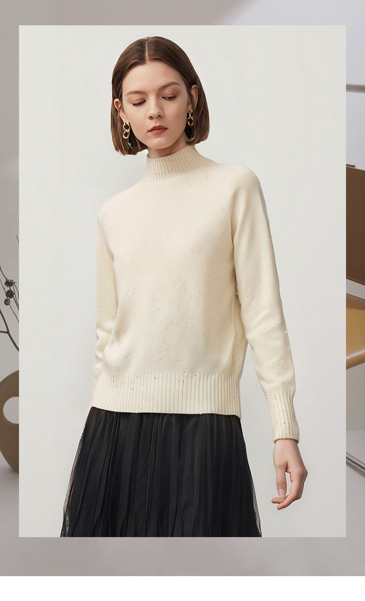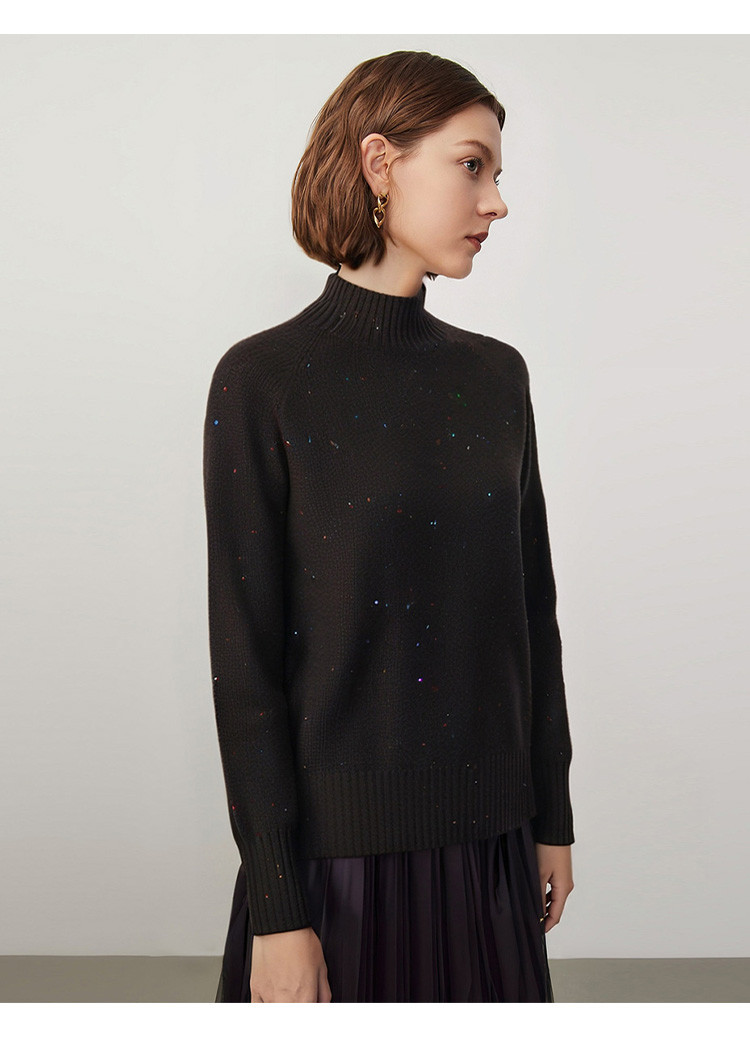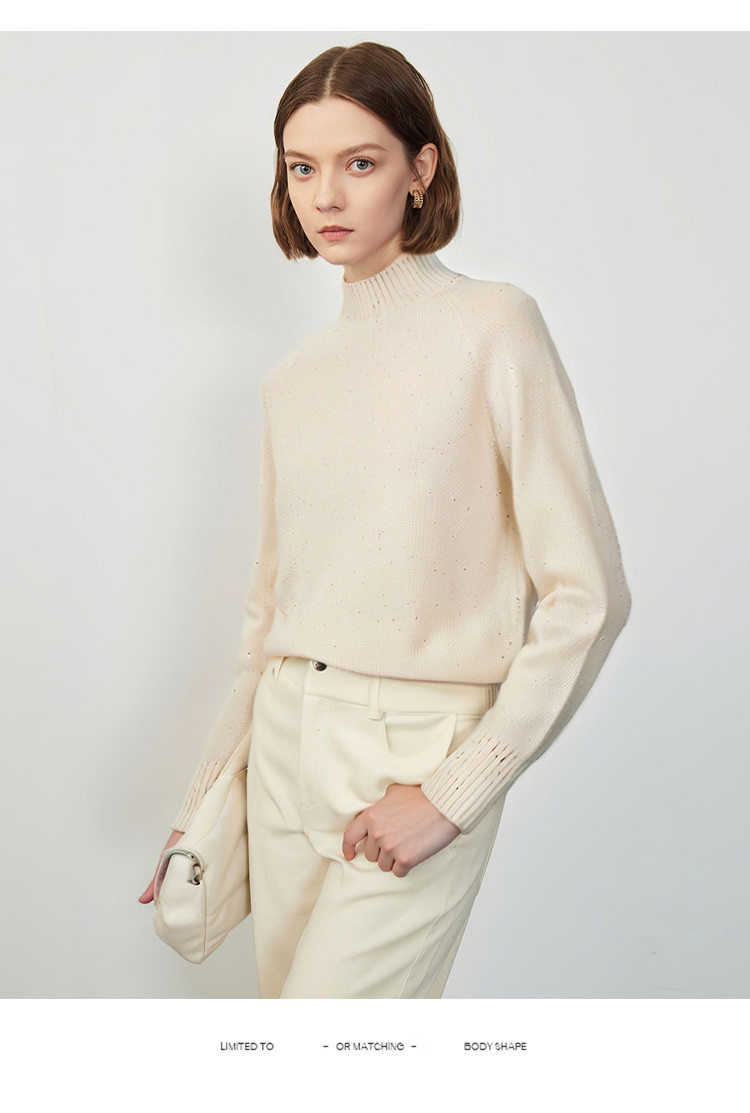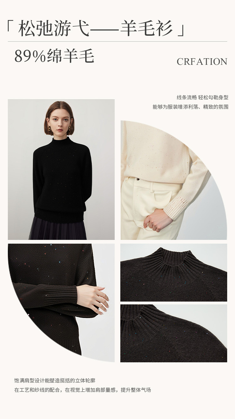 罗蒙秋冬女士半高领金丝套头羊毛衫百搭显瘦针织衫舒适打底衫上衣