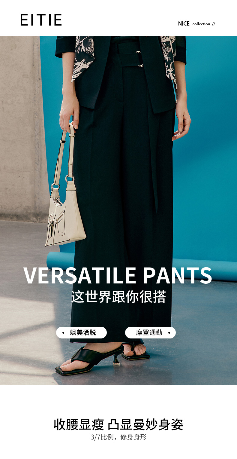 EITIE爱特爱夏季新款通勤百搭显高显瘦直筒裤休闲裤女裤7405103