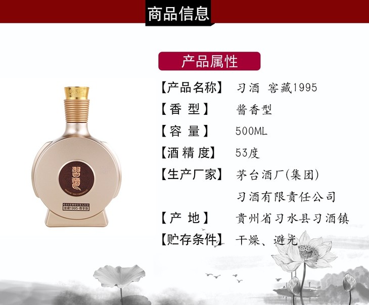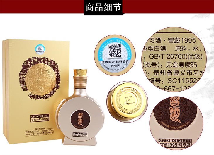 【推荐】贵州习酒 窖藏1995 尊享版 53度 酱香型白酒 500ml*6瓶 整箱装