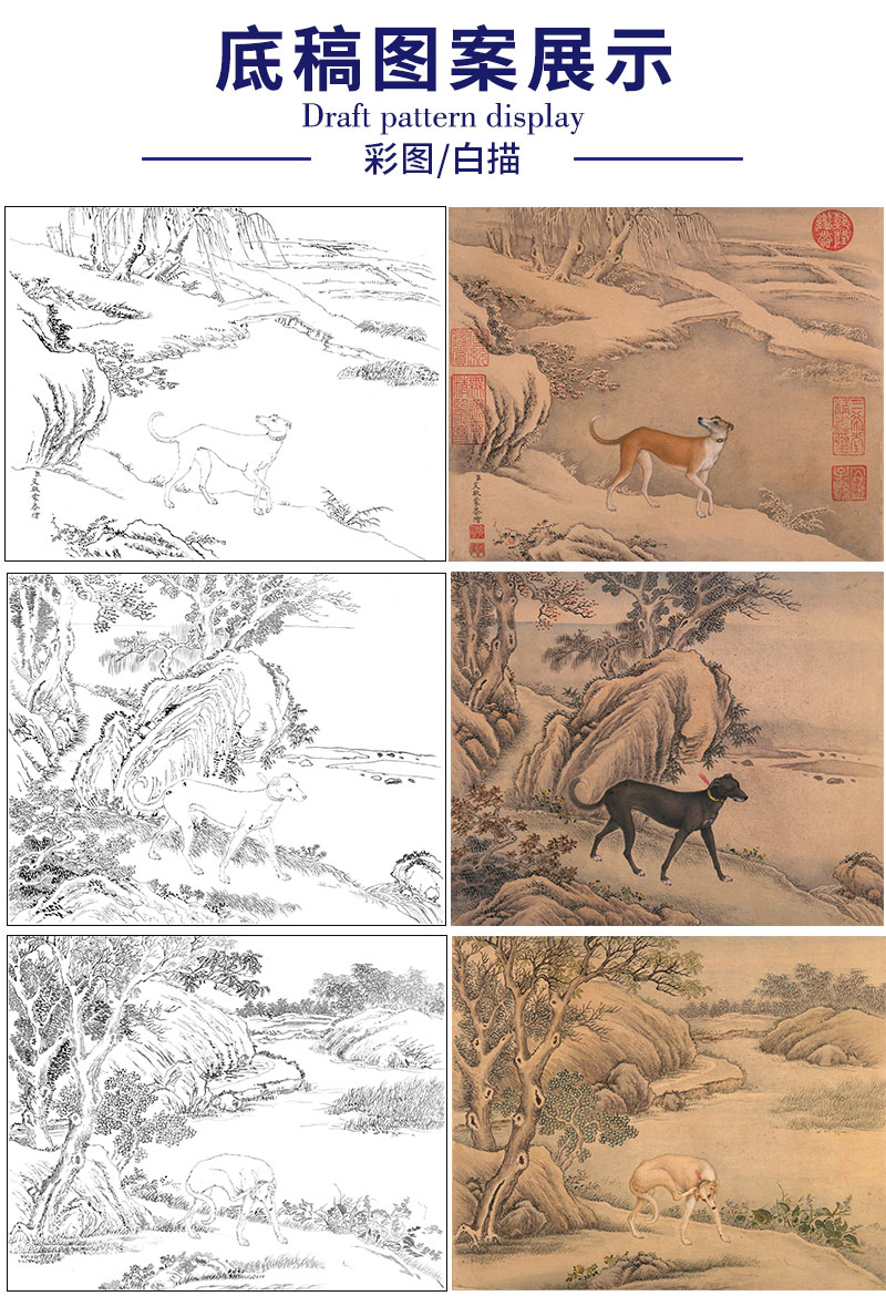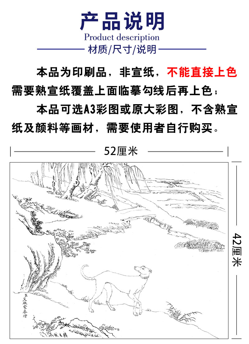 艾启蒙工笔动物画白描底稿金翅猃斑锦彪小品一套十幅册页尺寸42*52厘米GG02