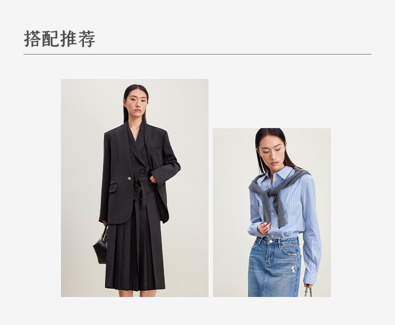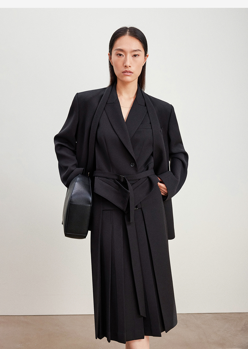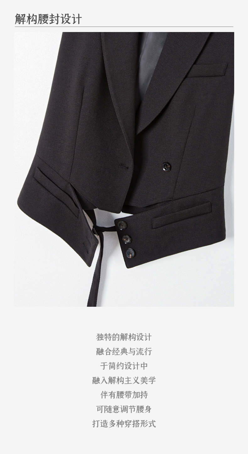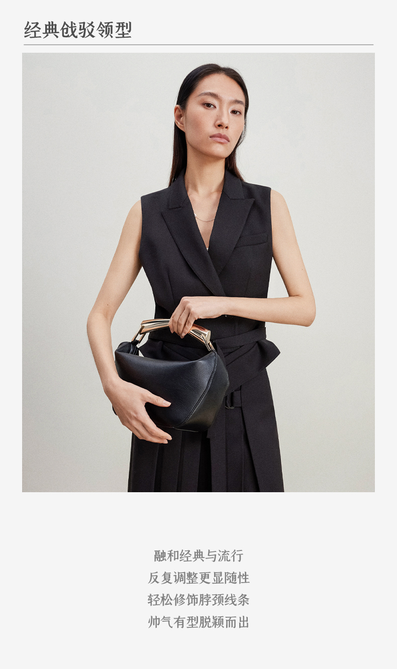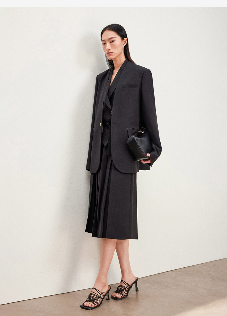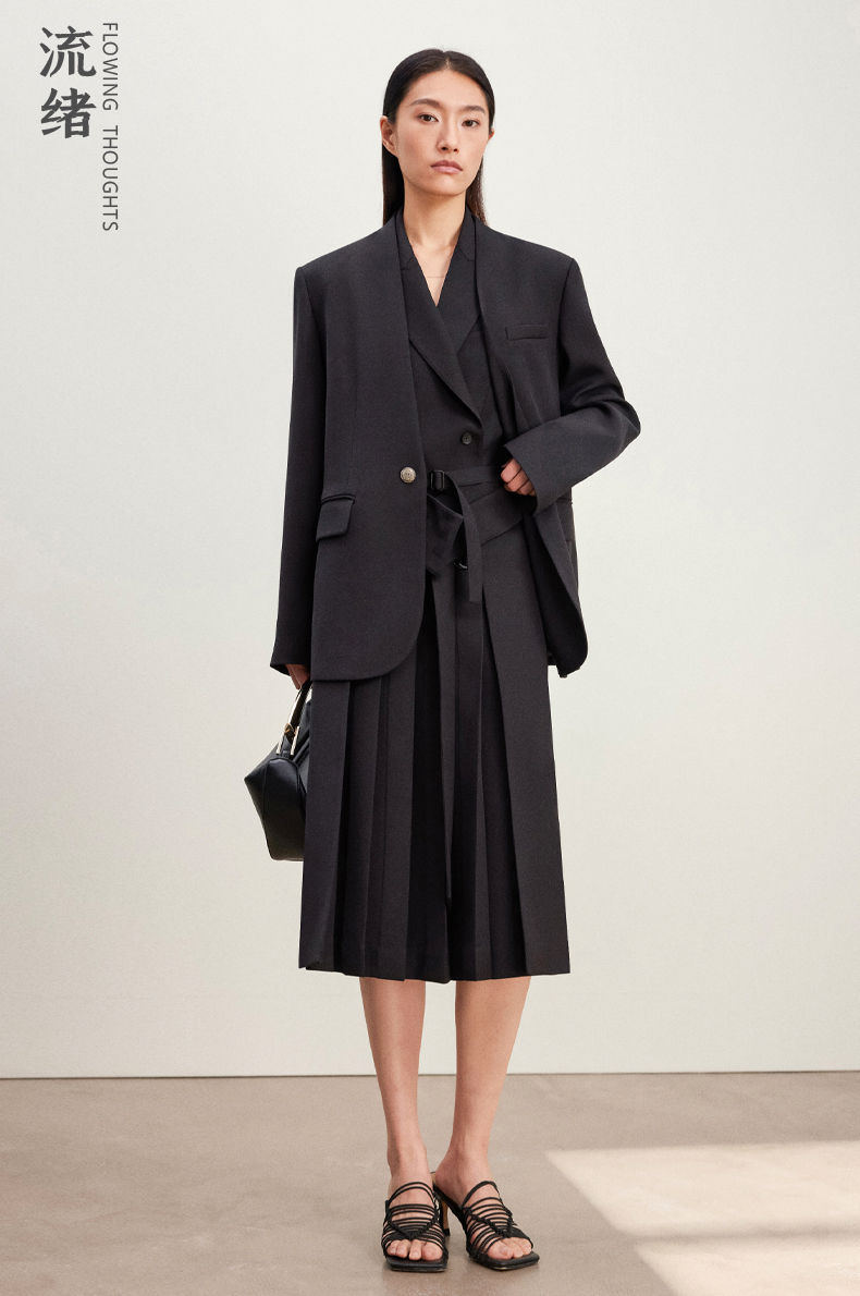 西嘉C+IMPRESS/西嘉羊毛后开衩无领西装外套女无袖马甲压褶半身裙套装WT2401009
