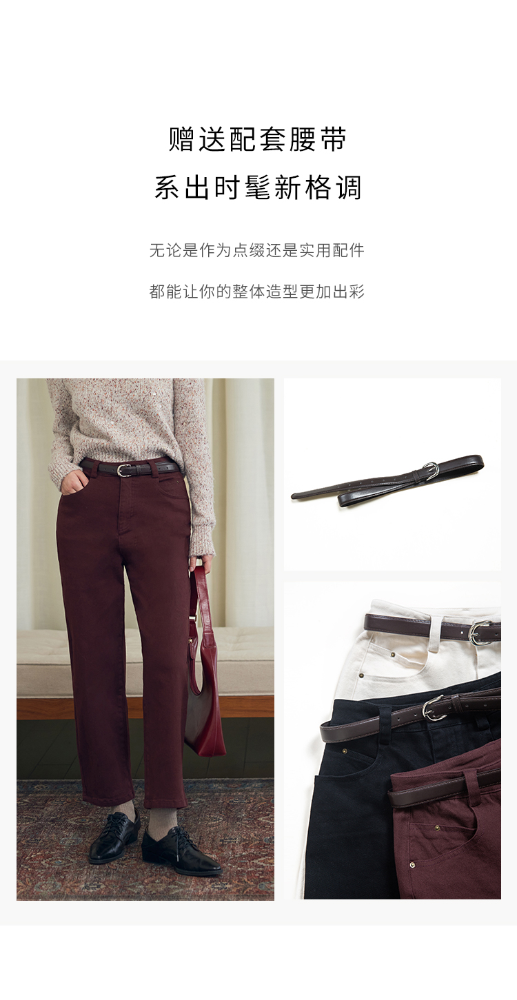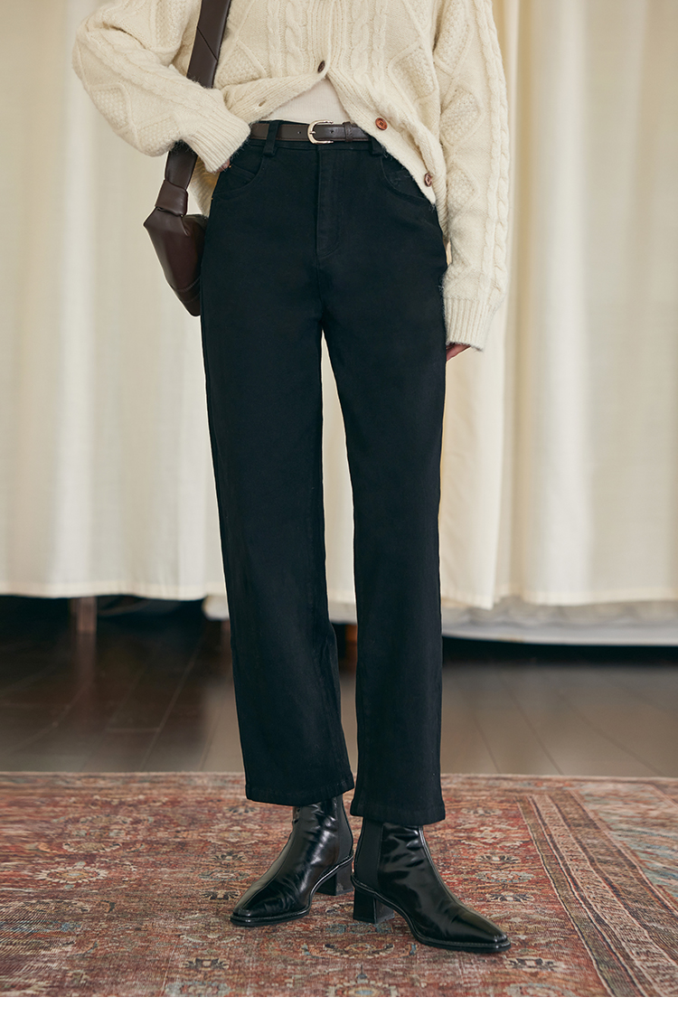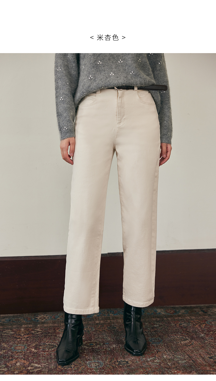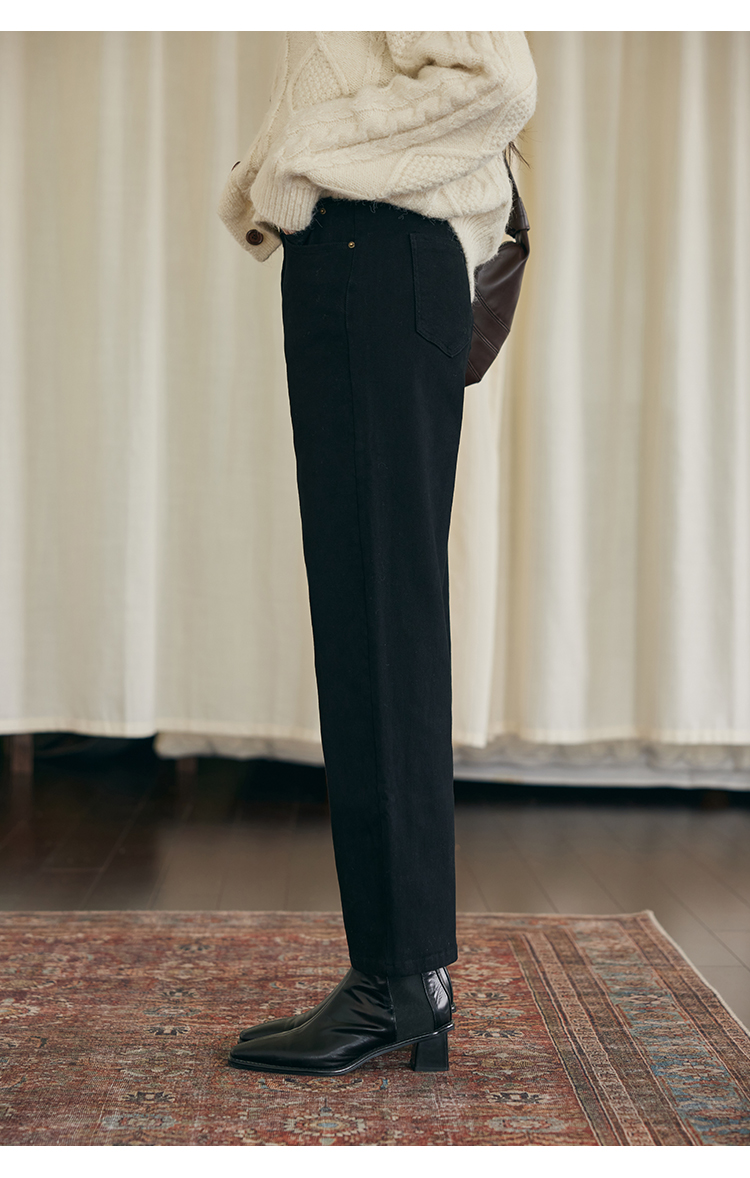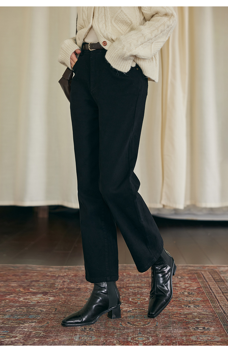 HeyDress法式直筒牛仔裤女秋冬加厚磨毛法棍裤宽松高腰黑色裤子
