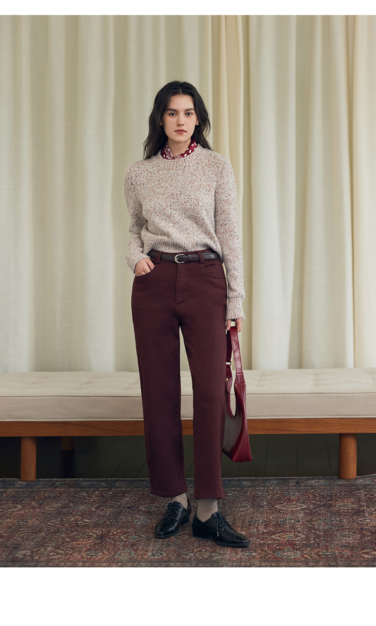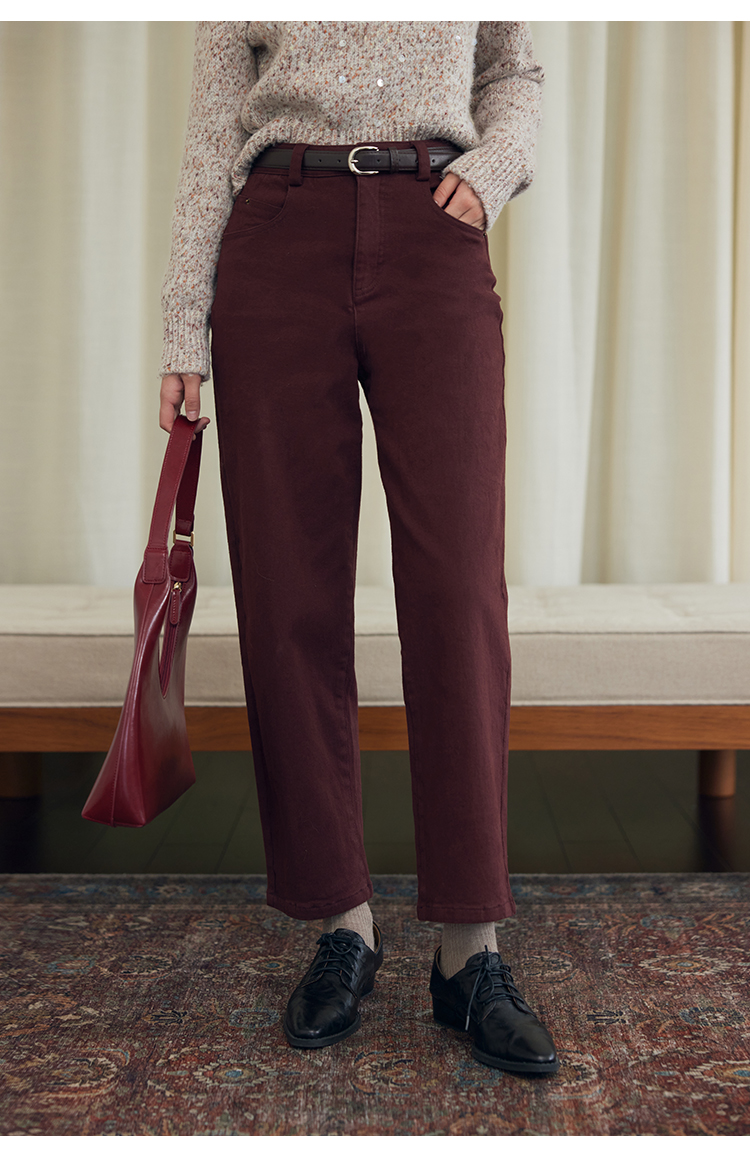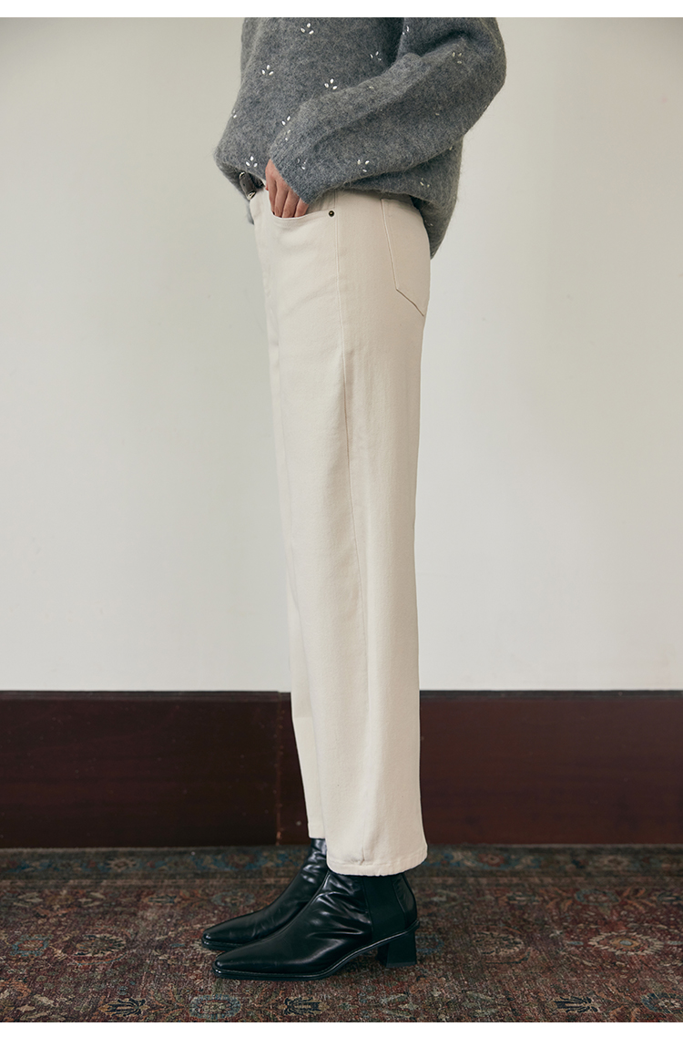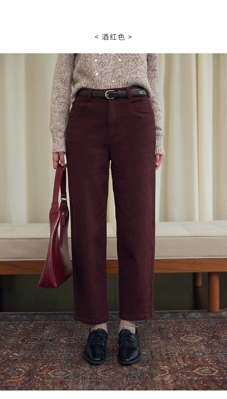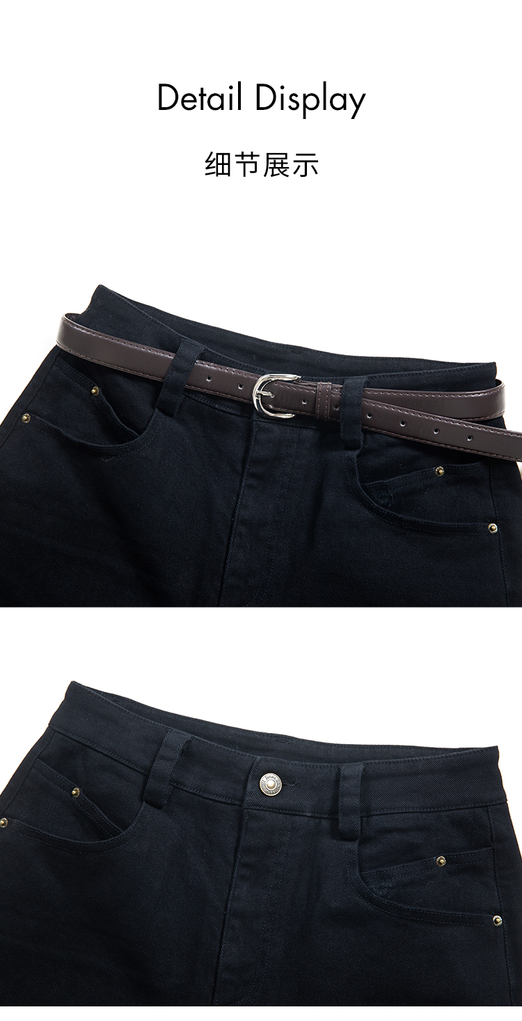 HeyDress法式直筒牛仔裤女秋冬加厚磨毛法棍裤宽松高腰黑色裤子