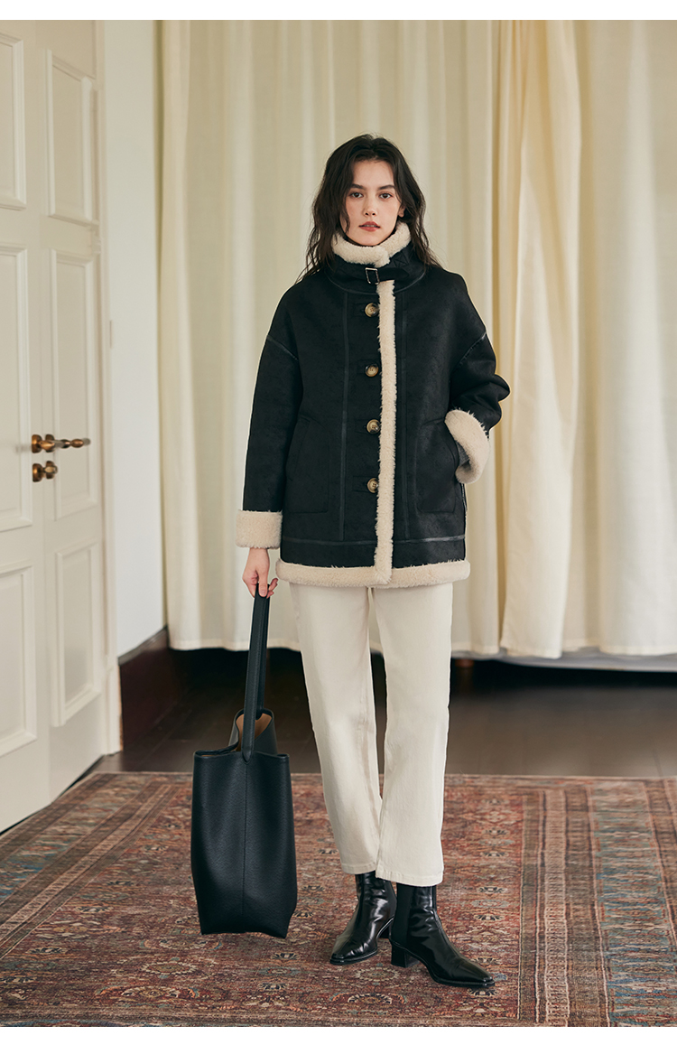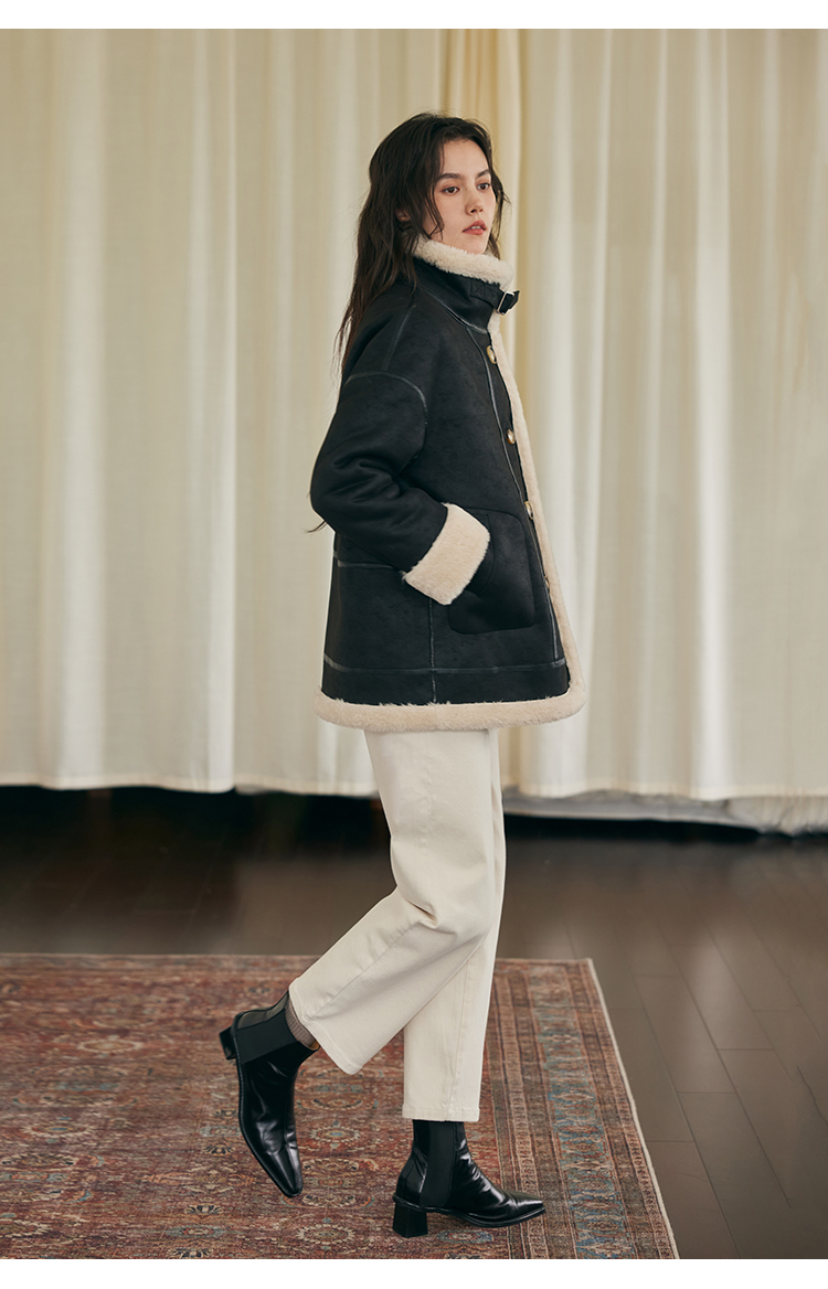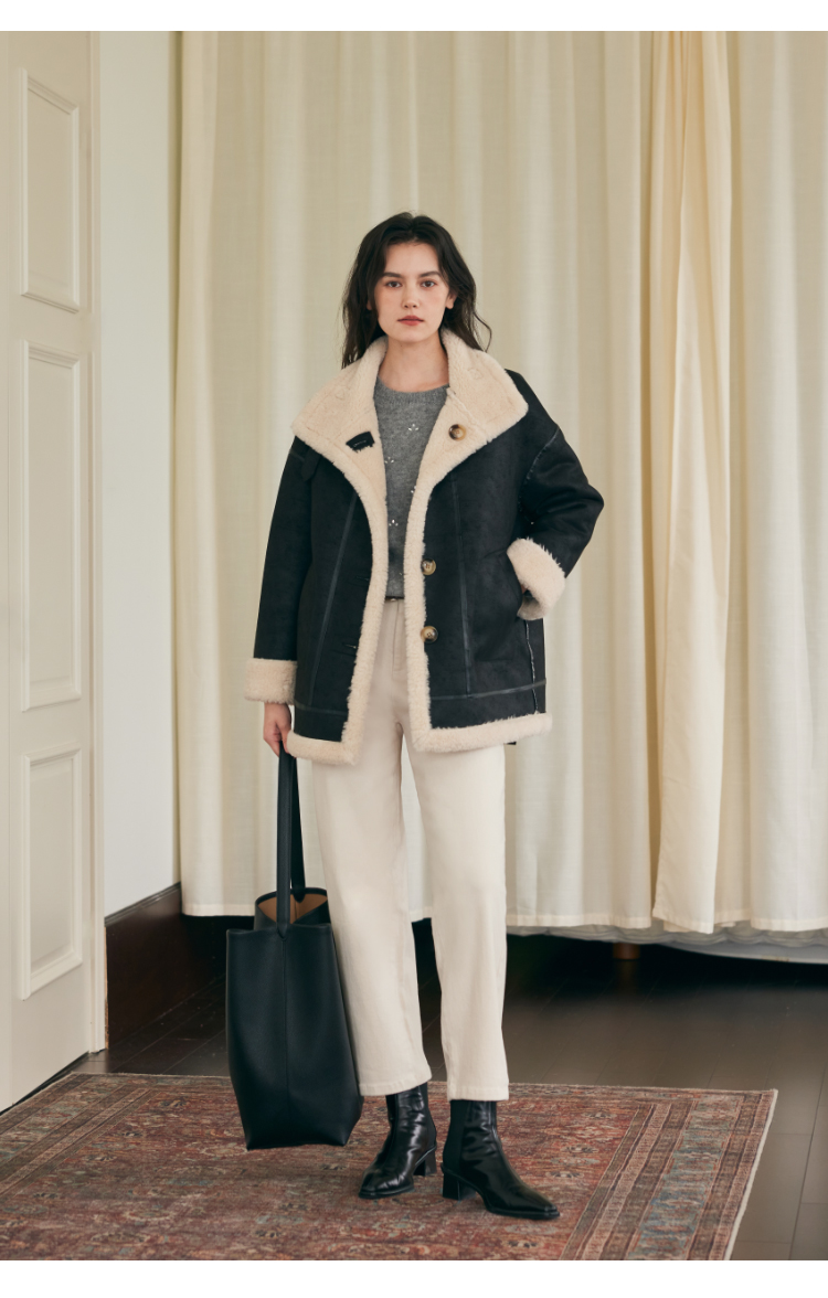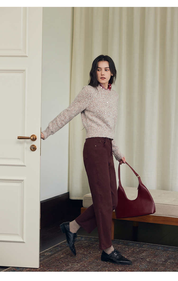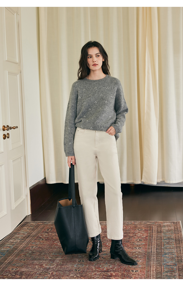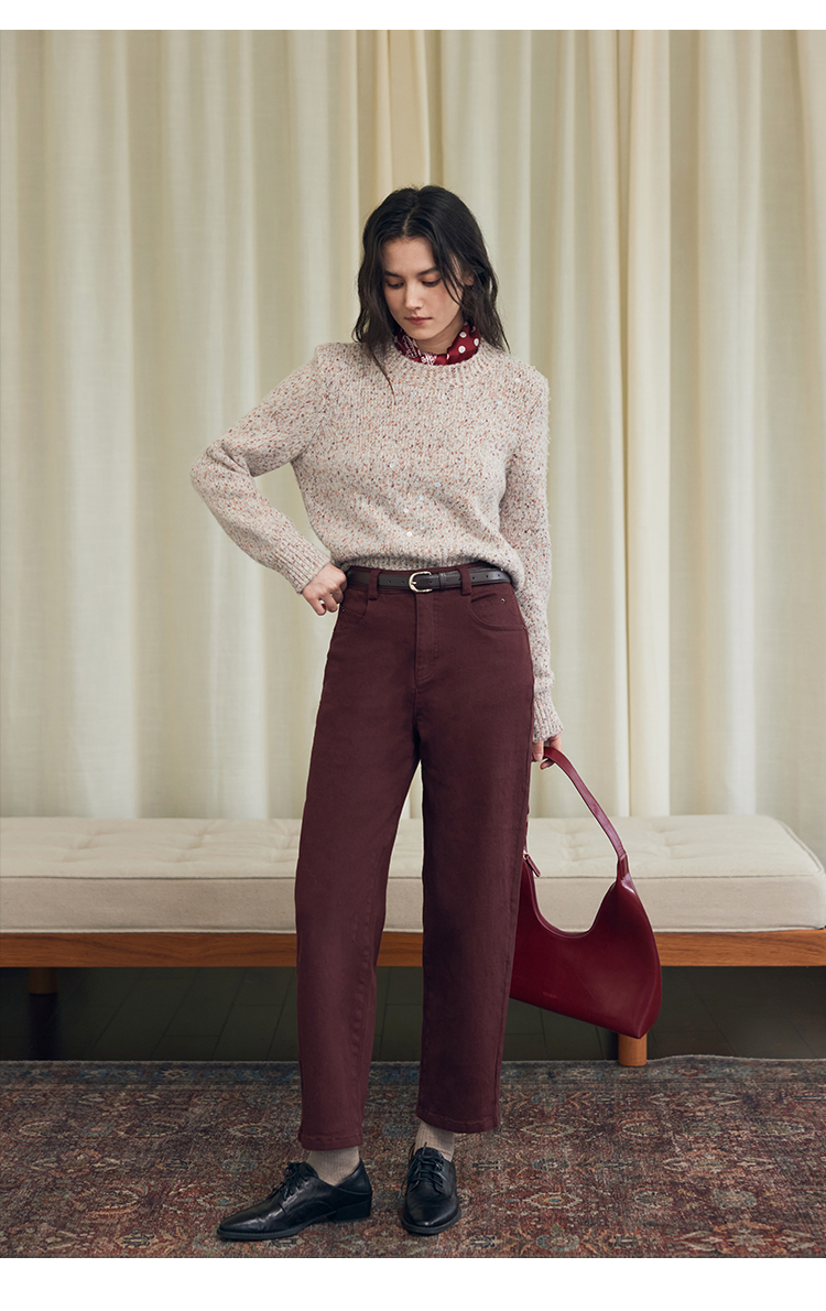 HeyDress法式直筒牛仔裤女秋冬加厚磨毛法棍裤宽松高腰黑色裤子