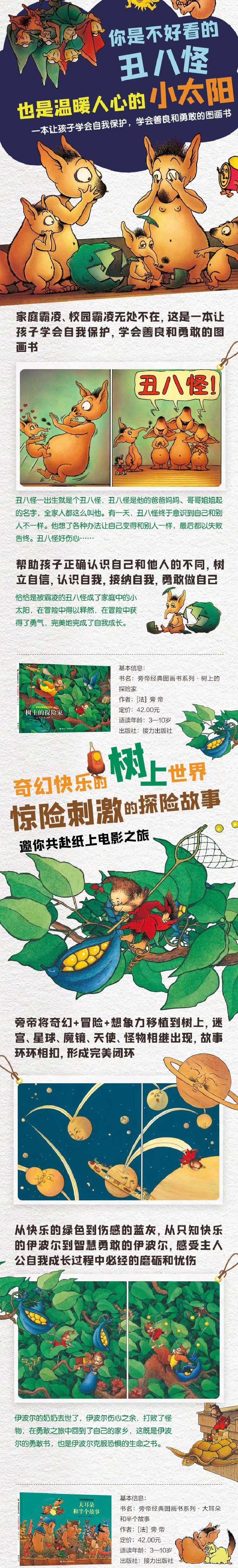 ★在《树上的探险家》中,伊波尔的奶奶去世了,伊波尔伤心之余,打败了怪物,在勇敢之旅中回到了自己的家乡,这既是伊波尔的勇敢书,也是伊波尔克服恐惧的生命之书。奇幻快乐的树上世界,惊险刺激的探险故事,邀你共赴纸上电影之旅