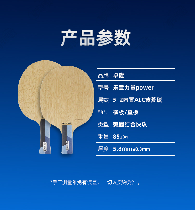 【送三星球】卓隆&郗恩庭乐章力量power乒乓球拍底板内置ALC弧圈快攻型乒乓底板