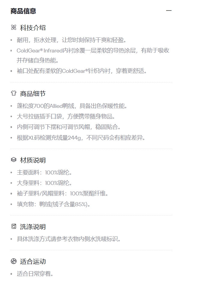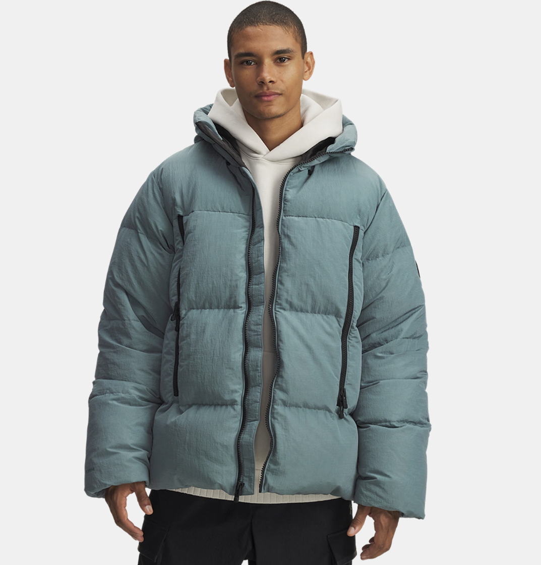 安德玛男子UA Limitless热冬系列700蓬短款鸭绒羽绒夹克1384641-587