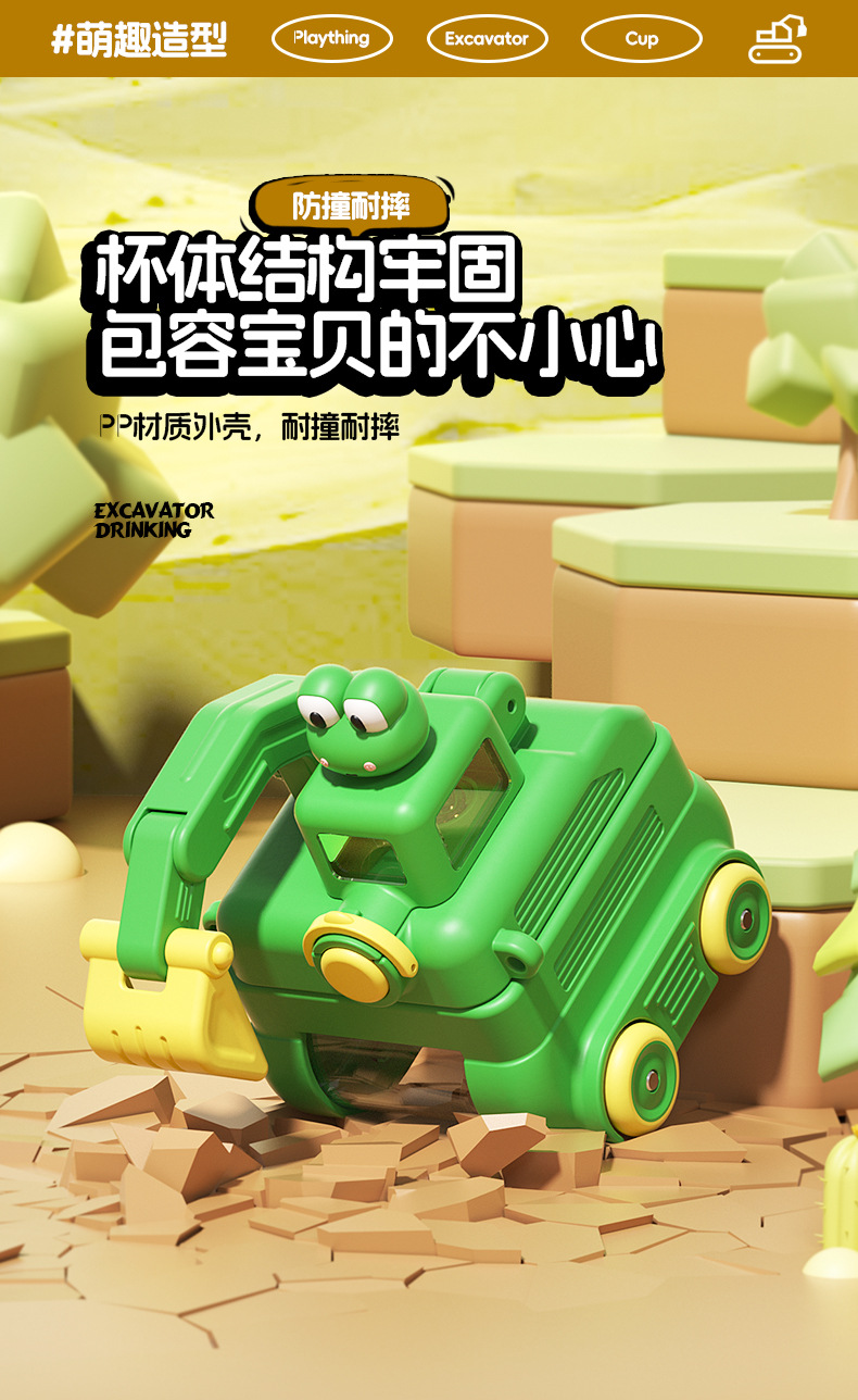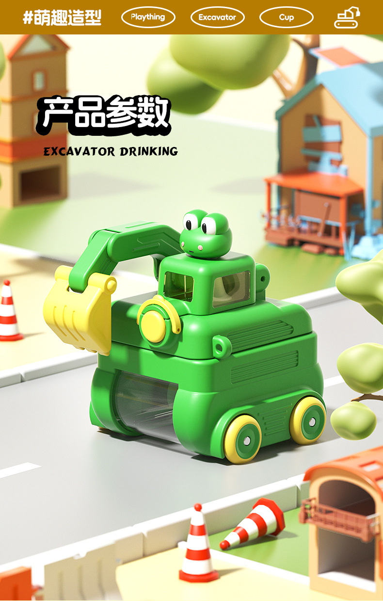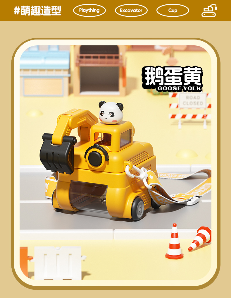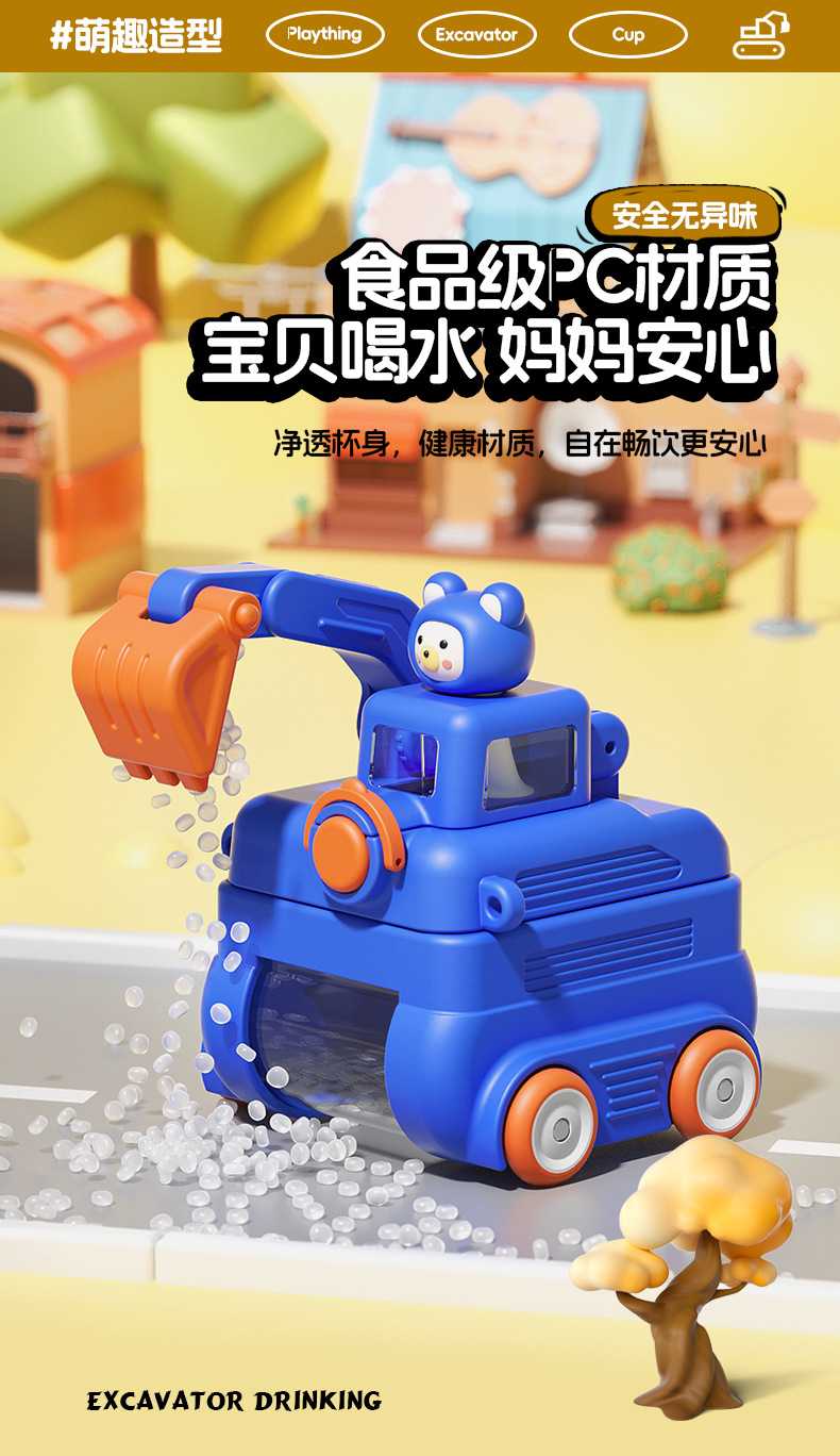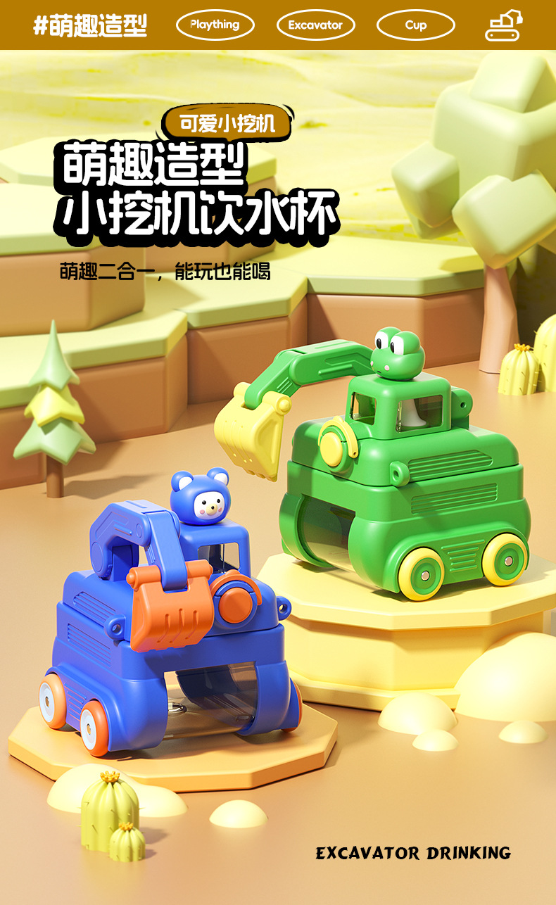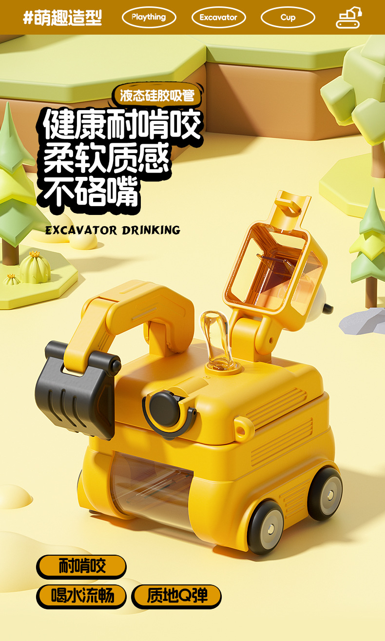 【即是水杯!也是玩具】宝贝边喝边玩,食品级小挖机儿童水杯可爱玩具杯子耐高温塑料杯户外便携吸管杯宝宝水壶。ra