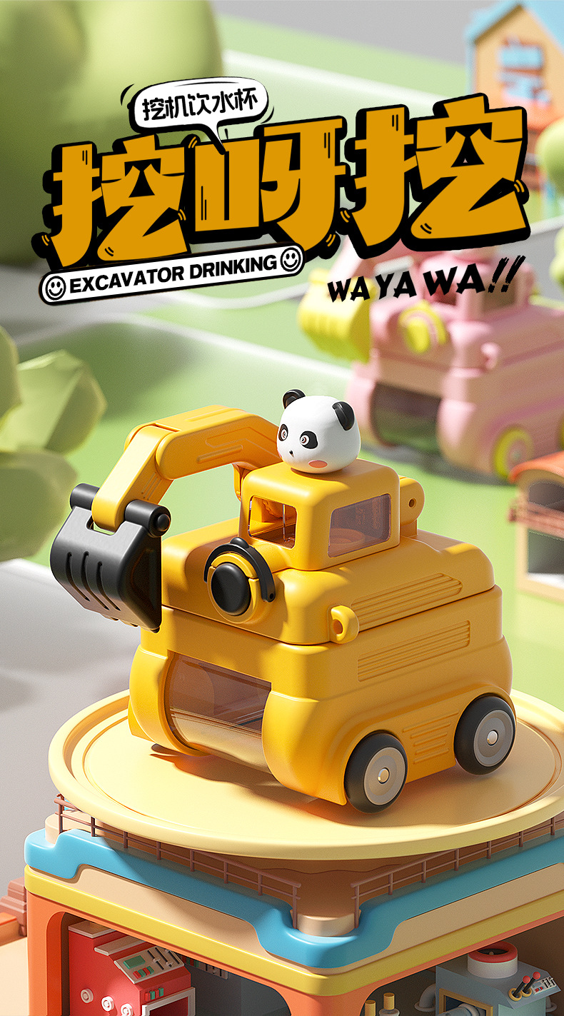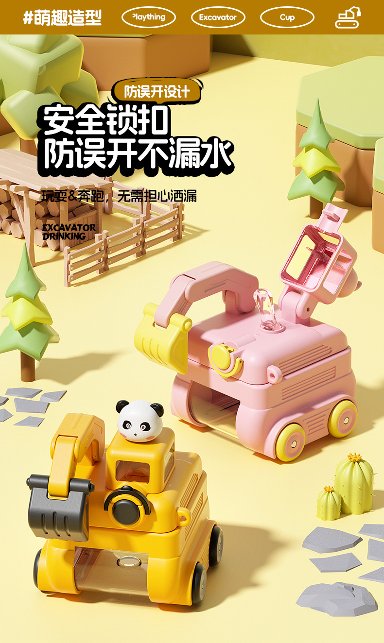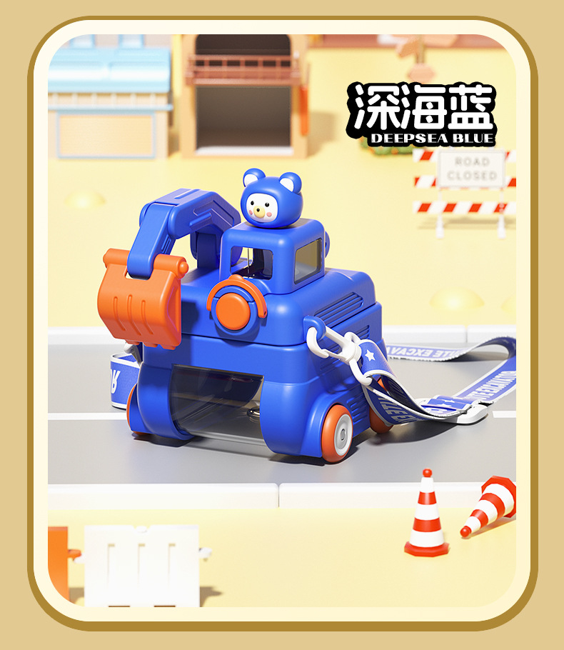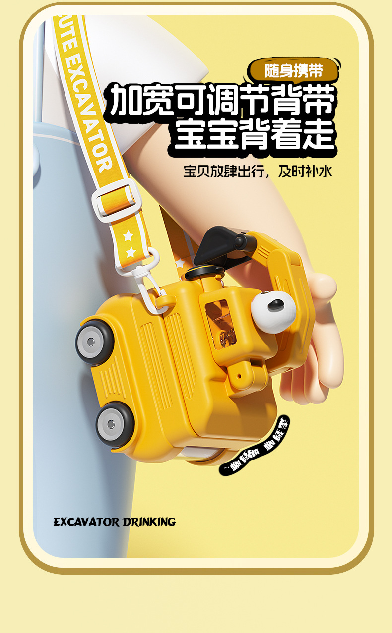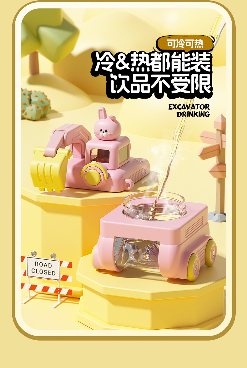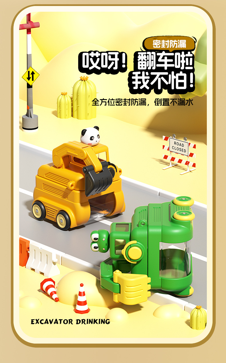 【即是水杯!也是玩具】宝贝边喝边玩,食品级小挖机儿童水杯可爱玩具杯子耐高温塑料杯户外便携吸管杯宝宝水壶。ra