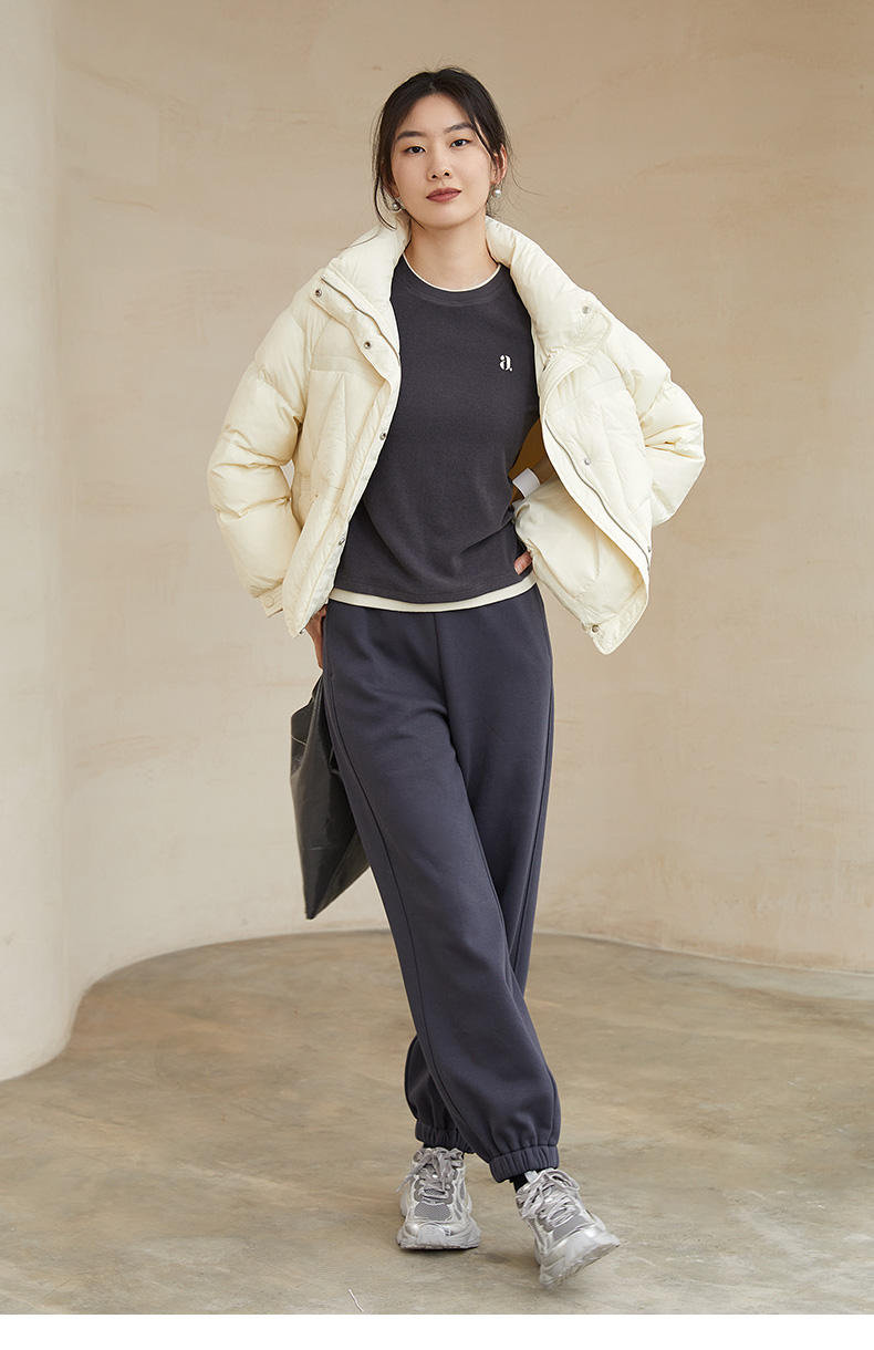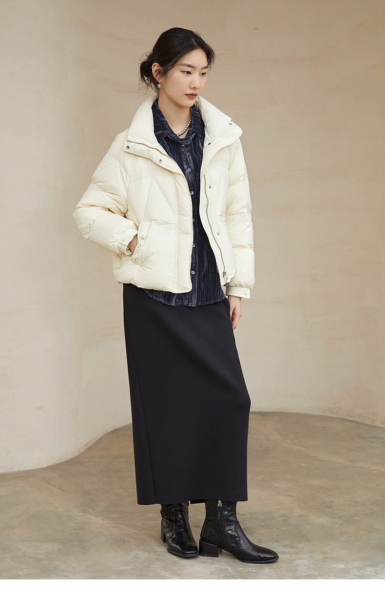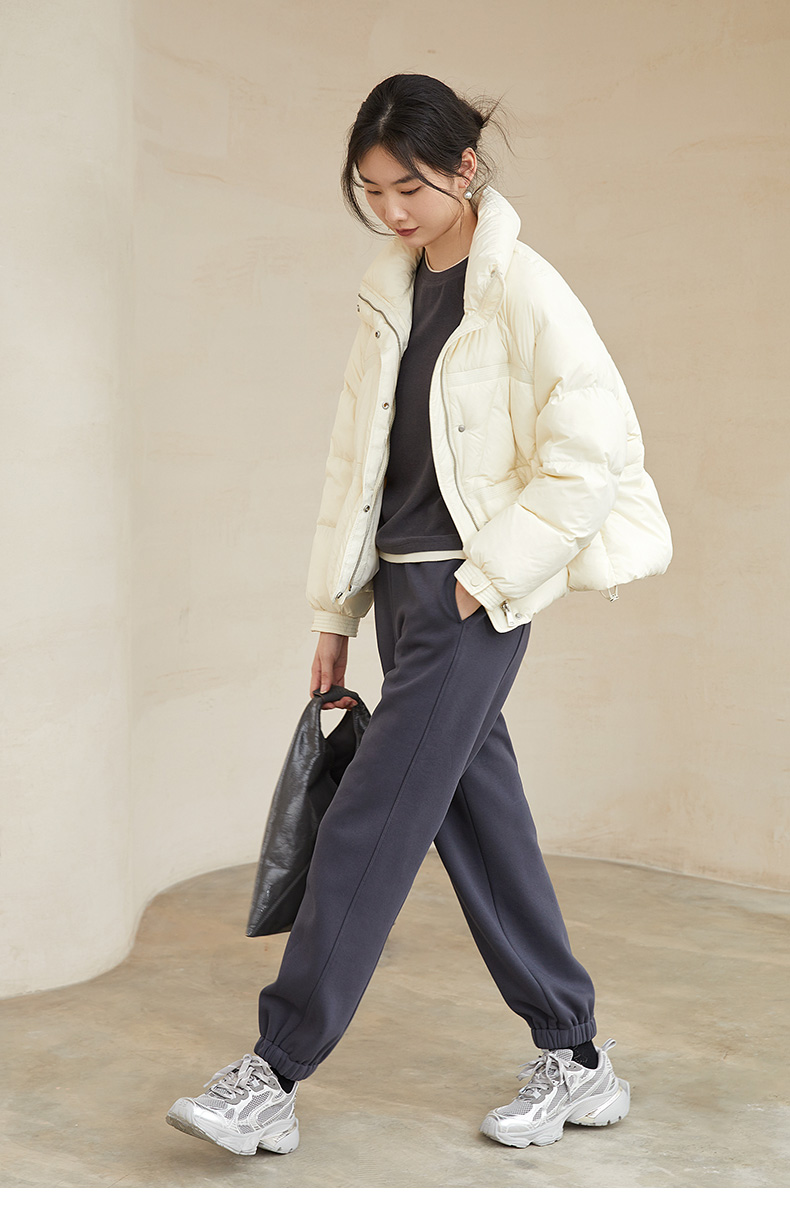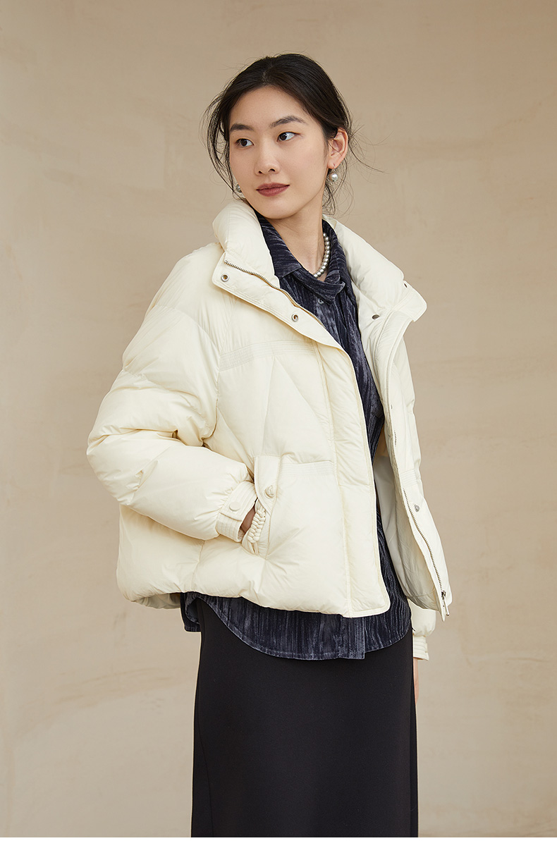 深咖色立领短款羽绒服女 冬季加厚保暖 设计感绗缝宽松面包服外套