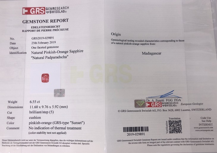6.55克拉GRS证书帕帕拉恰钻石戒指