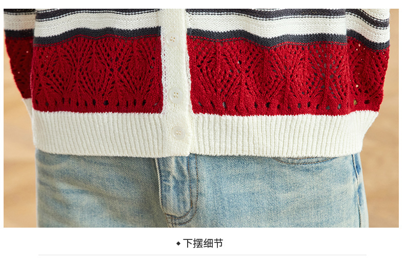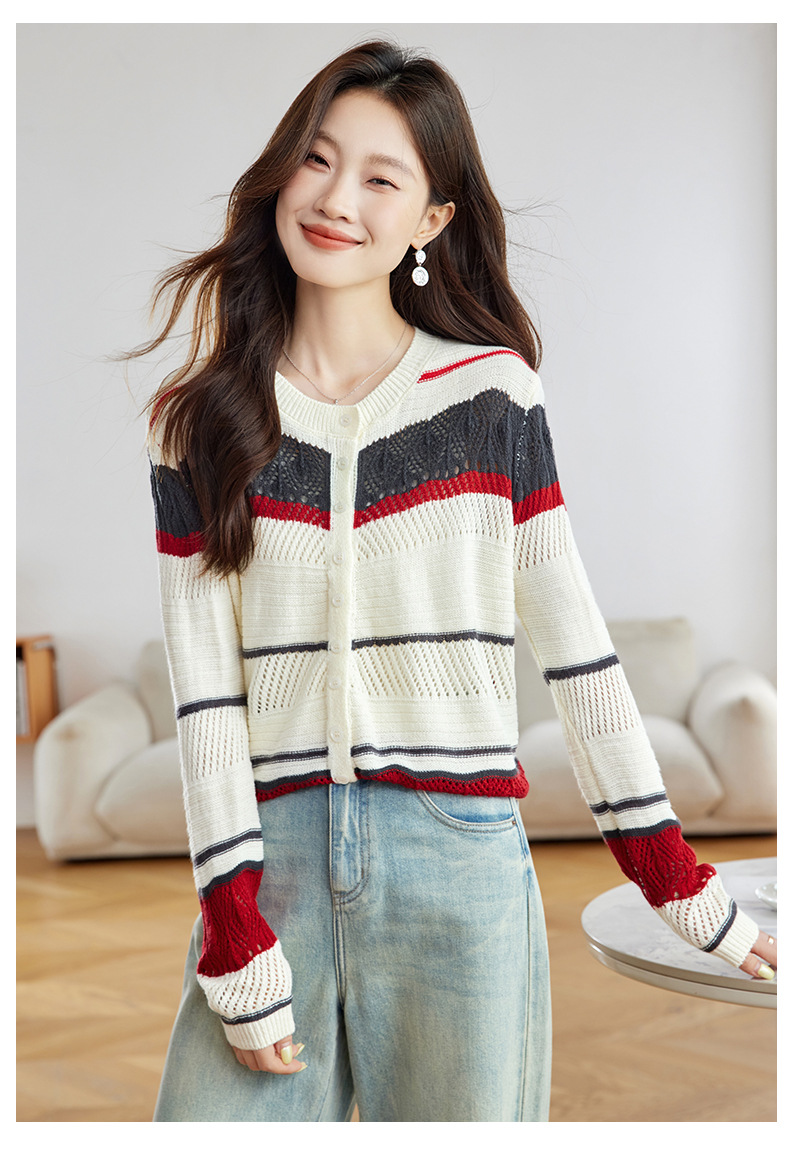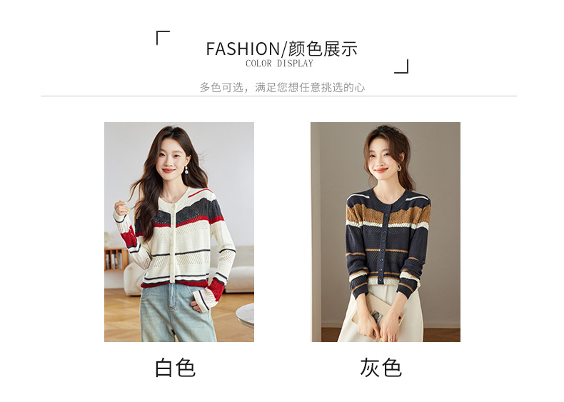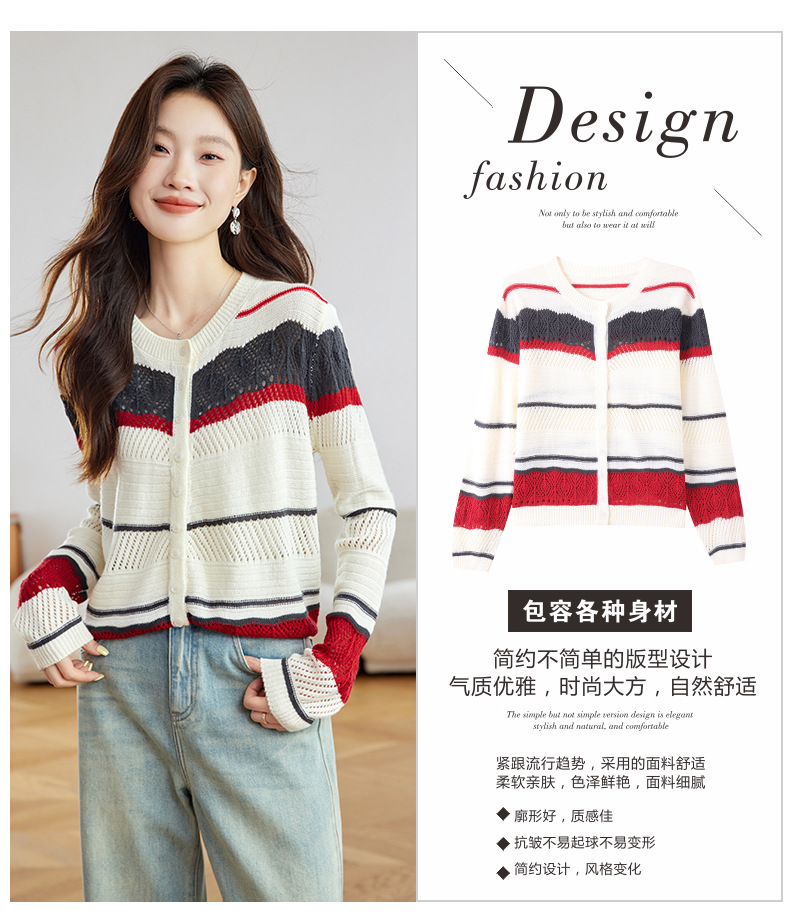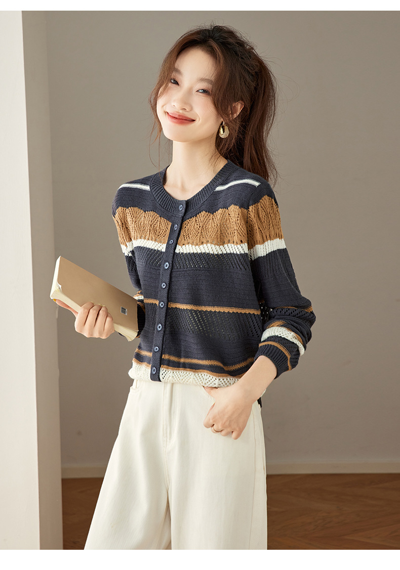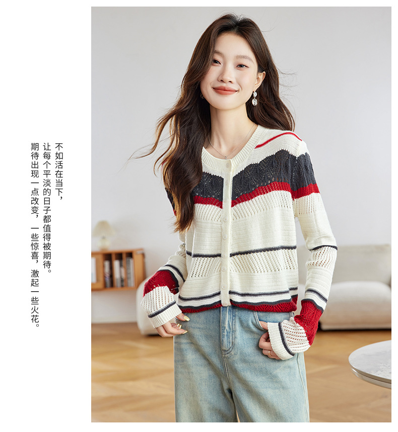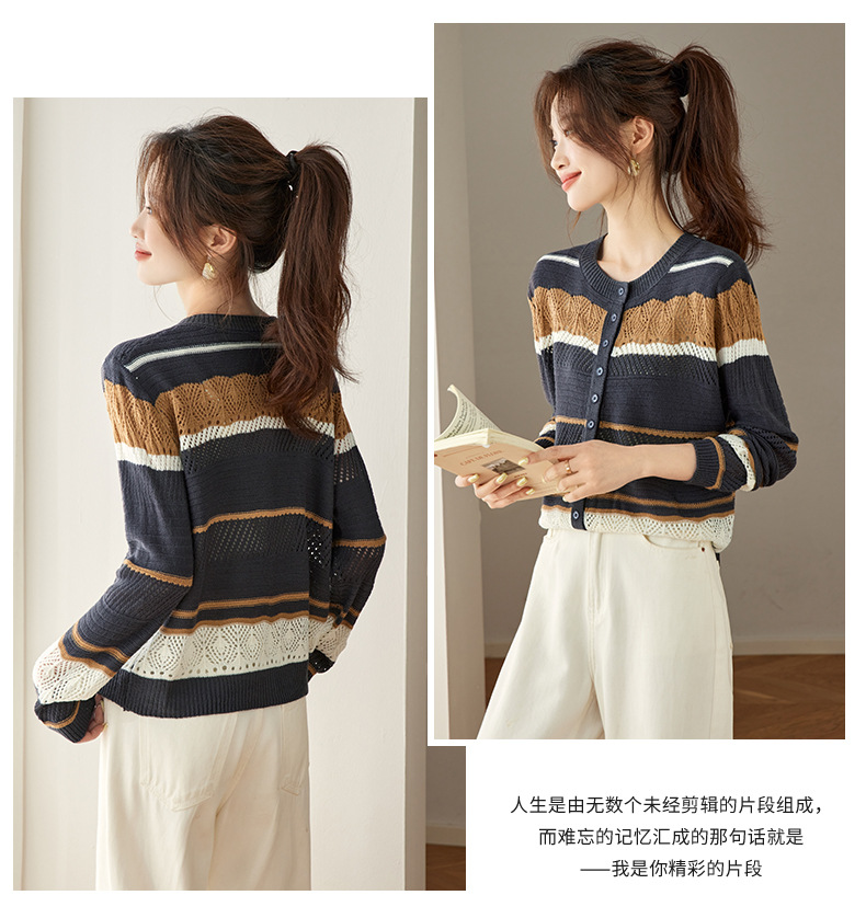 CC27-25113款针织衫条纹镂空减龄拼接开衫外搭高级感配裙子早秋新
