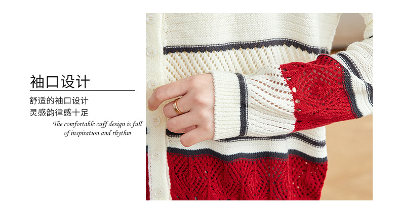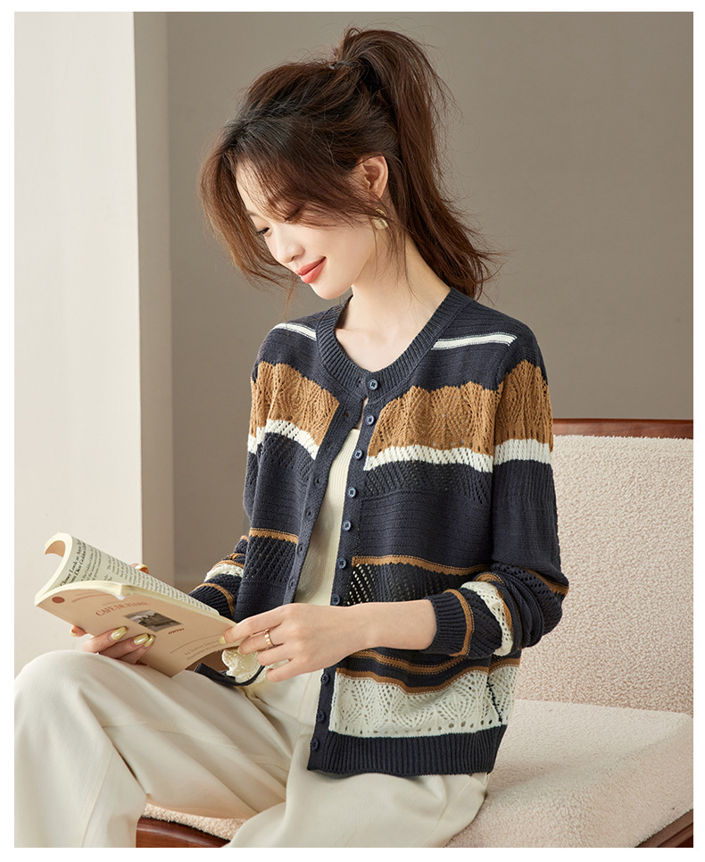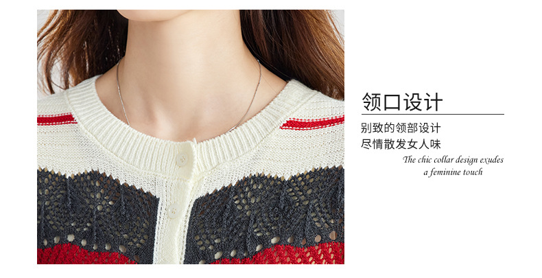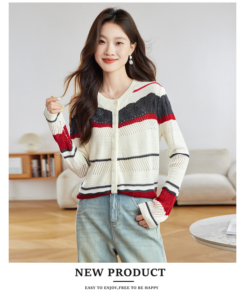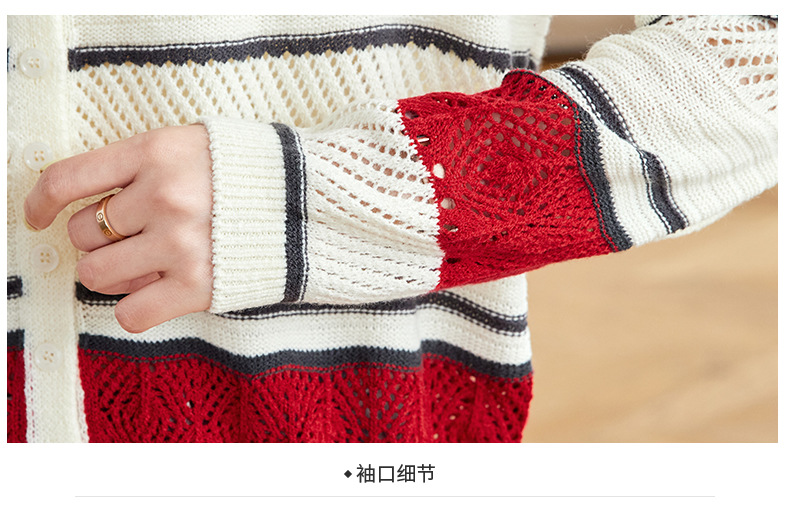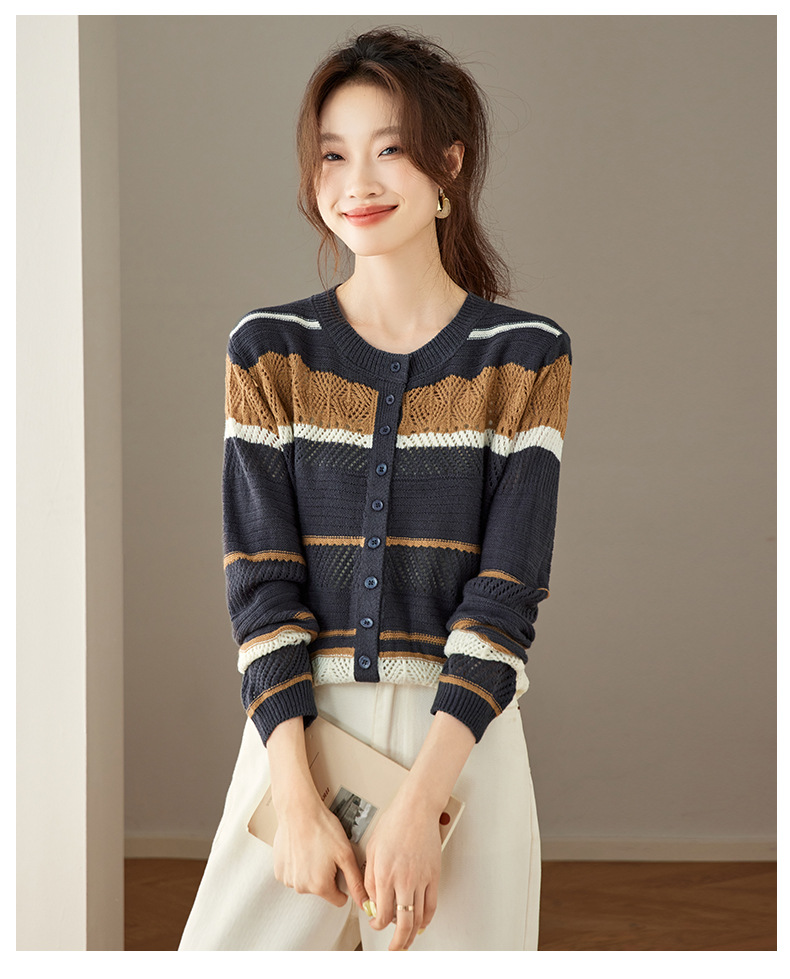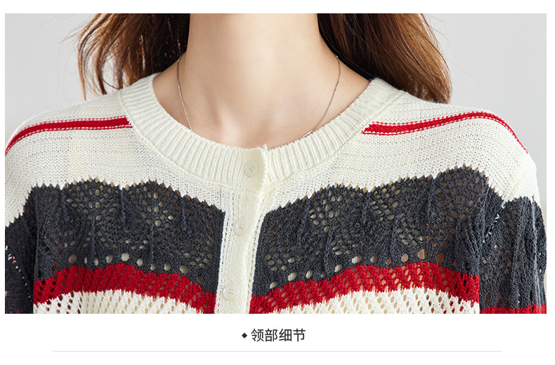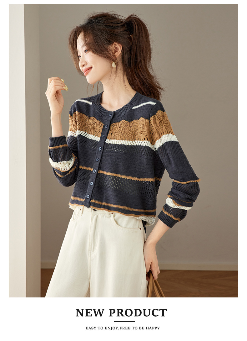 CC27-25113款针织衫条纹镂空减龄拼接开衫外搭高级感配裙子早秋新