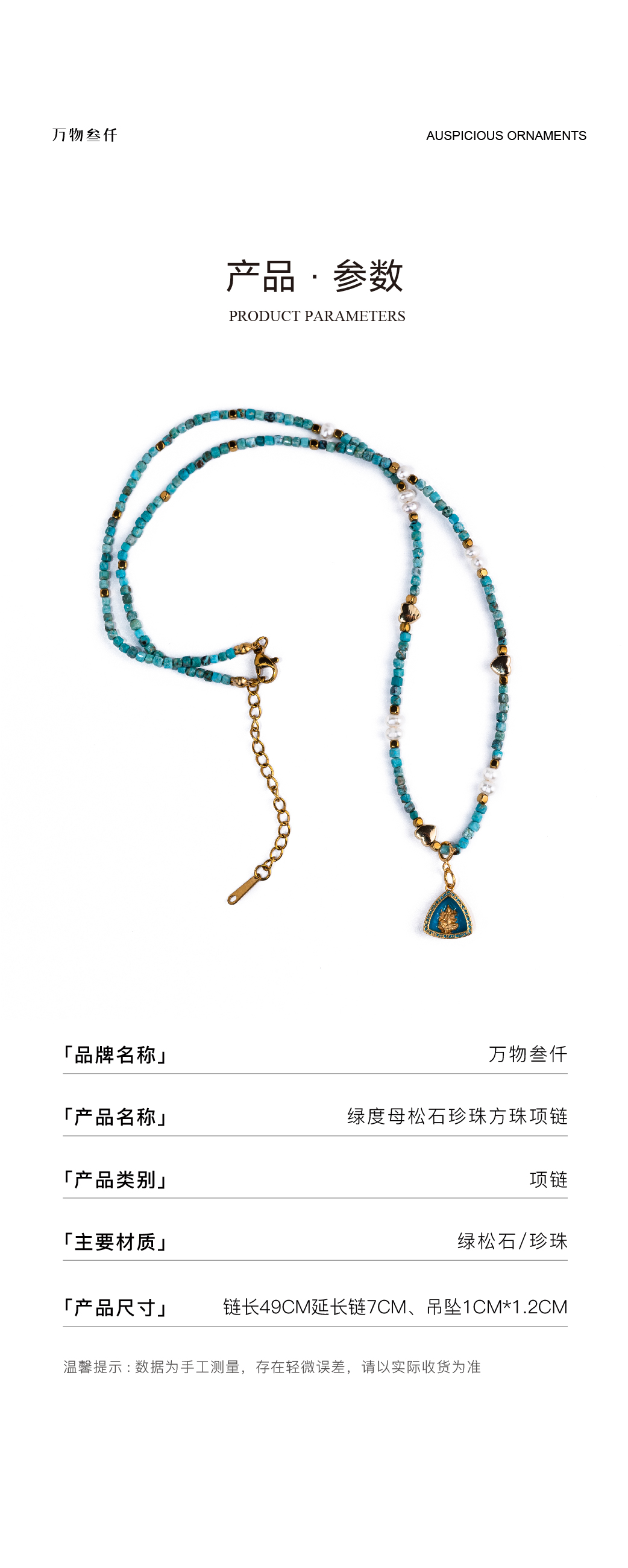 绿度母松石珍珠方珠项链 | 万物叁仟