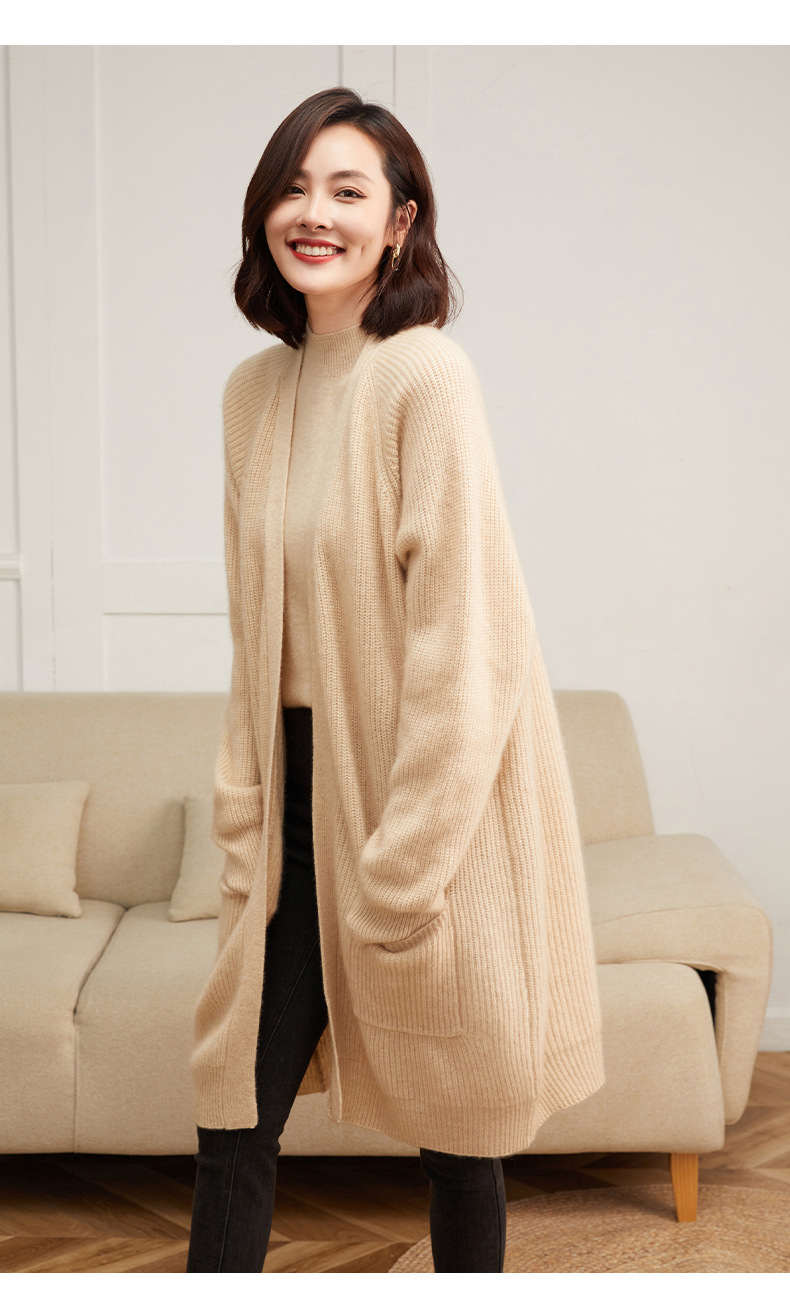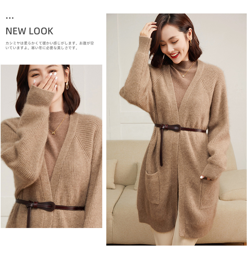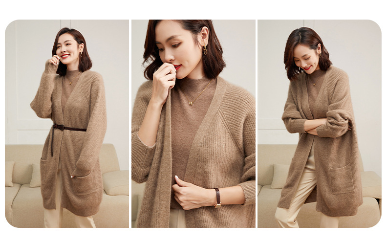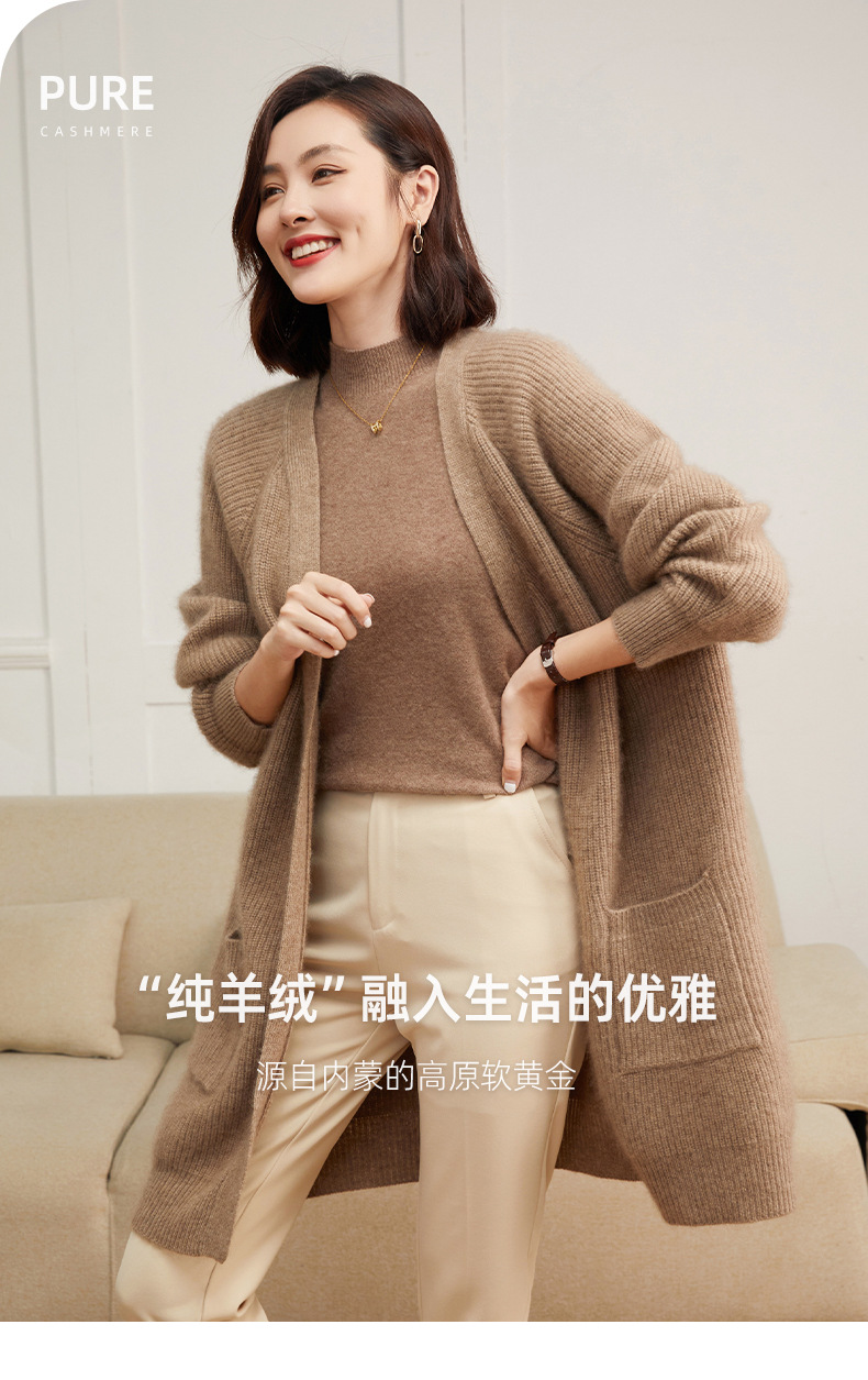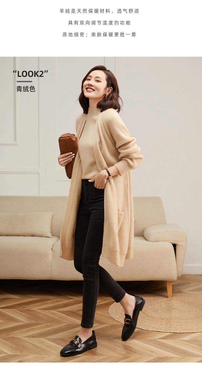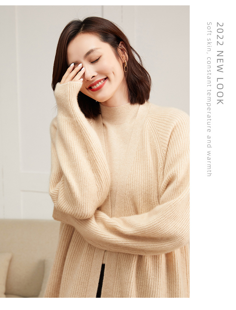 「高货qj」全新升级【铂金会员661/天猫899/差价238】(00242)洛诗琳无扣元宝针羊绒混纺外套2025秋冬中长款针织开衫