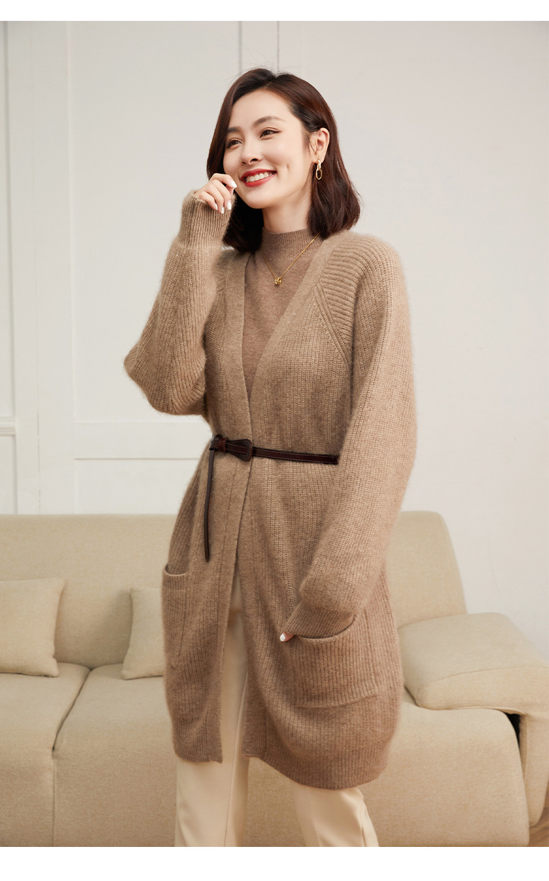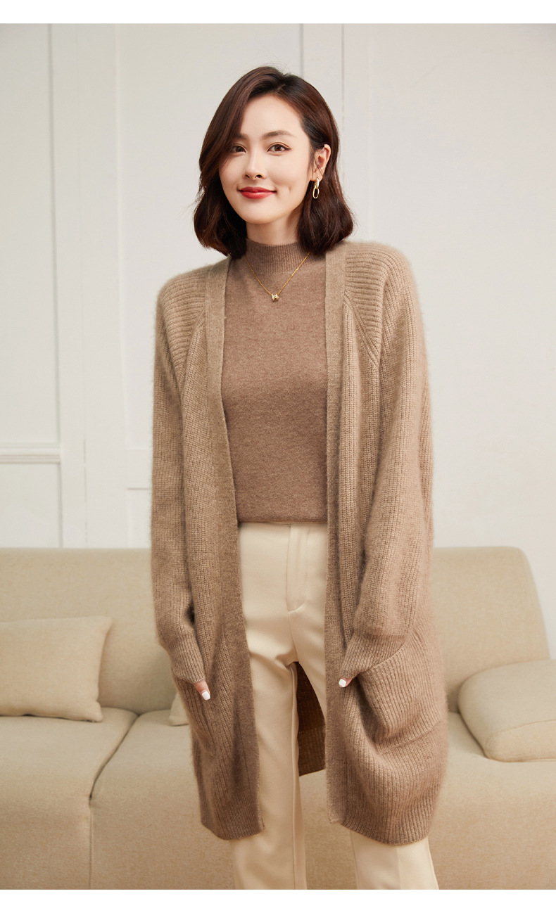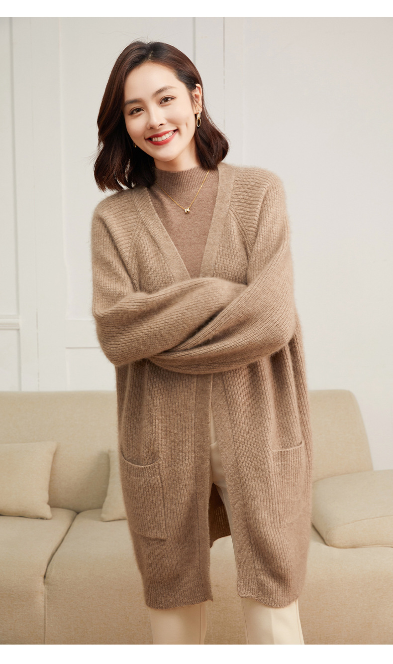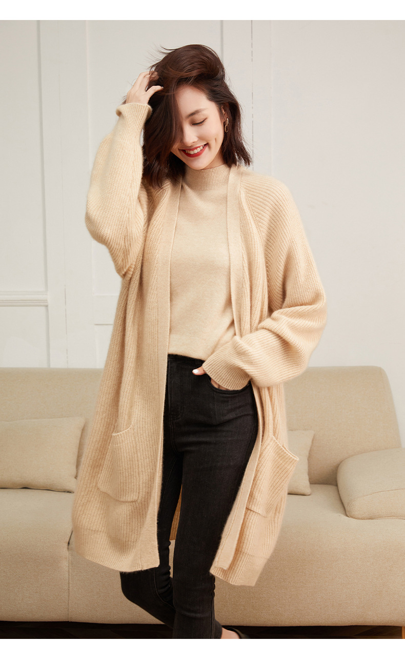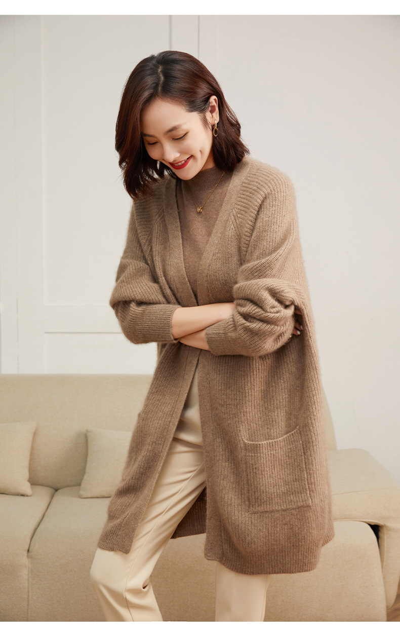 「高货qj」全新升级【铂金会员661/天猫899/差价238】(00242)洛诗琳无扣元宝针羊绒混纺外套2025秋冬中长款针织开衫