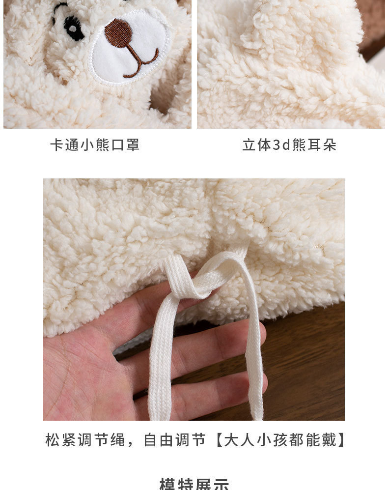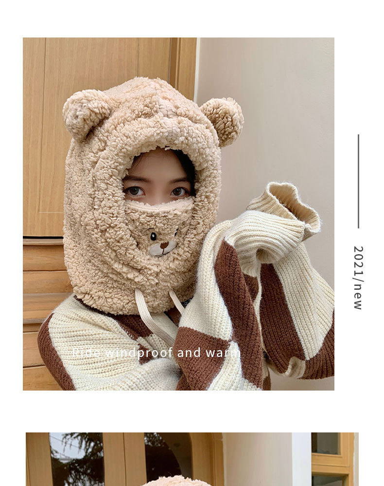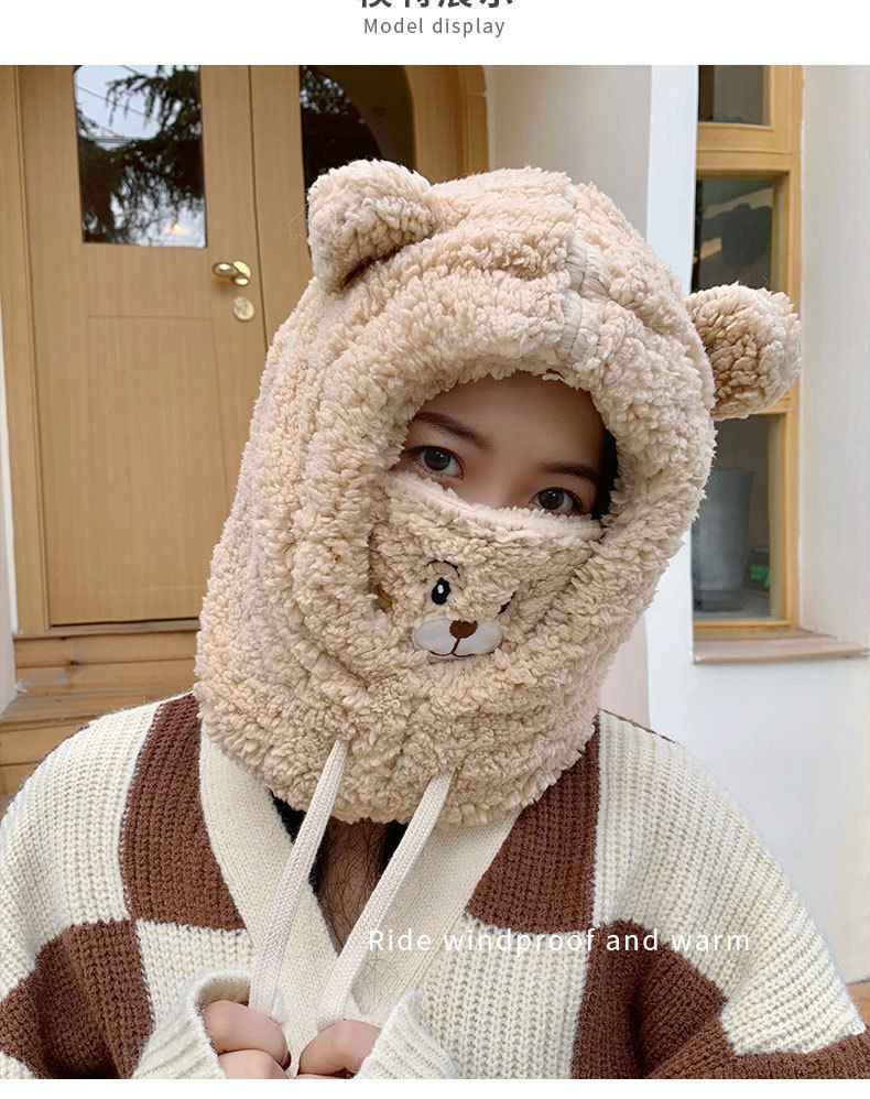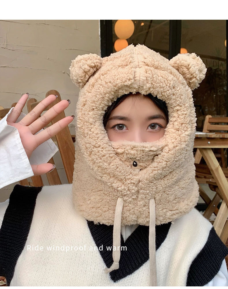 头围54~58CM【毛绒双层加厚❗️柔软保暖又可爱】冬季小熊围巾帽子保暖一体帽学生羊羔毛韩版女帽口罩毛绒帽。ha