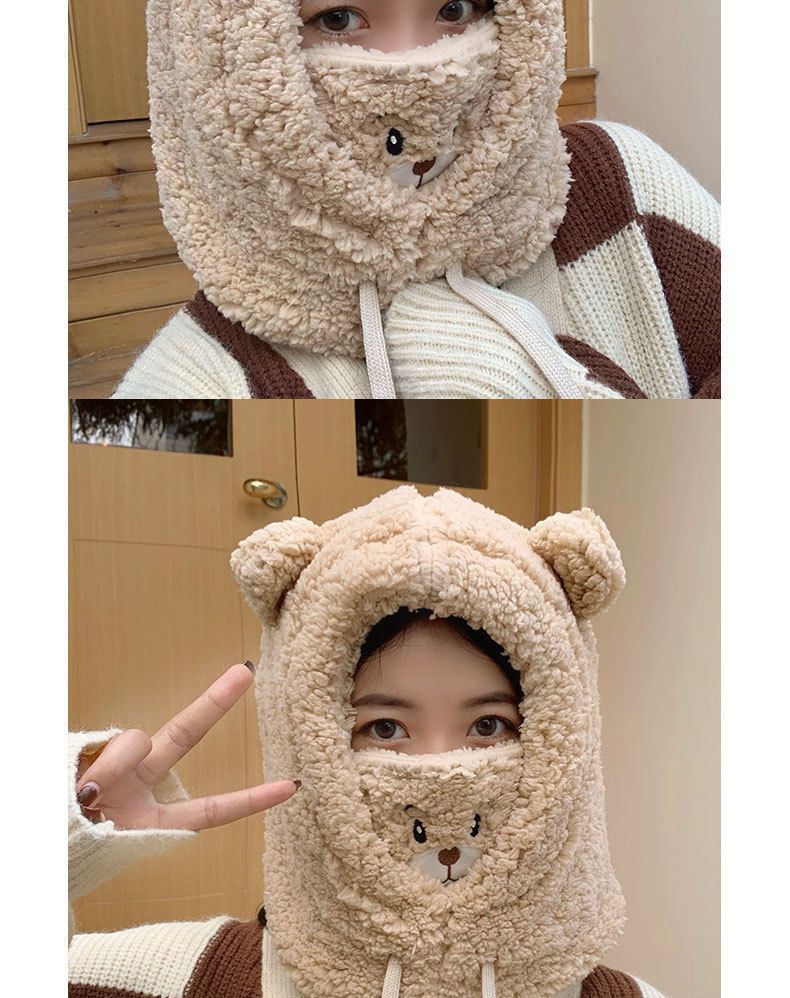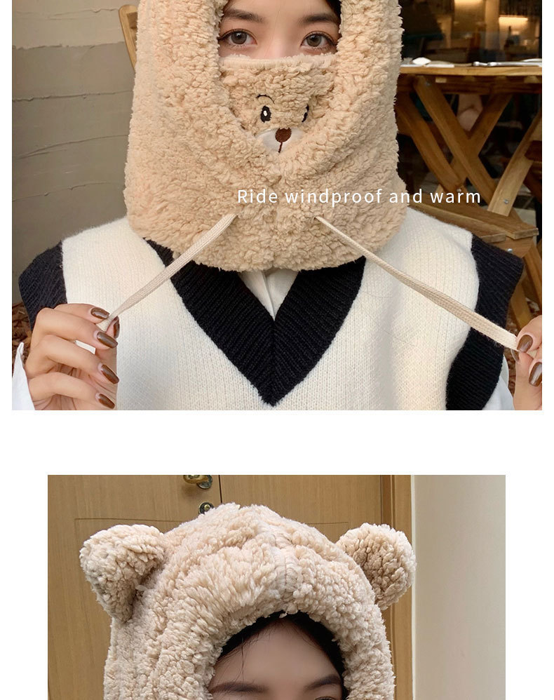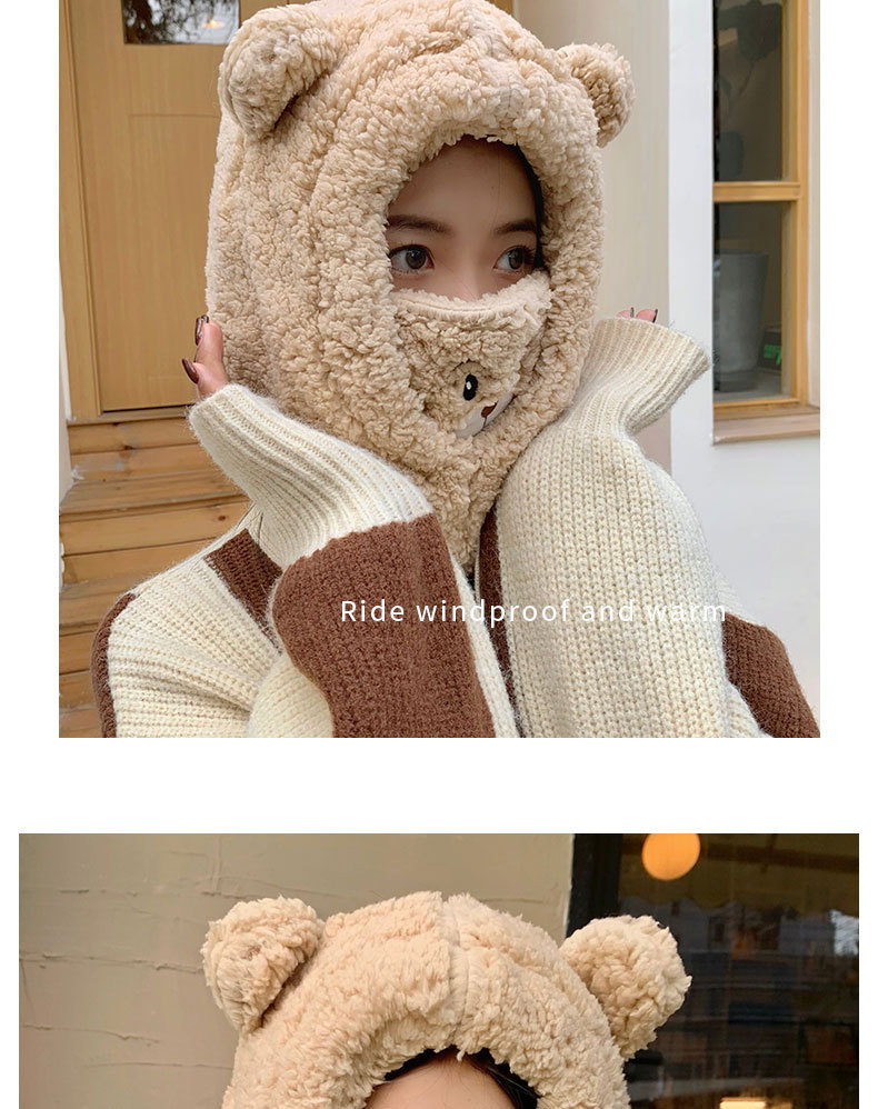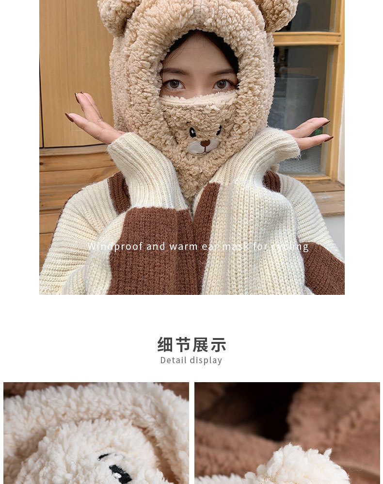 头围54~58CM【毛绒双层加厚❗️柔软保暖又可爱】冬季小熊围巾帽子保暖一体帽学生羊羔毛韩版女帽口罩毛绒帽。ha