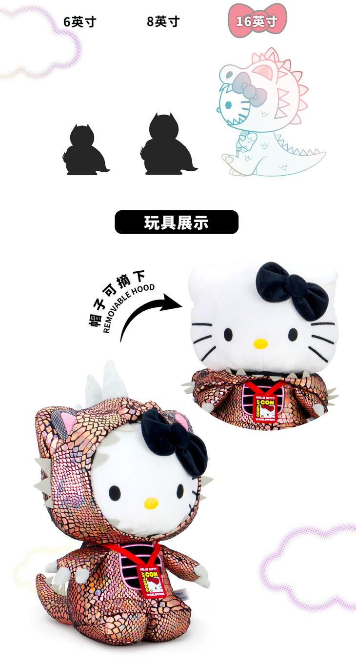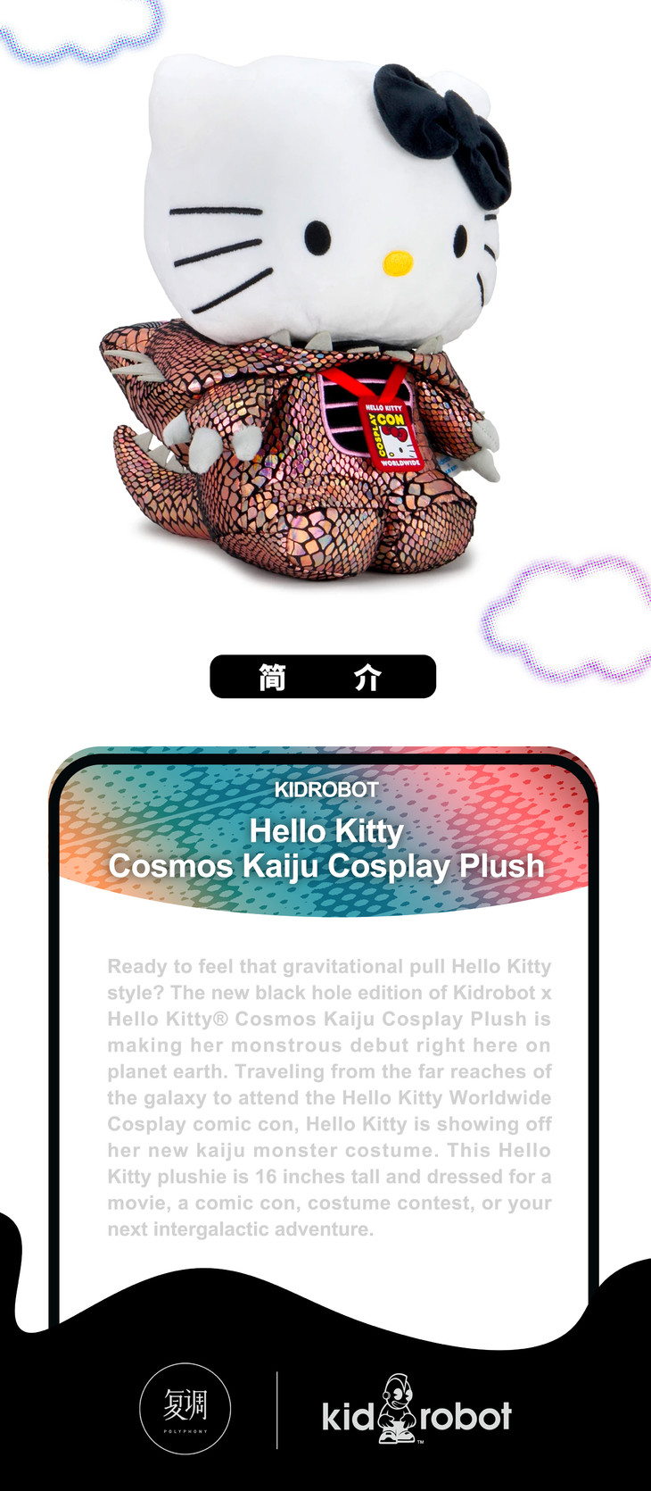 Kidrobot 三丽鸥 凯蒂猫 Cosplay 怪兽版 毛绒 抱枕 Sanrio Hello Kitty Cosplay Kaiju Plush BLACK HOLE CHROME