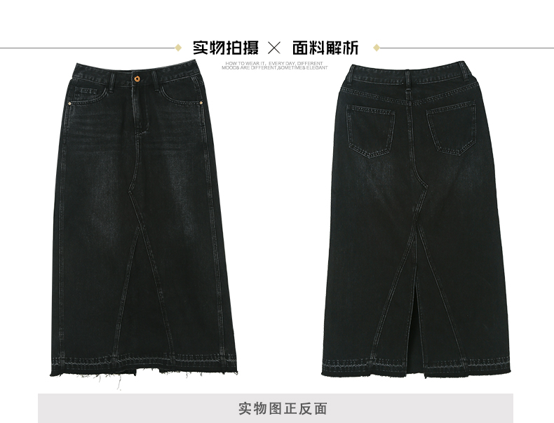 黑色牛仔半身裙女 2025 新款高腰中长款 不规则拼接设计感裙子