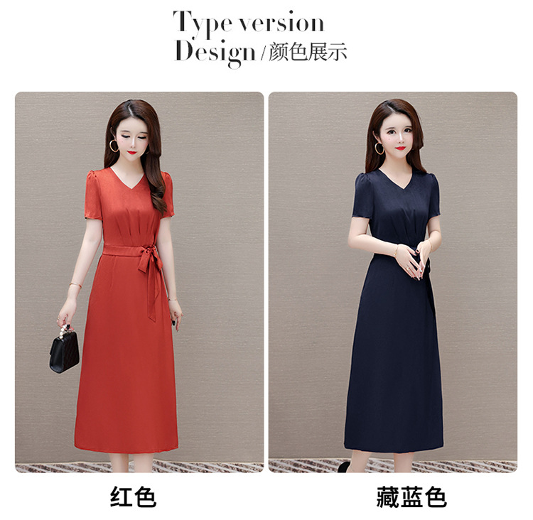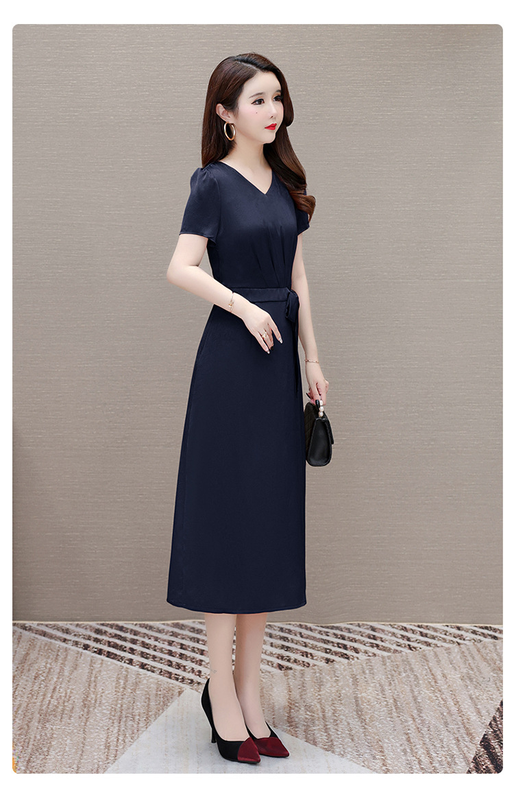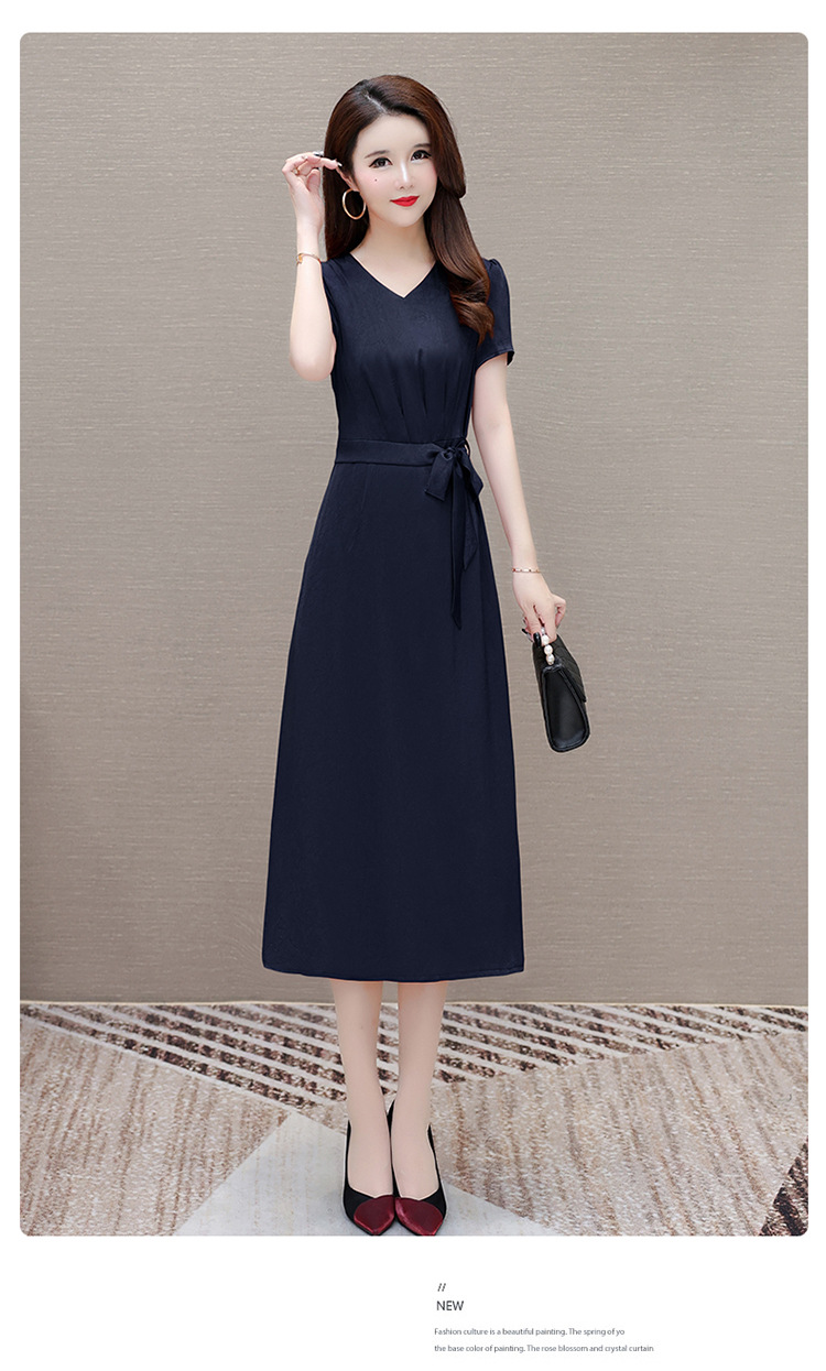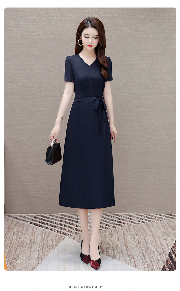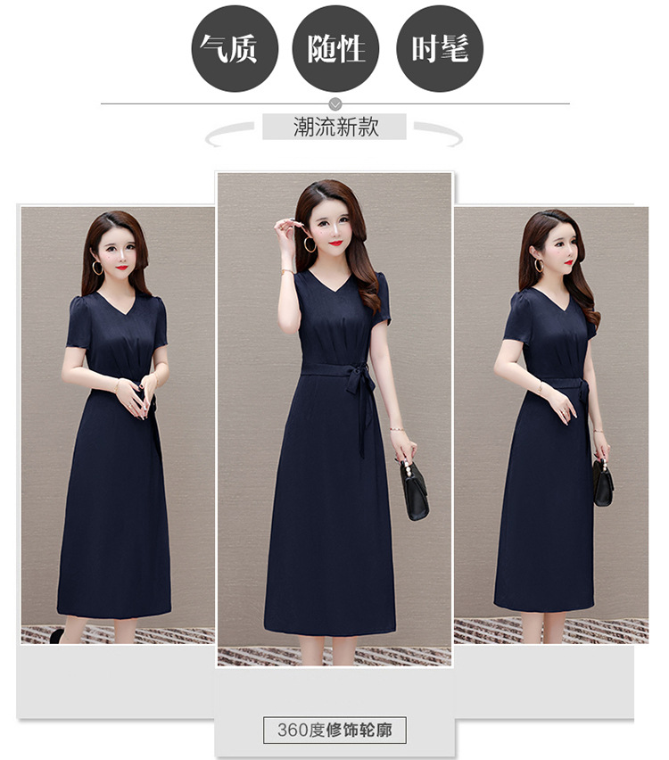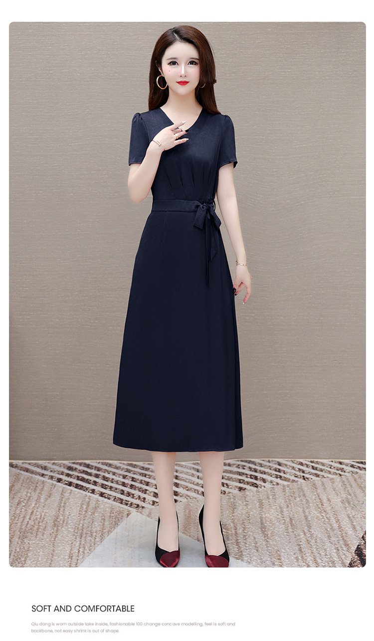 减龄时尚中长款A字裙,短袖V领气质通勤连衣裙QYM-XQD-54B2431-L