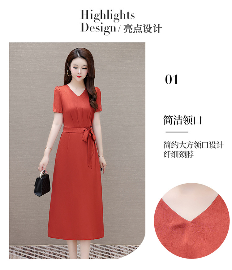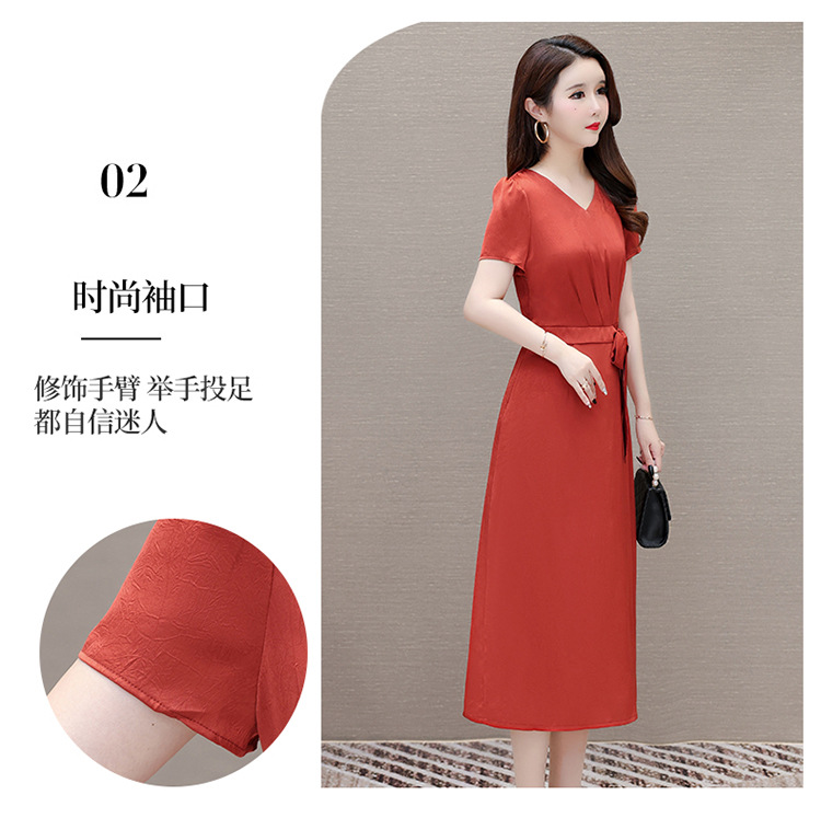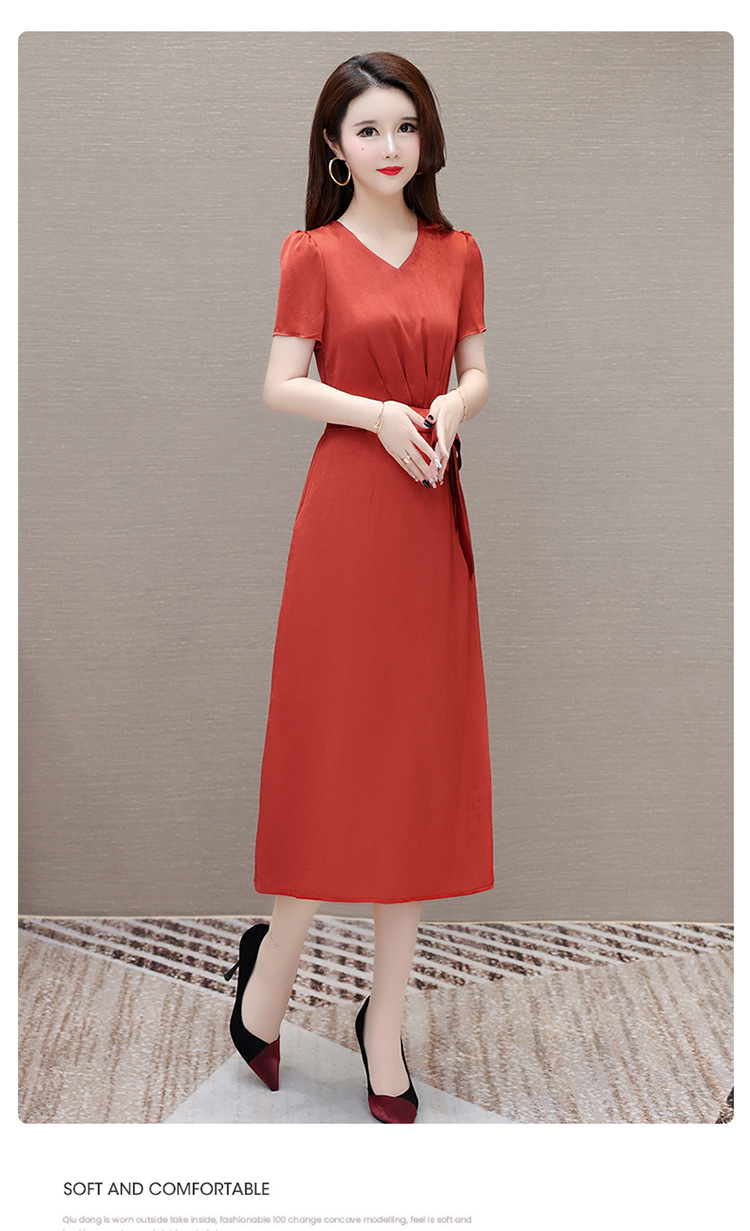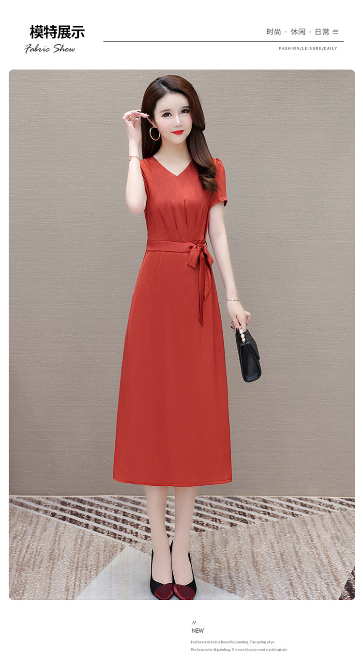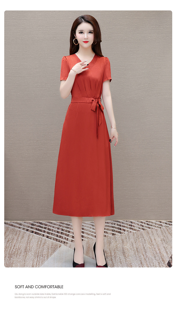 减龄时尚中长款A字裙,短袖V领气质通勤连衣裙QYM-XQD-54B2431-L