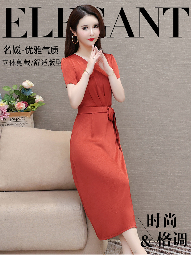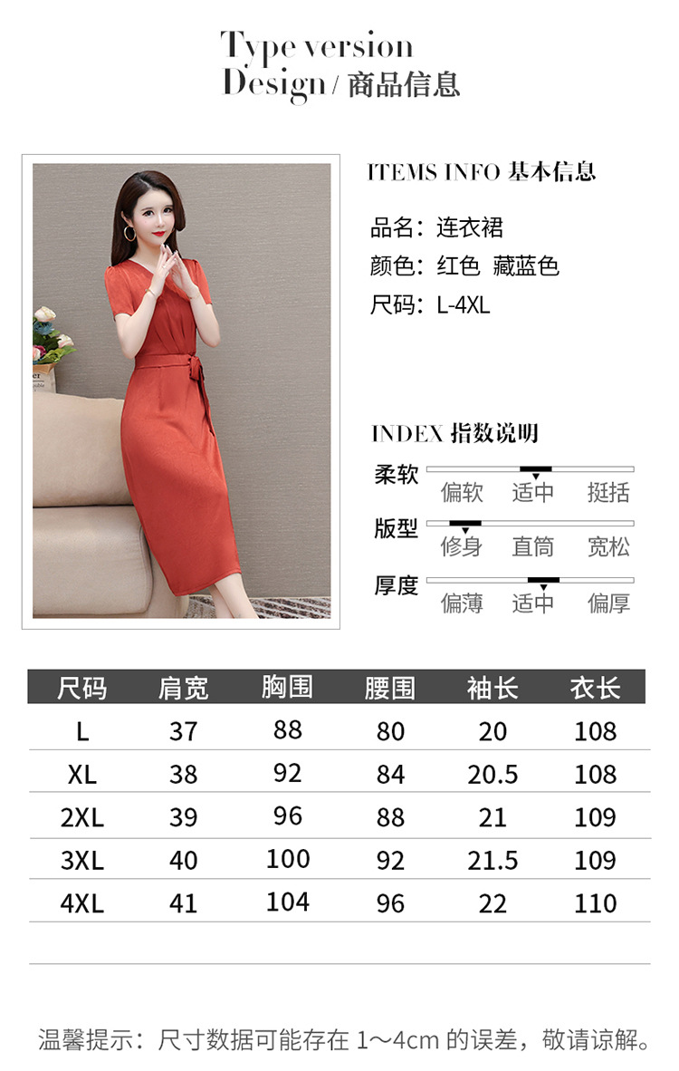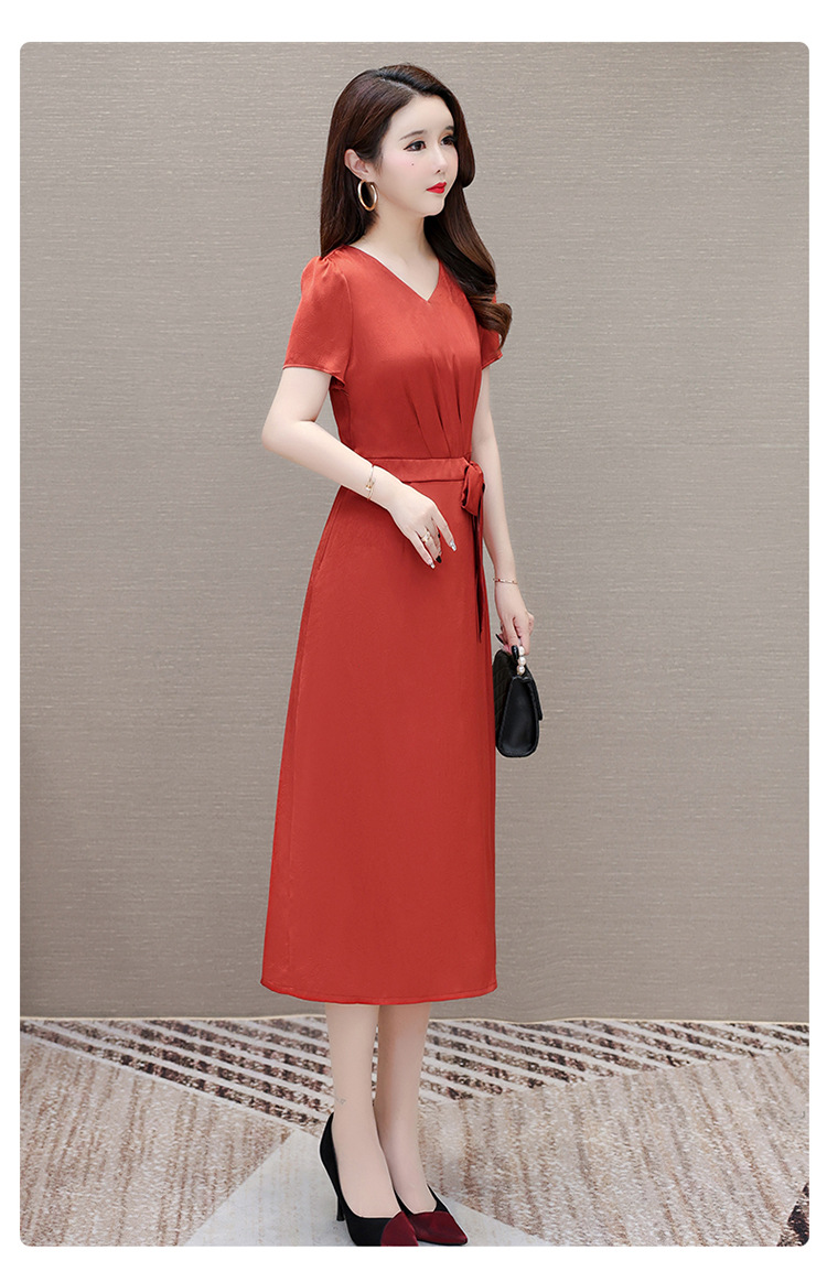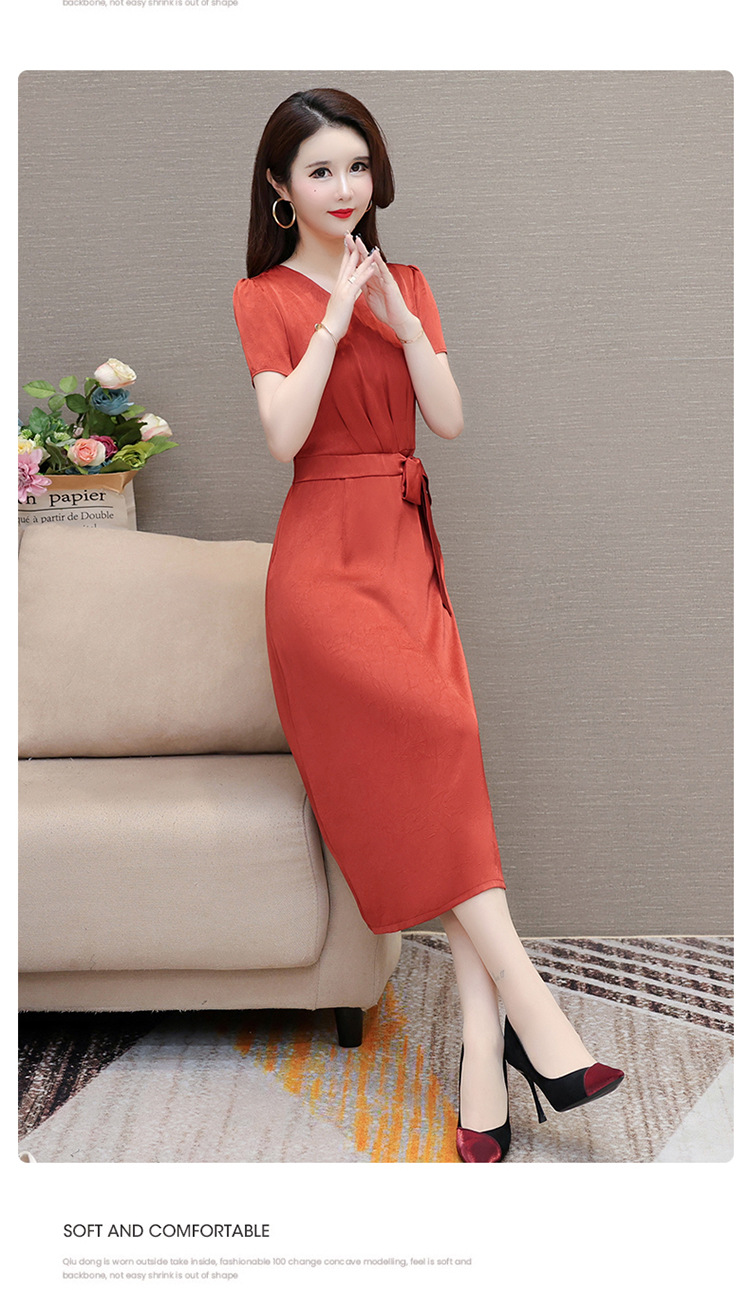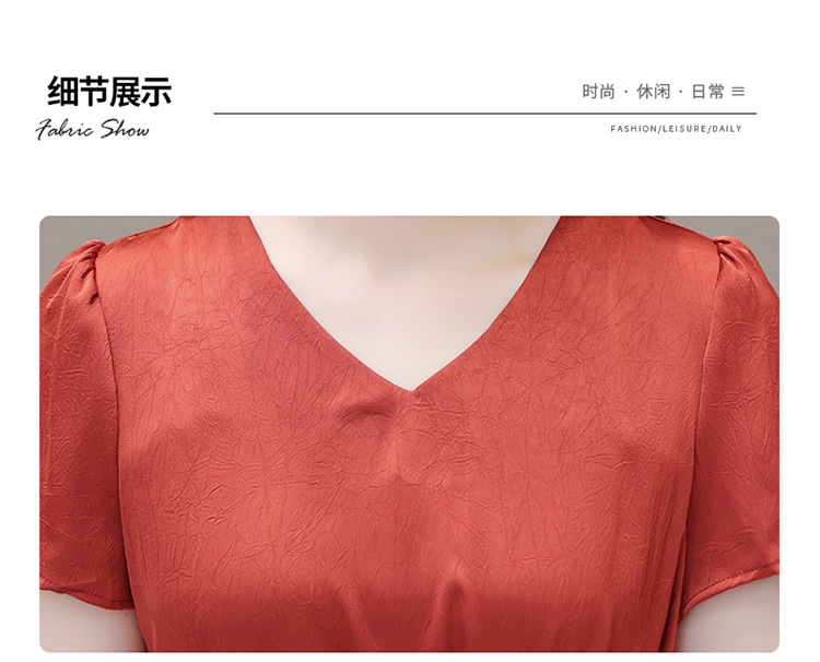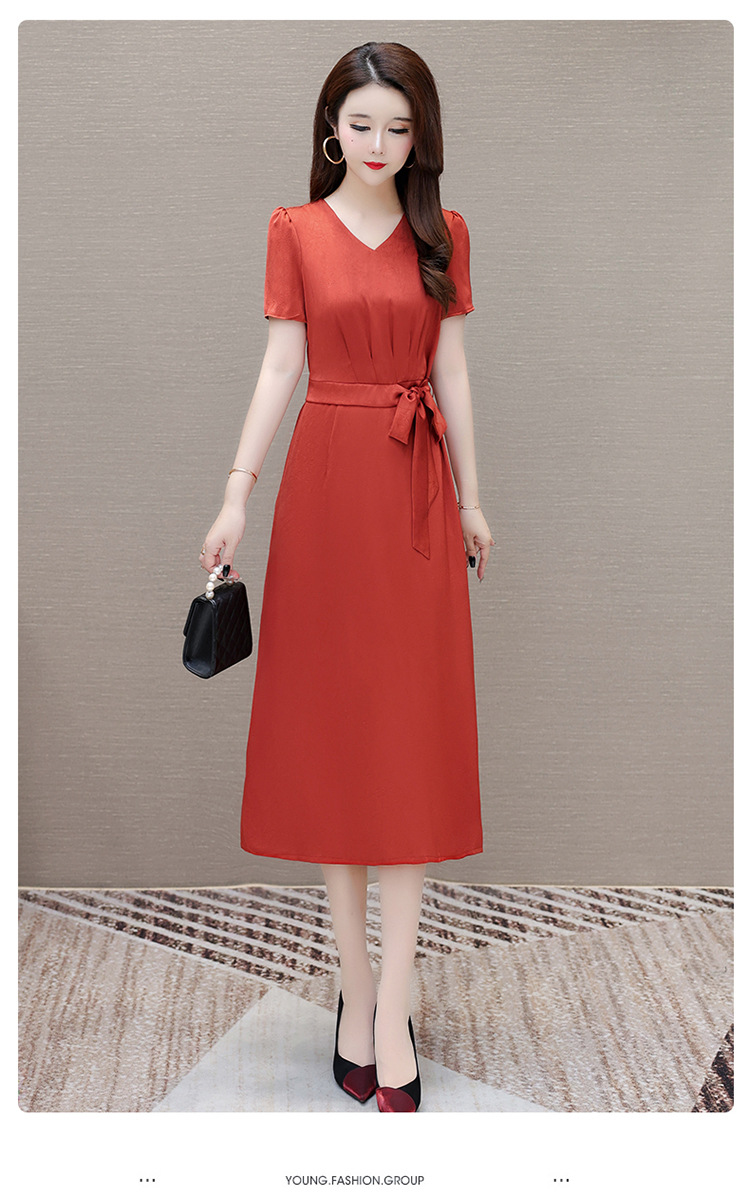 减龄时尚中长款A字裙,短袖V领气质通勤连衣裙QYM-XQD-54B2431-L