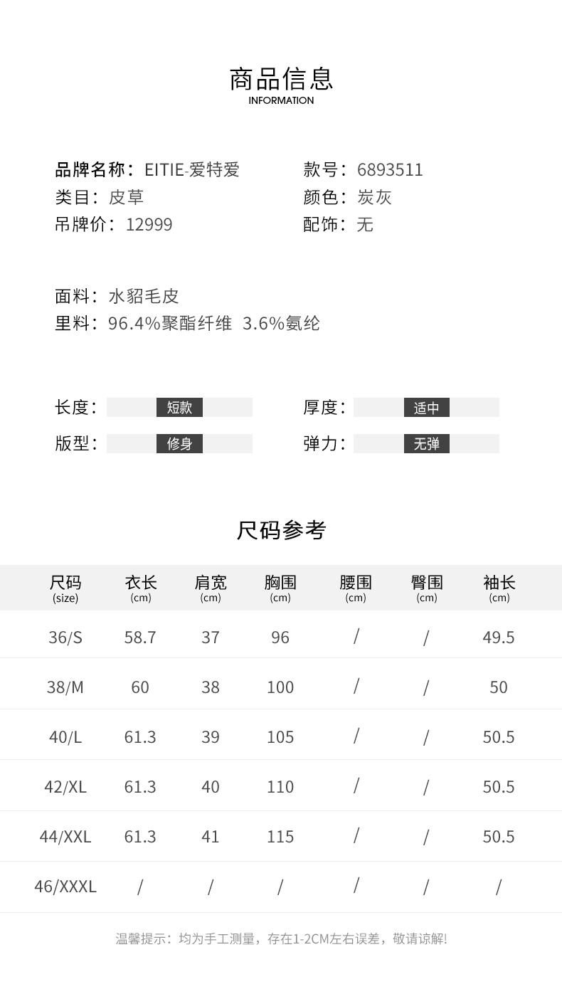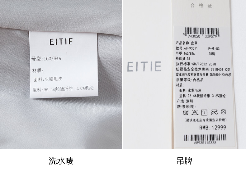 EITIE爱特爱冬季新款水貂羊毛皮一体保暖皮草大衣女6893511