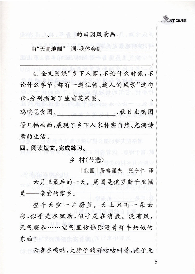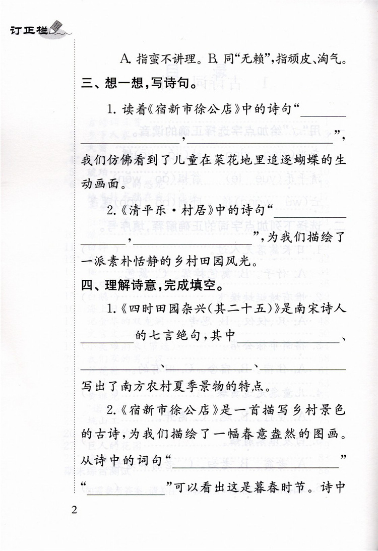 2025年春 小学语文补充习题 四年级下册 4下 小学教辅