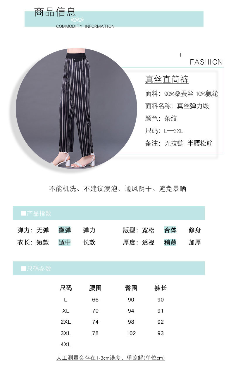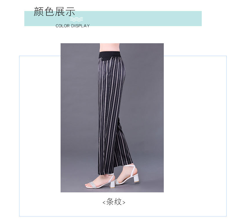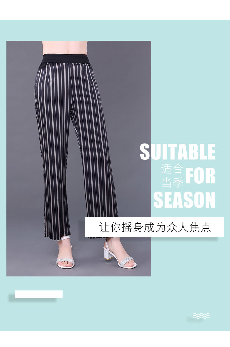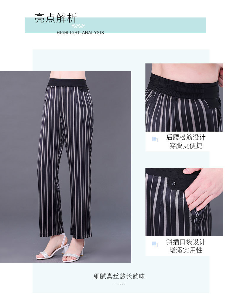 桑蚕丝竖条纹阔腿裤,新款薄款高腰直筒真丝垂感宽松裤子KQN-75623