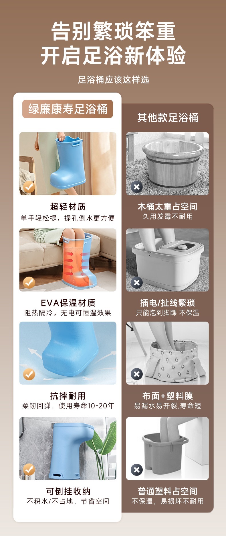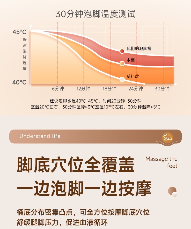 升级款可提拉泡脚按摩桶 恒温免加热 高深泡小腿(送泡脚包30份)
